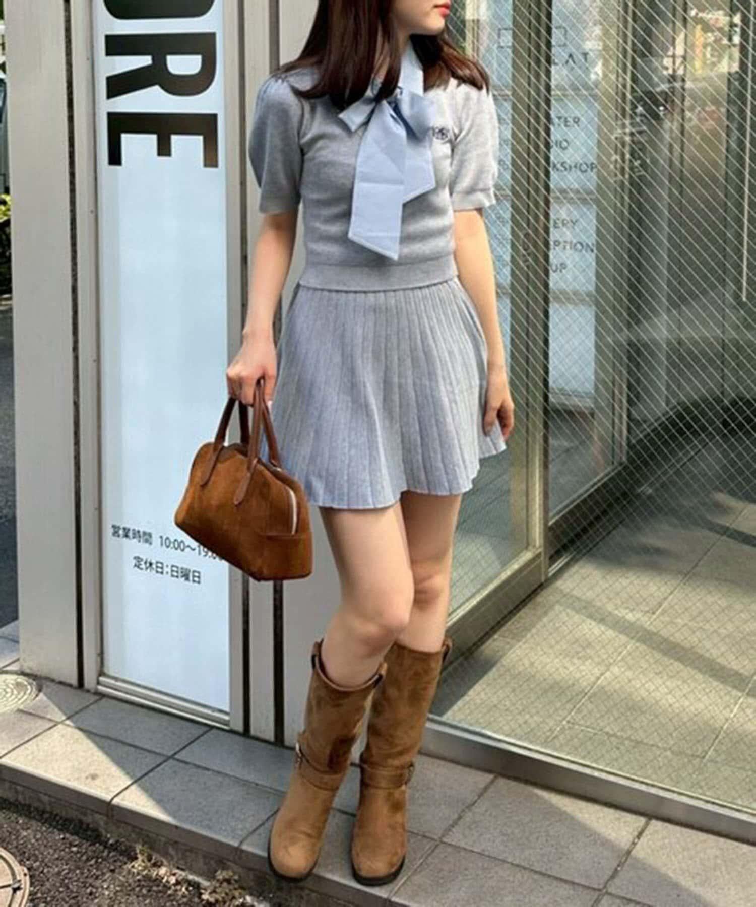 搭配及膝襪和高跟鞋,盡顯少女氣息。