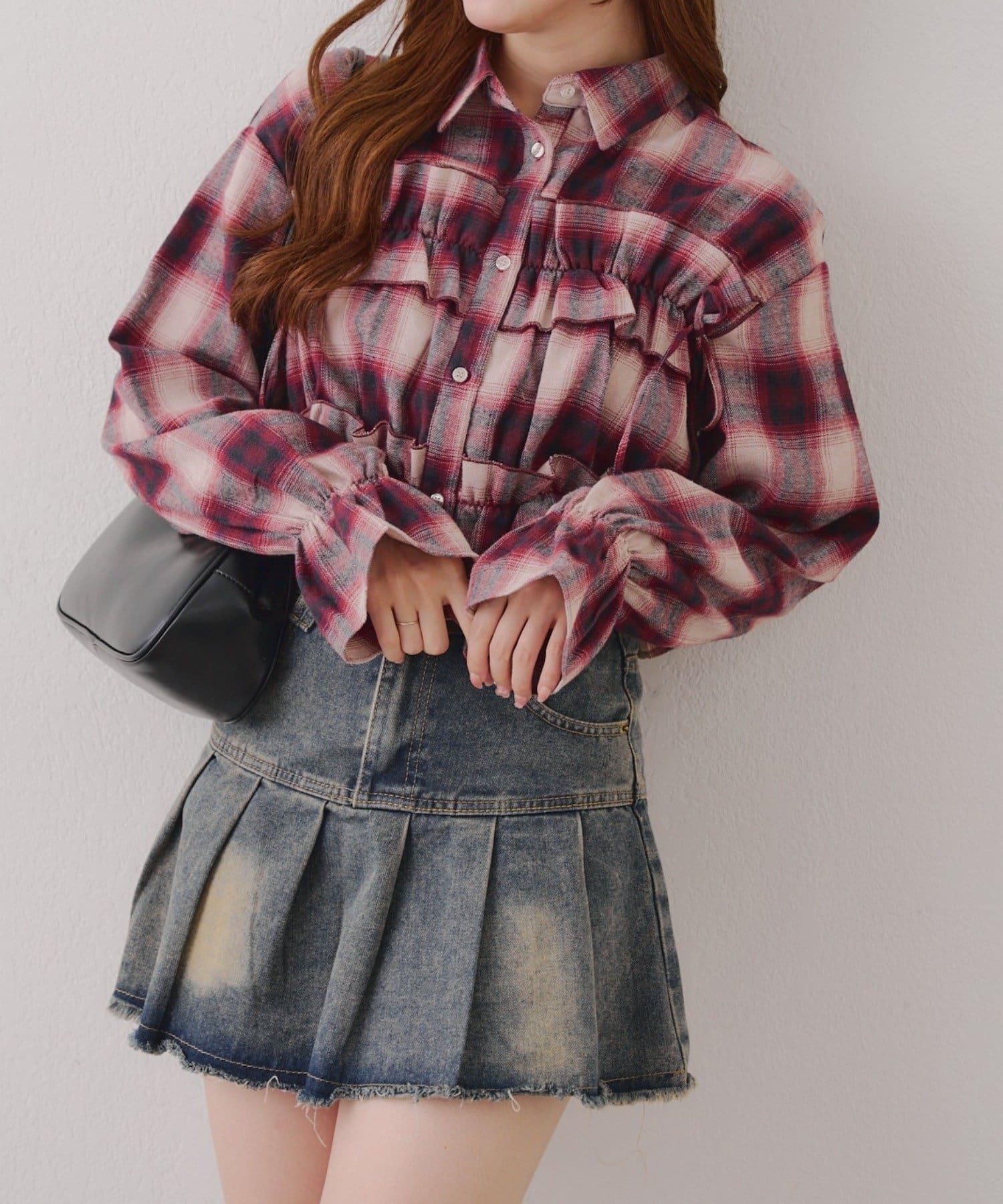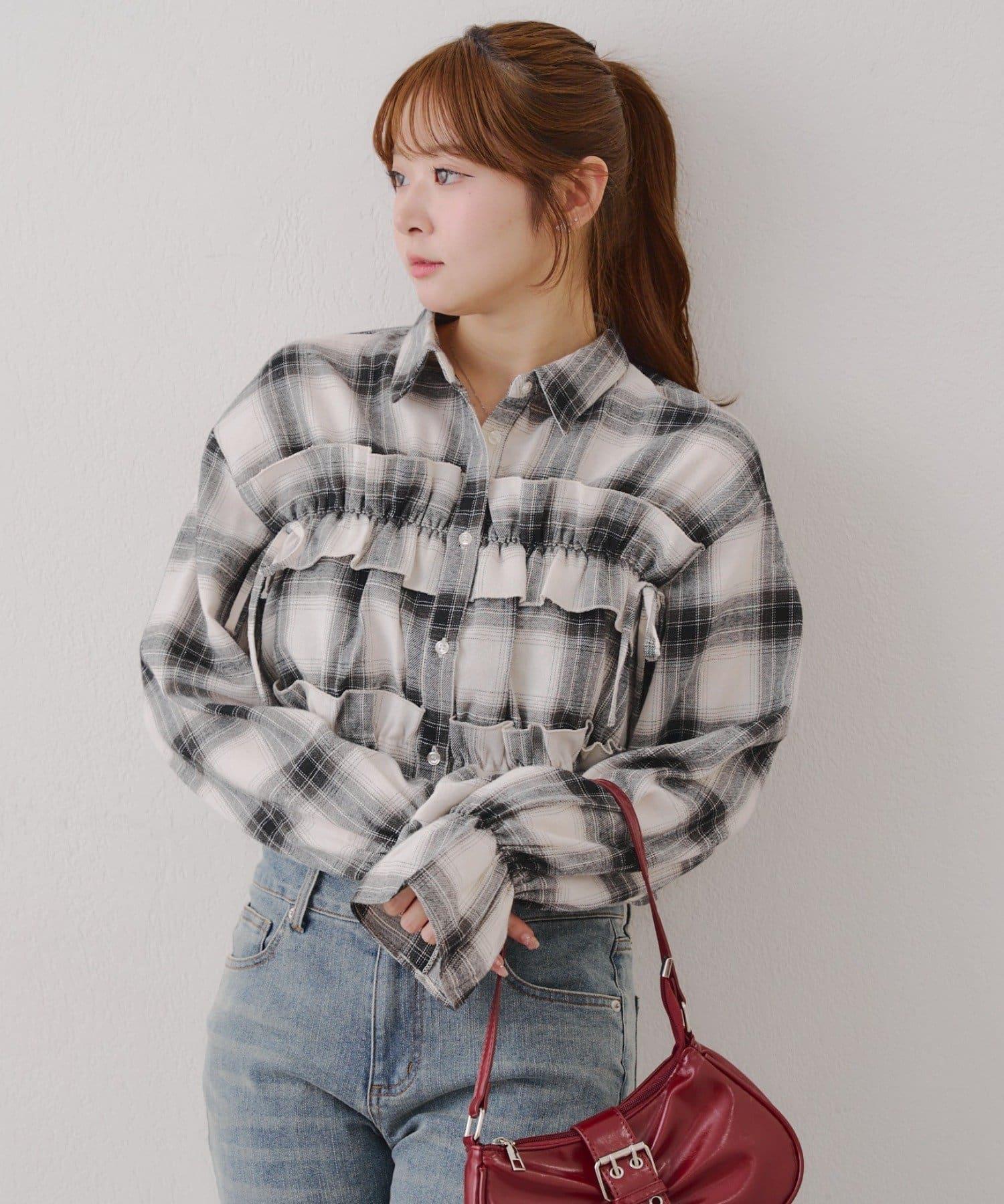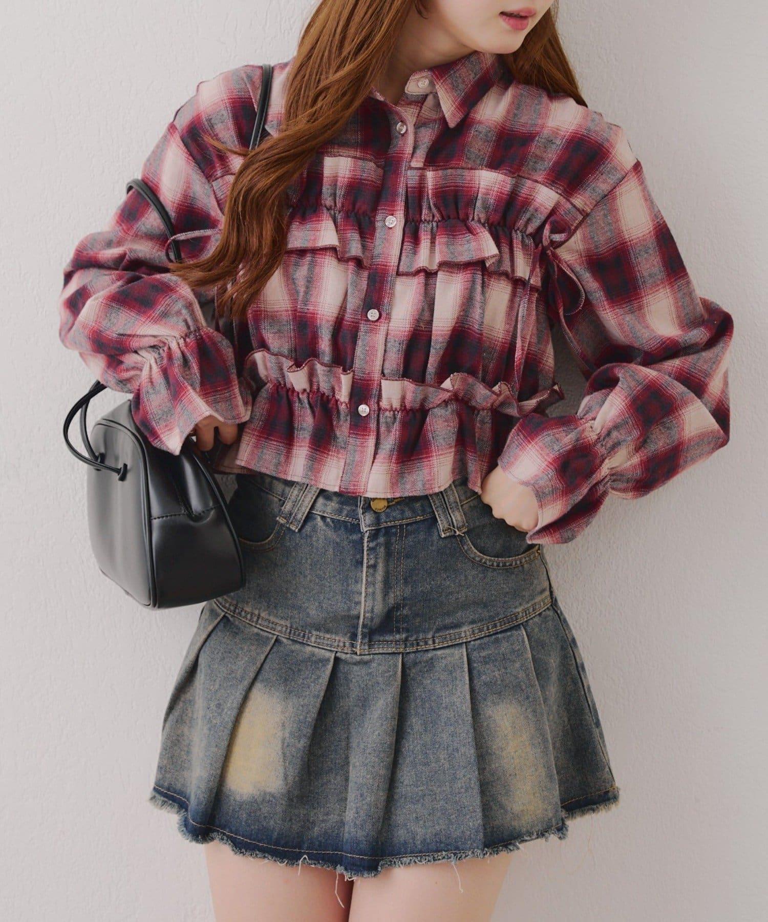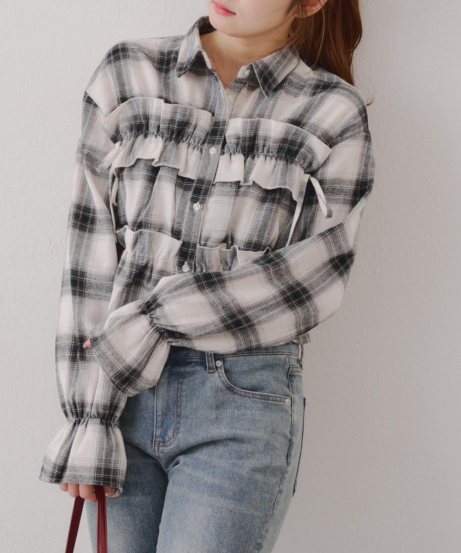 RMAF Remindmeandforever olivedesolive niceclaup 秋季 秋裝 秋冬裝 冬裝 冬裝 韓版時尚 韓版風格 韓版時尚 10年代 20年代 30年代 成人流行 成人可愛 成人休閒 潮流新寵 價格上衣 襯衫 格紋襯衫 格紋圖案格紋襯衫 蝴蝶結褶皺襯衫 梭織韓版少女裝 6052040030