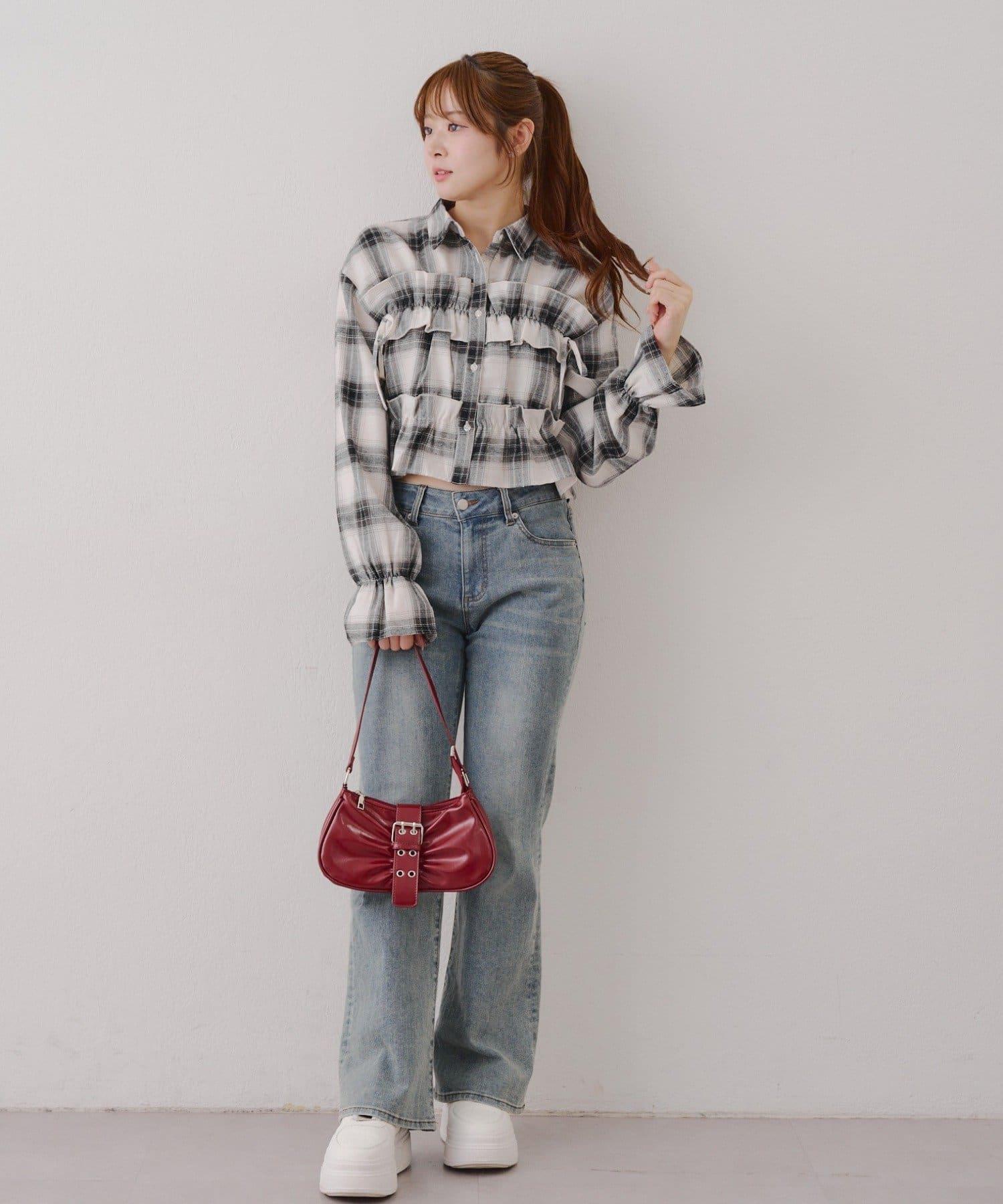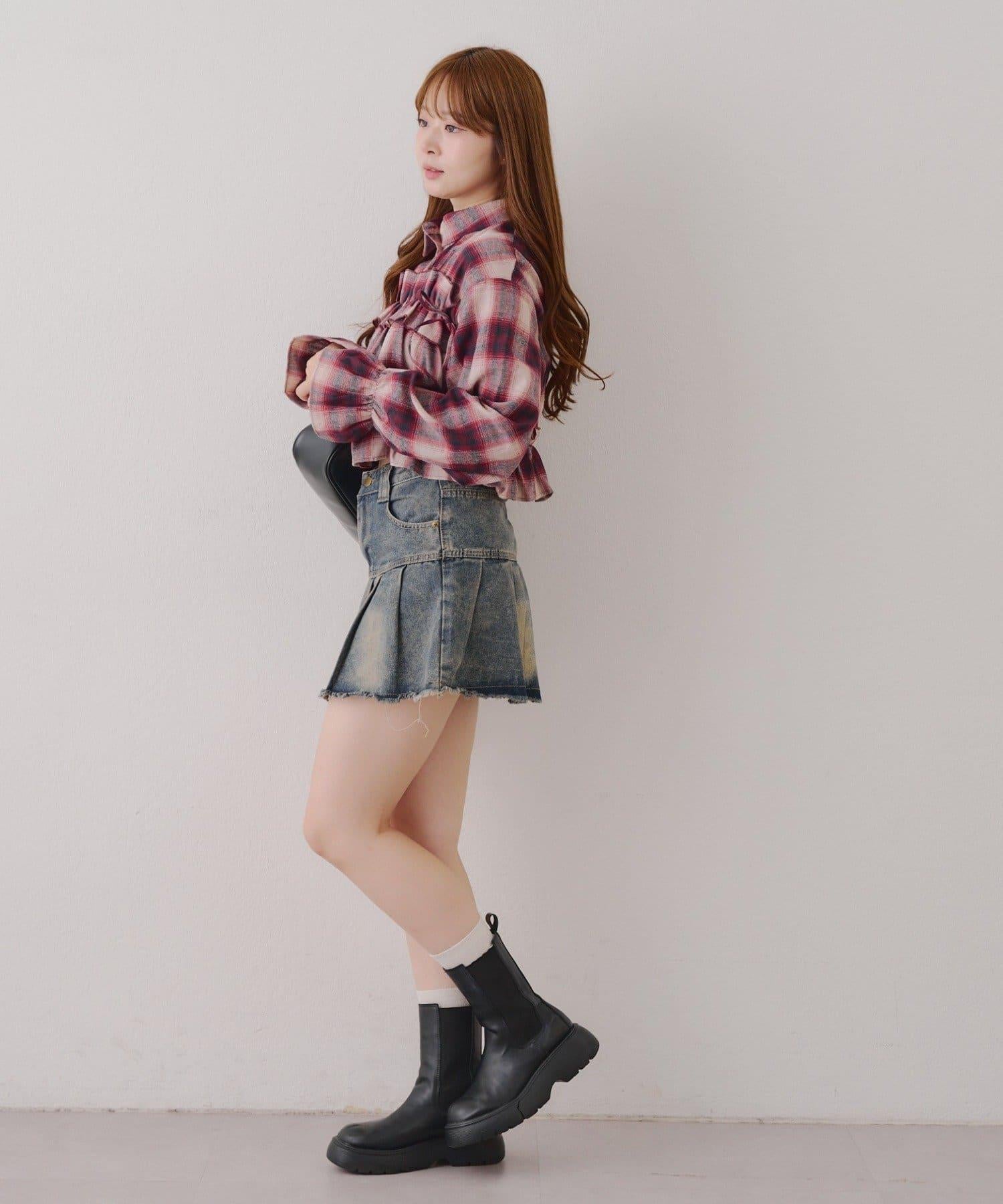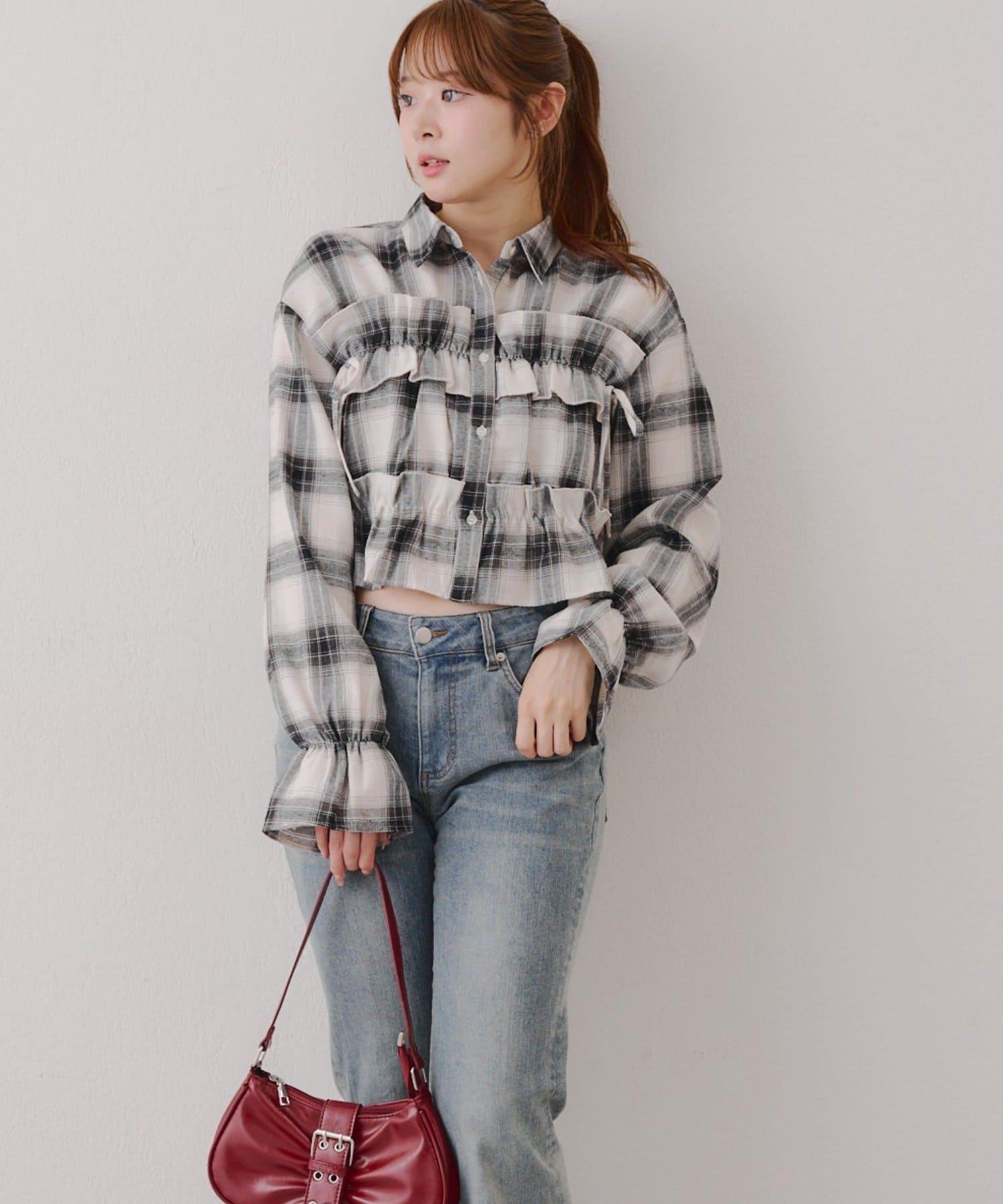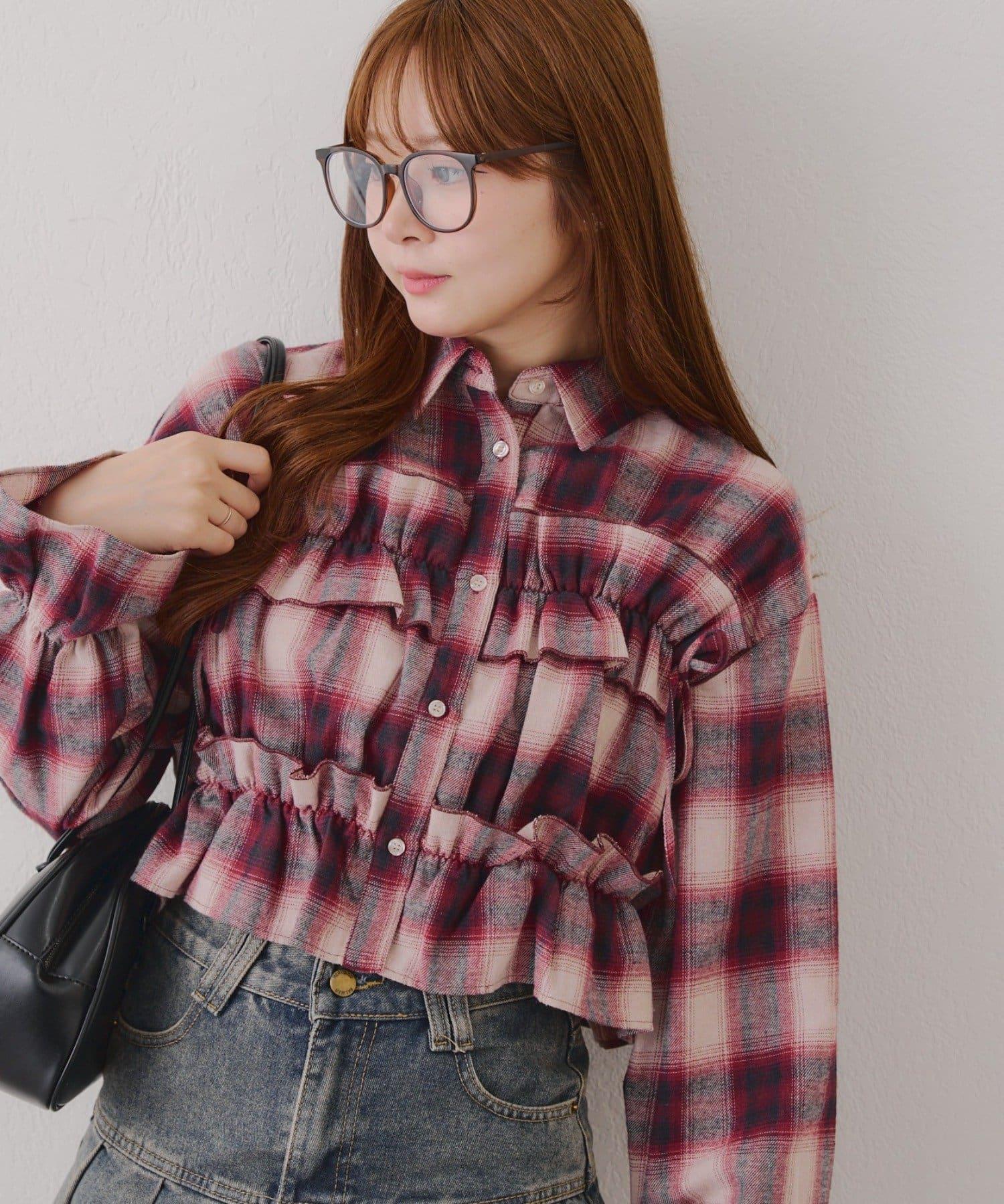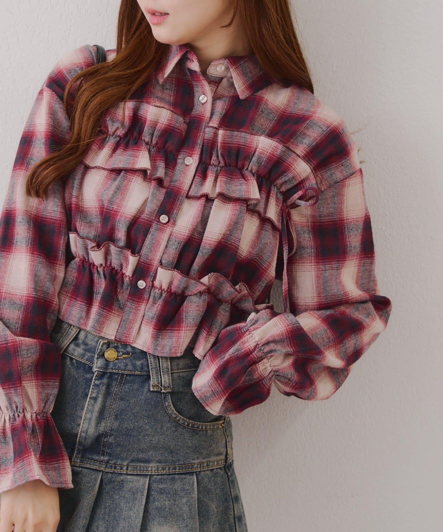 RMAF Remindmeandforever olivedesolive niceclaup 秋季 秋裝 秋冬裝 冬裝 冬裝 韓版時尚 韓版風格 韓版時尚 10年代 20年代 30年代 成人流行 成人可愛 成人休閒 潮流新寵 價格上衣 襯衫 格紋襯衫 格紋圖案格紋襯衫 蝴蝶結褶皺襯衫 梭織韓版少女裝 6052040030
