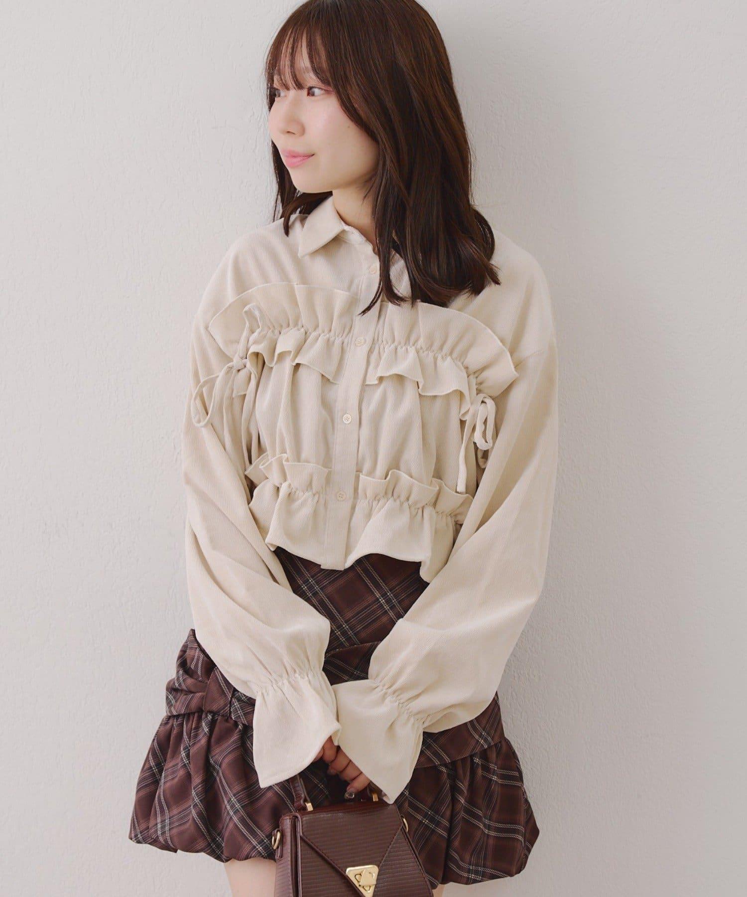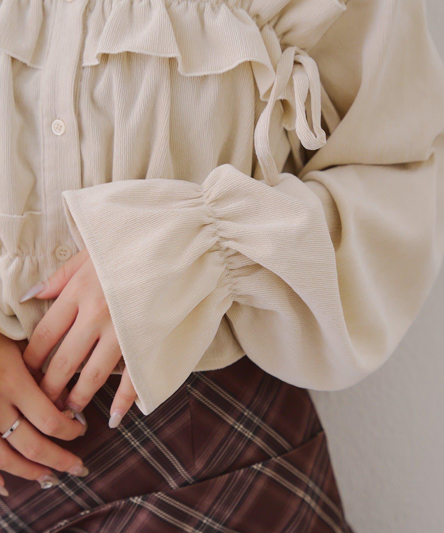 可愛的襯衫,飾有荷葉邊和絲帶。