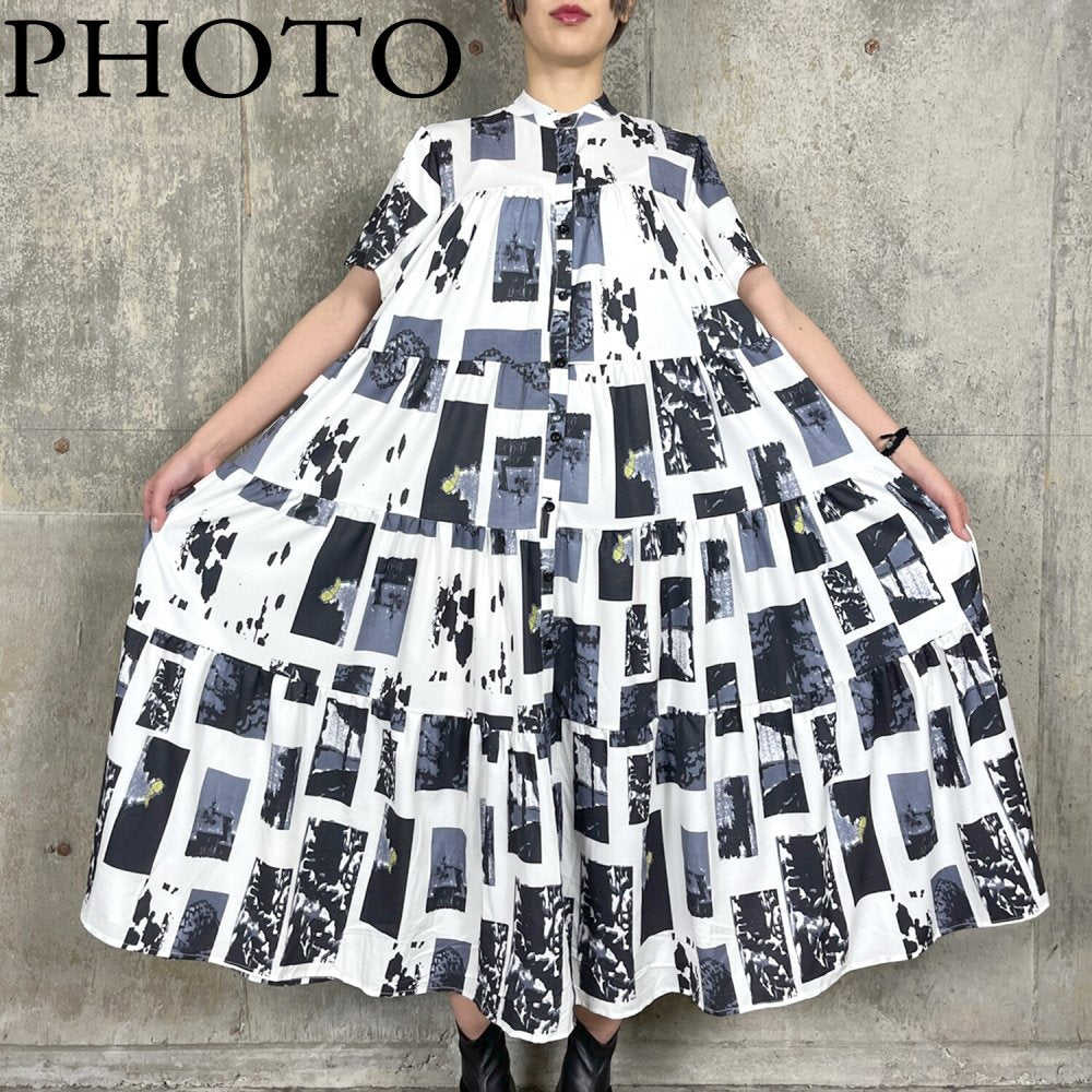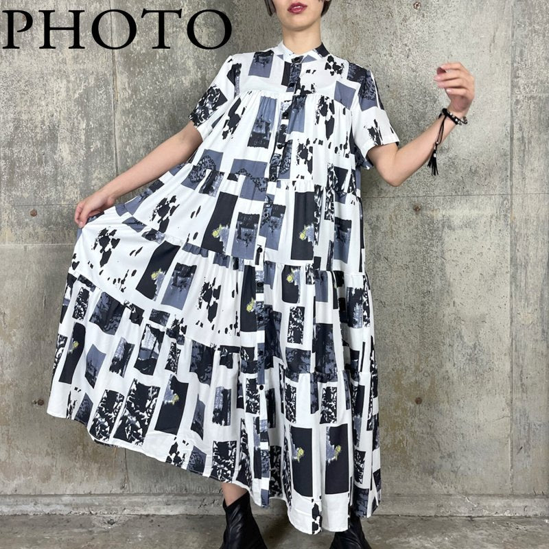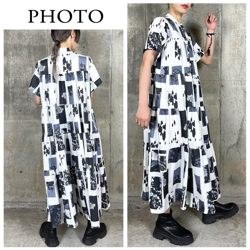 RooM404 印花層疊領口寬鬆蓬鬆長款襯衫連衣裙 白色 (CD4325WH)