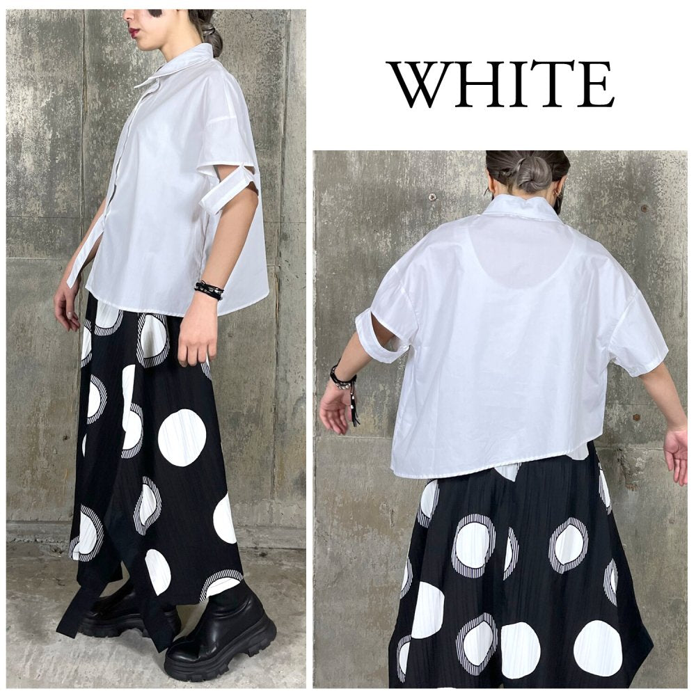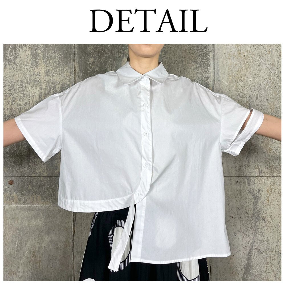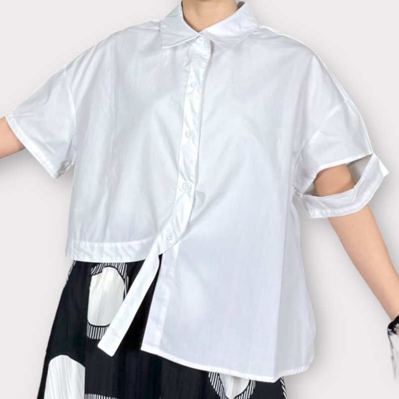 RooM404 袖口剪裁 前短後長 不對稱 長袖襯衫 白色 (CT6898WH)