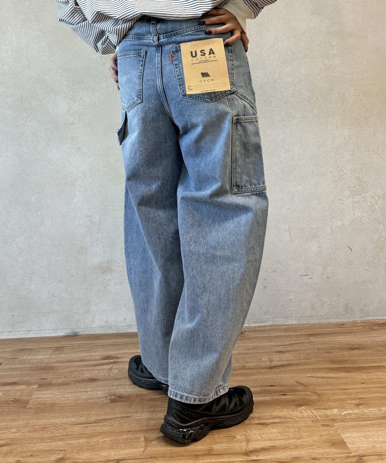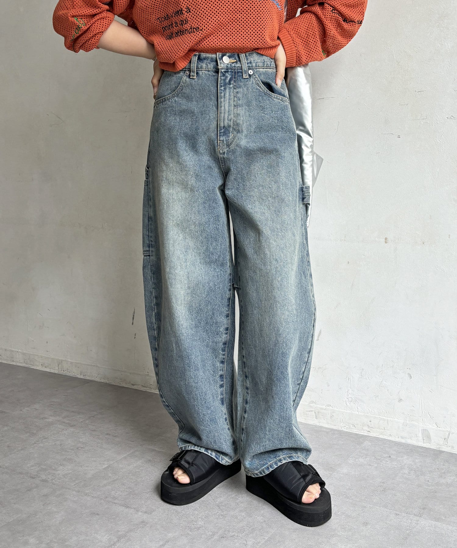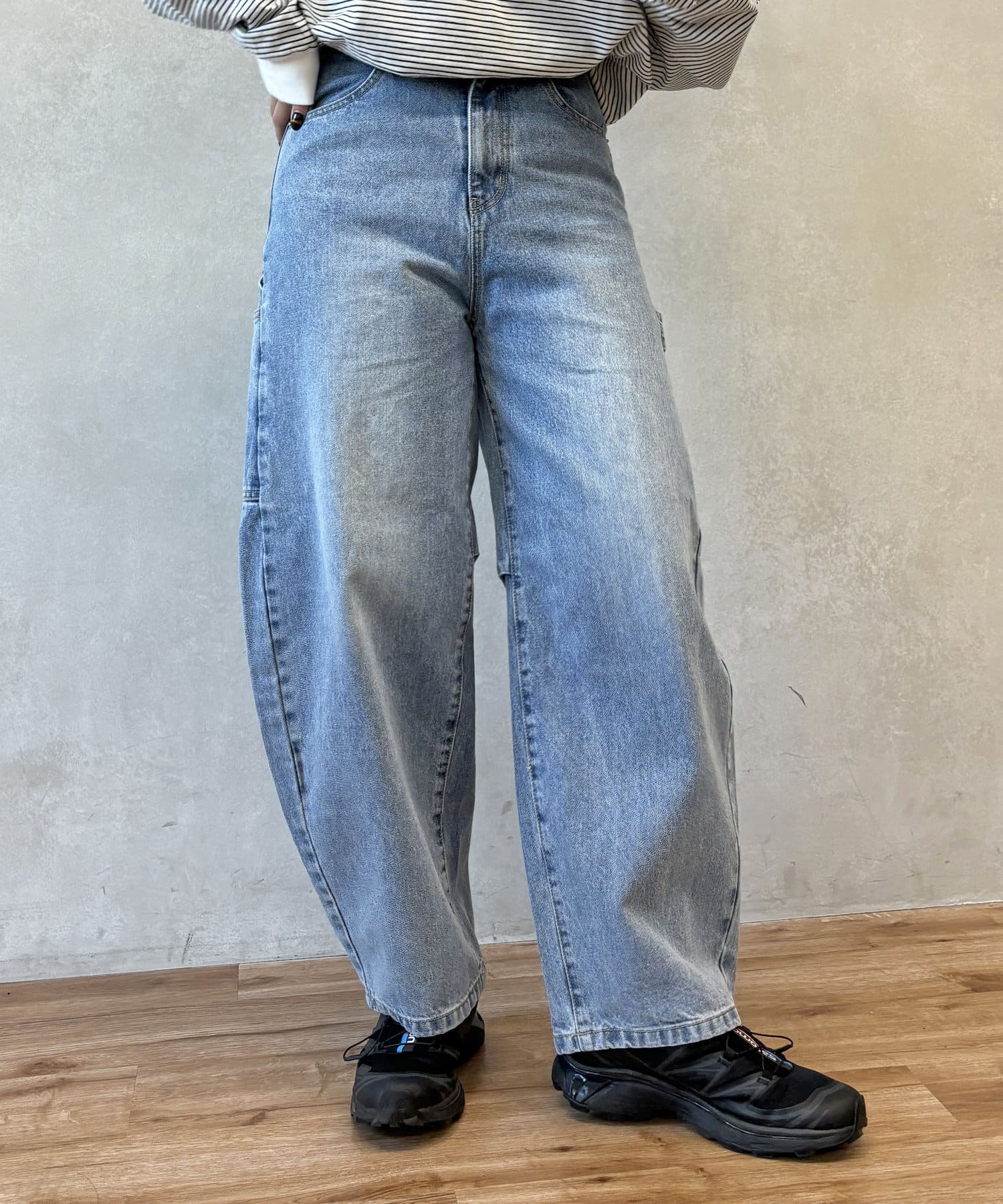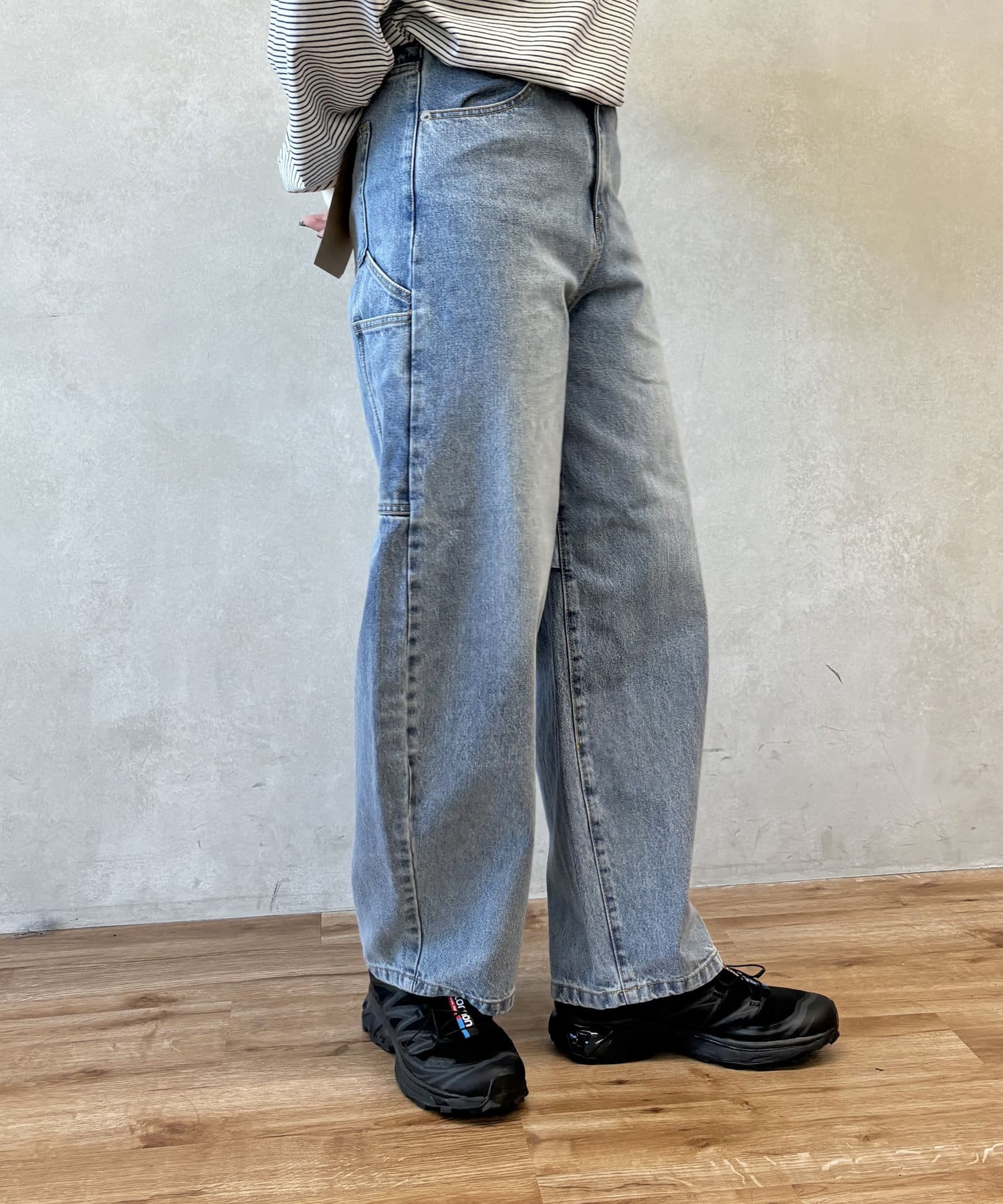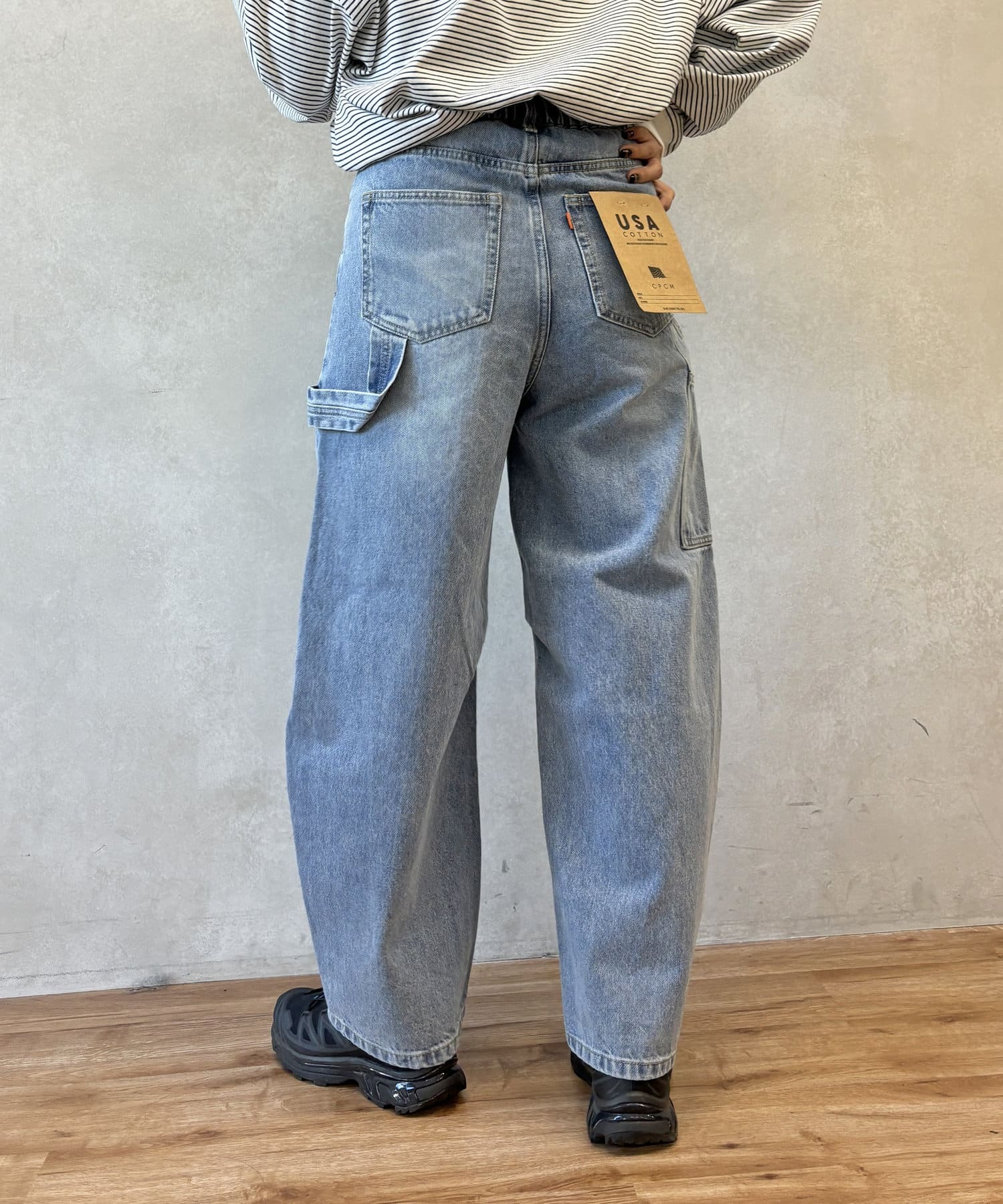【S尺碼有】美國棉弧形油漆工牛仔褲