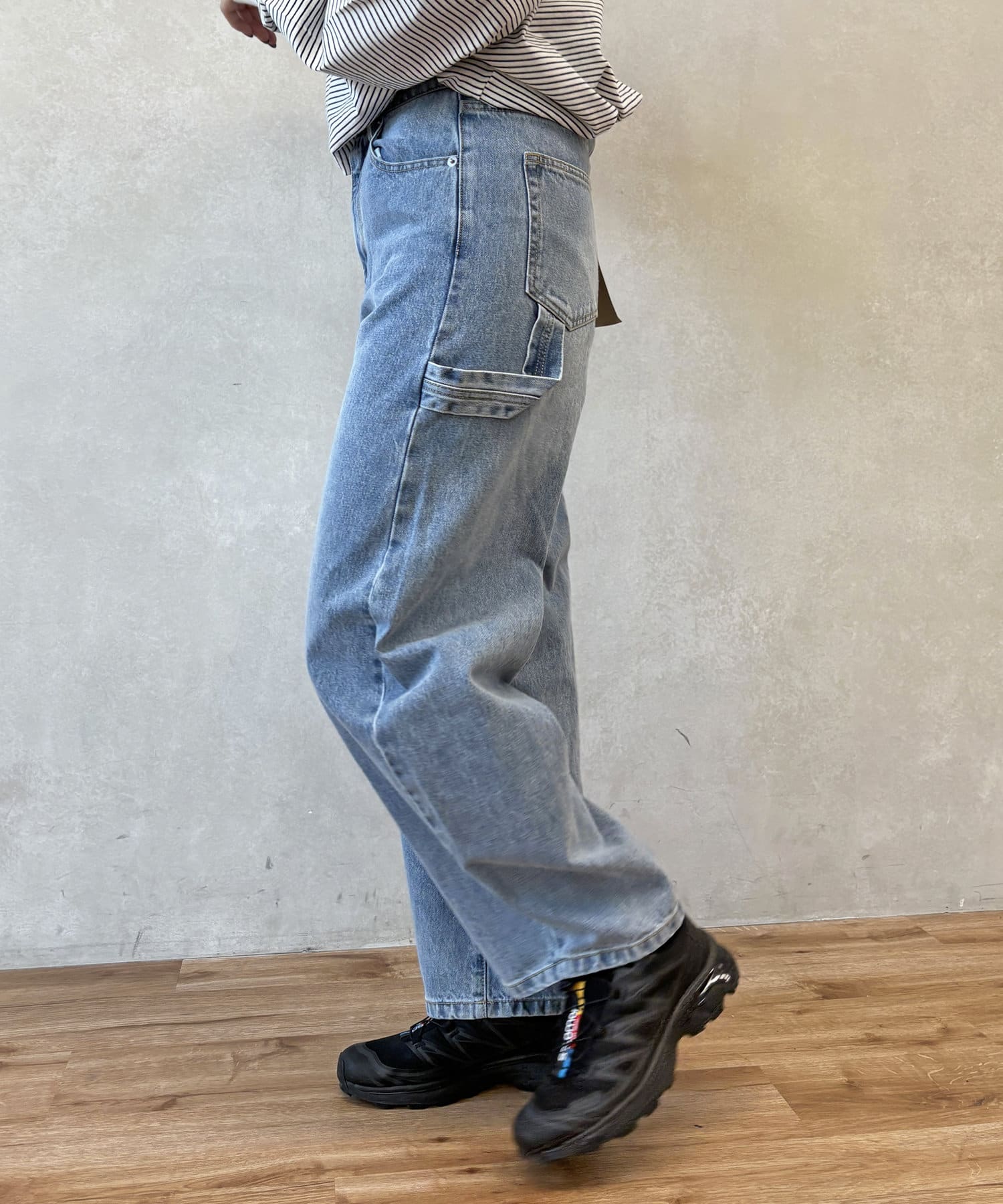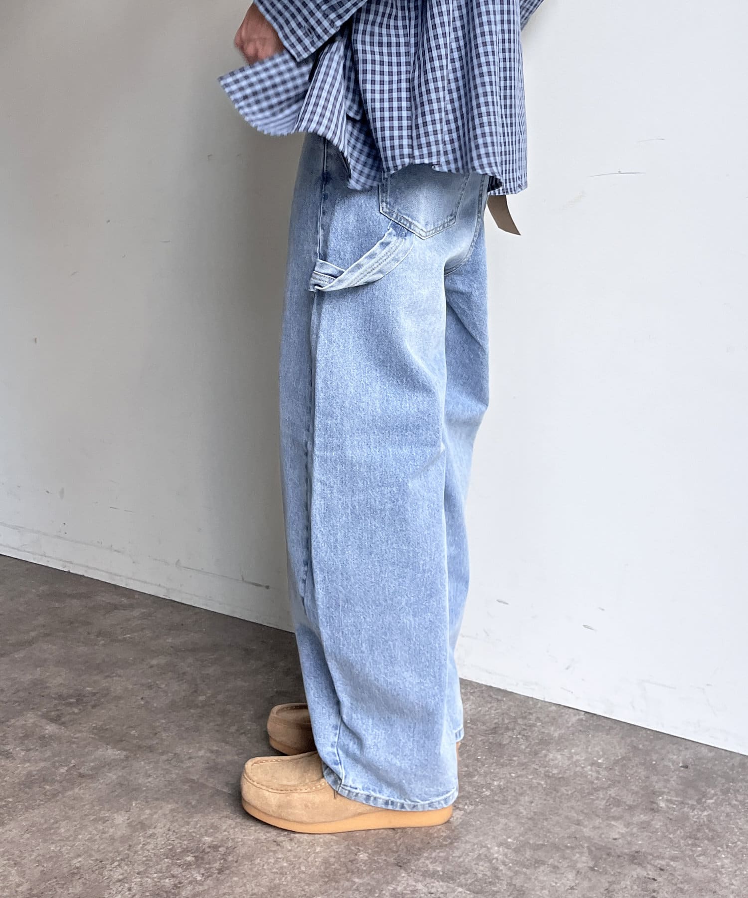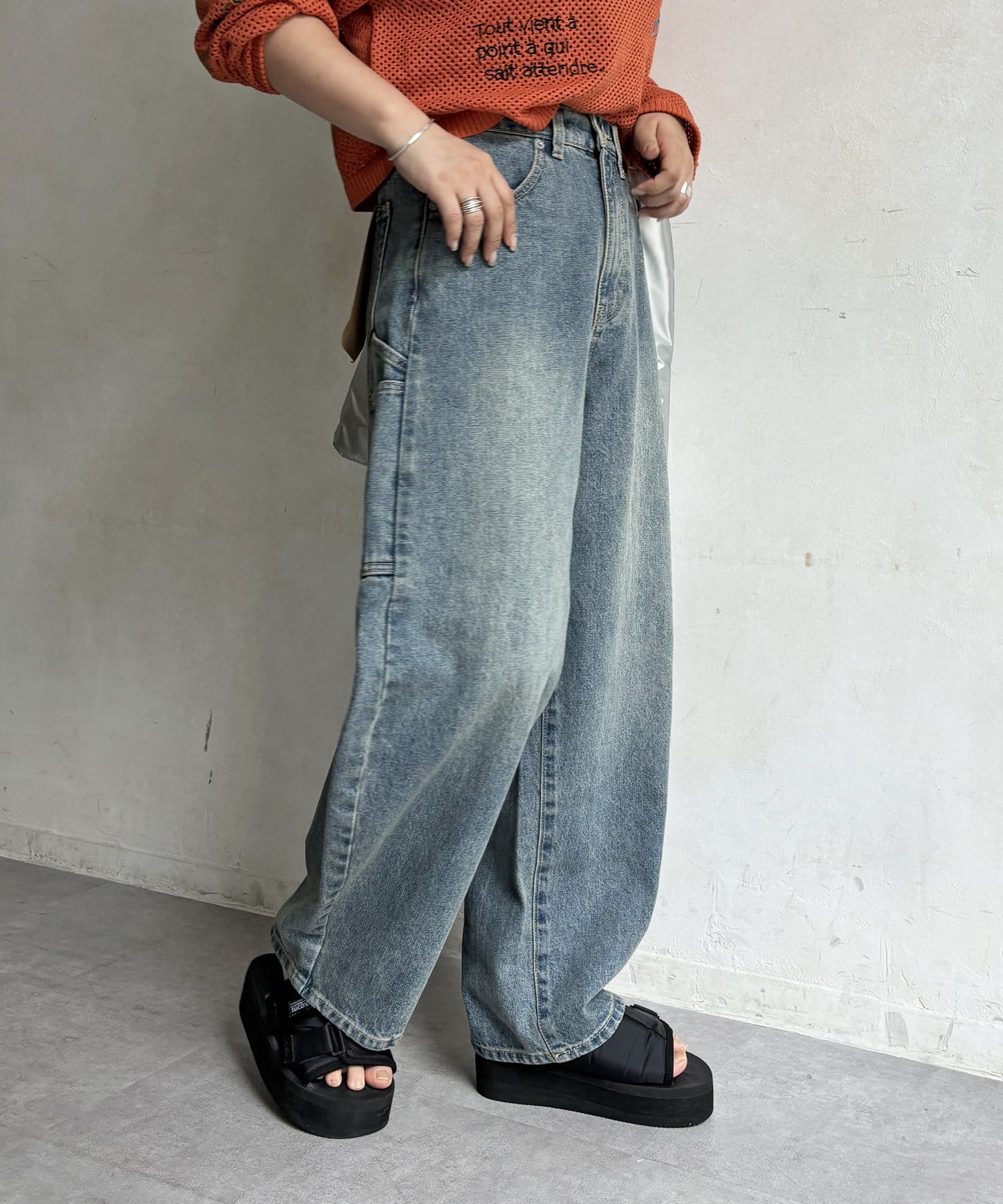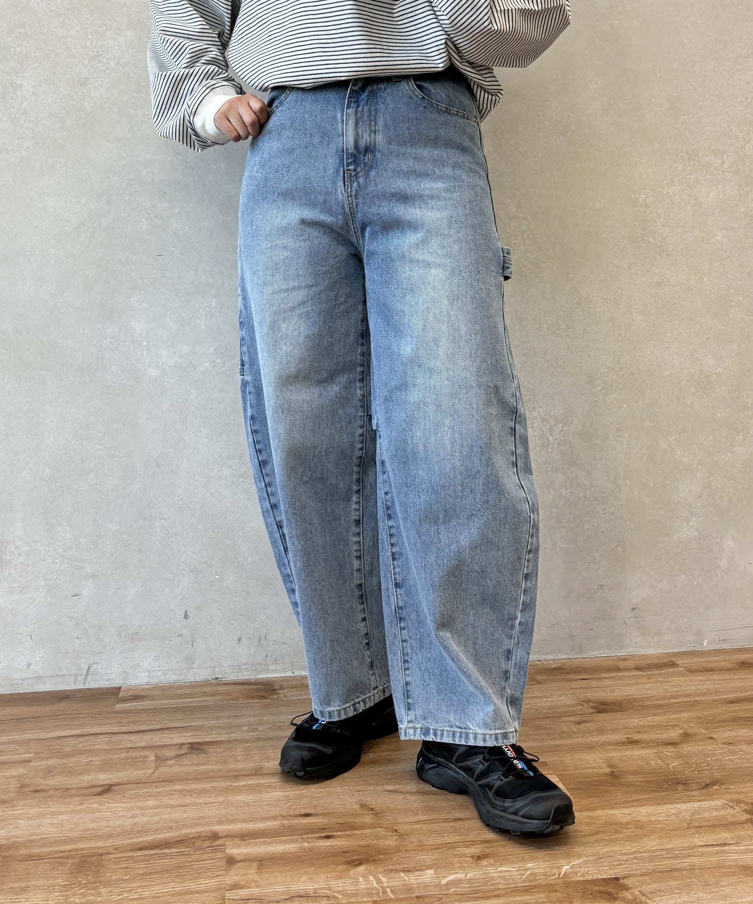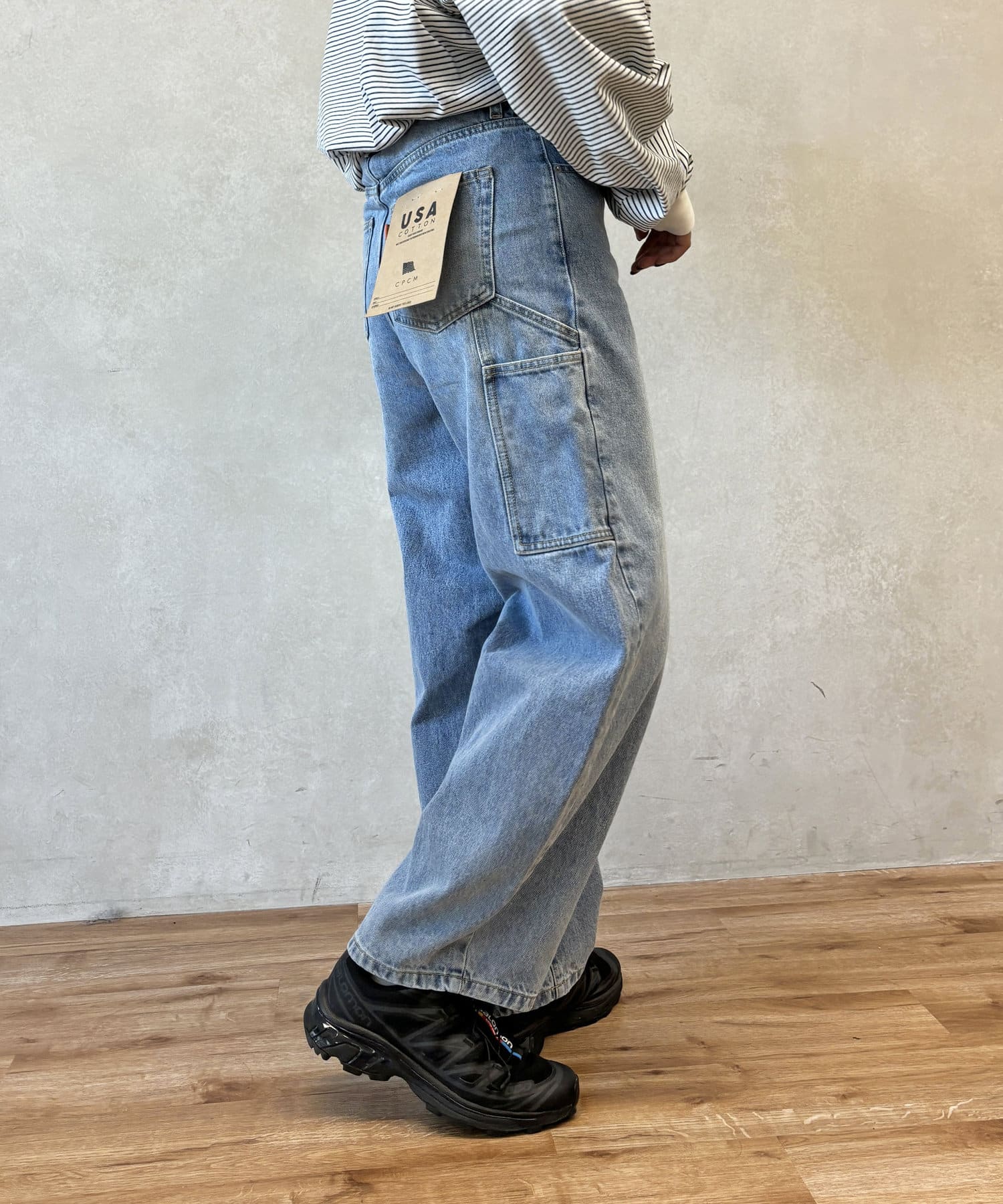 【S尺碼有】美國棉弧形油漆工牛仔褲
