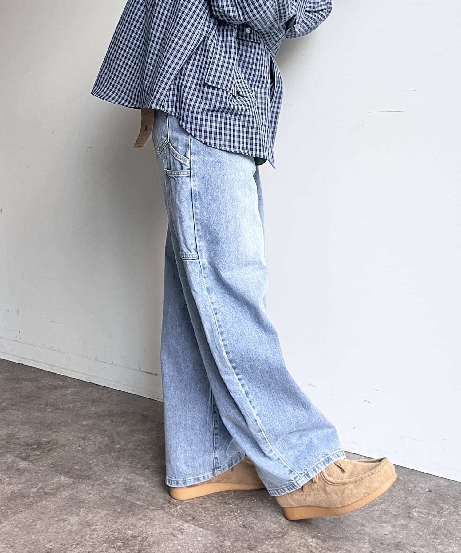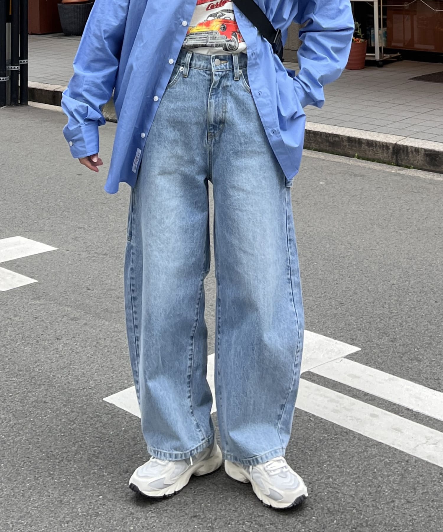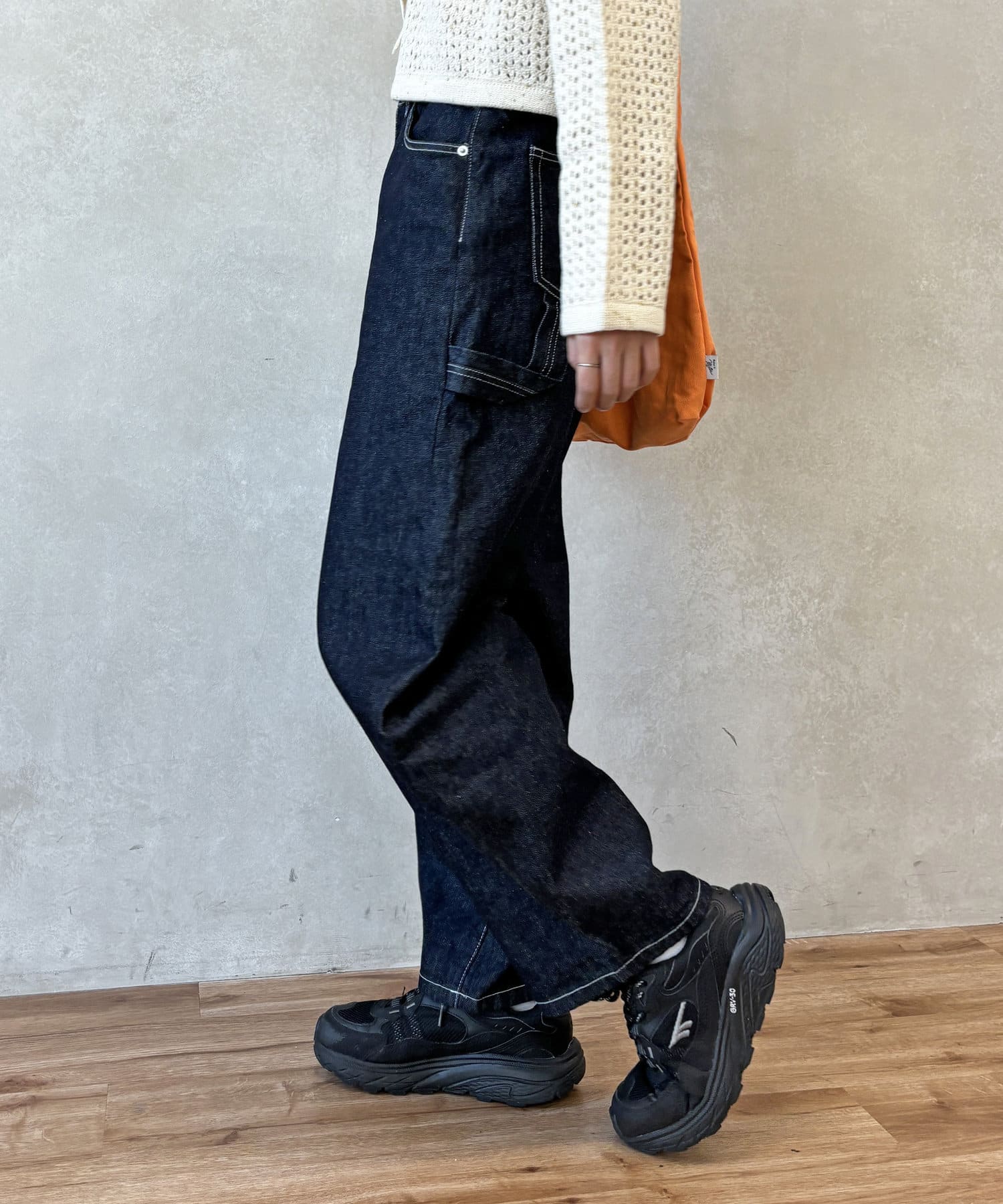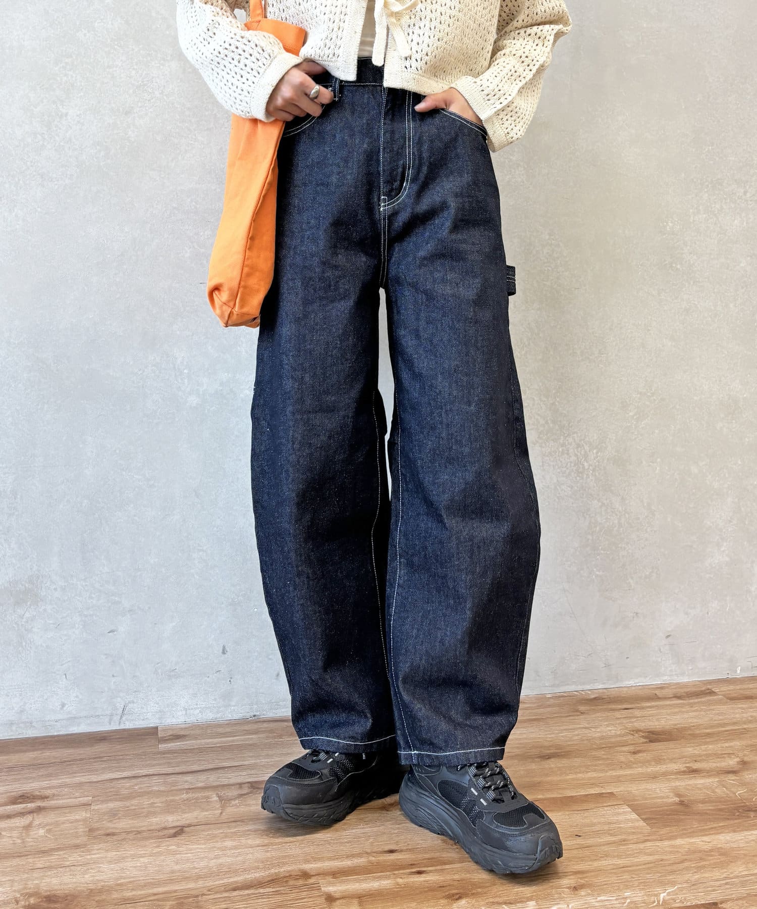 時尚的牛仔布料,寬鬆的剪裁,充滿工作氣息。