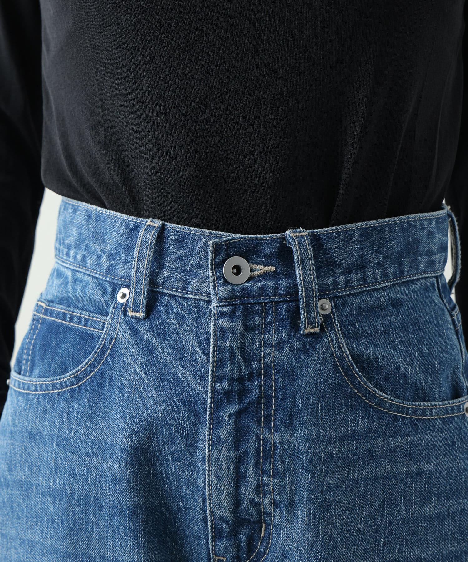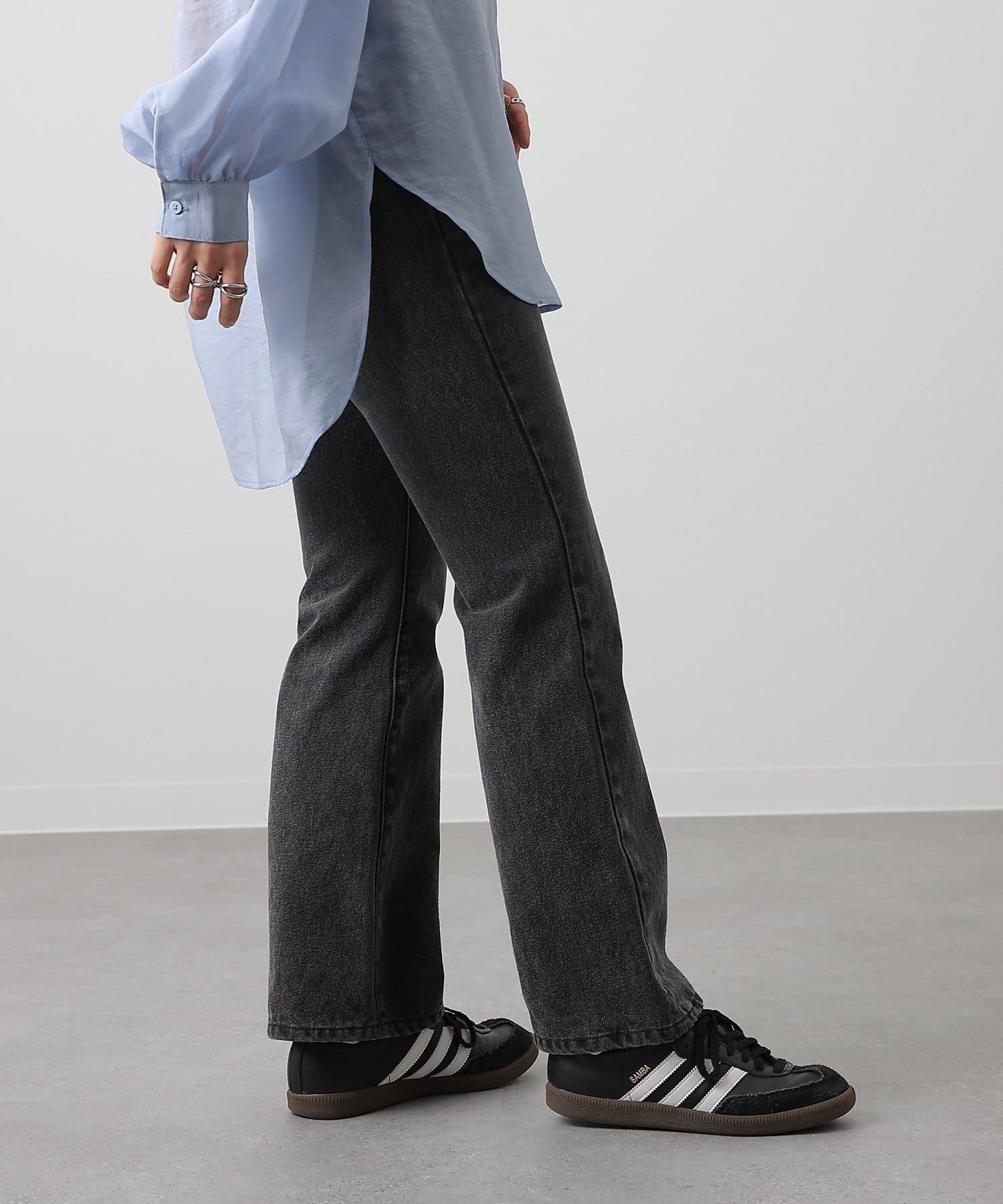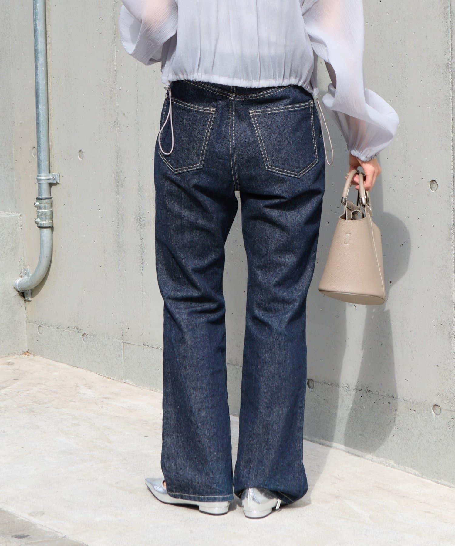 這款牛仔長褲採用喇叭廓形設計,穿著方便,非常實用。