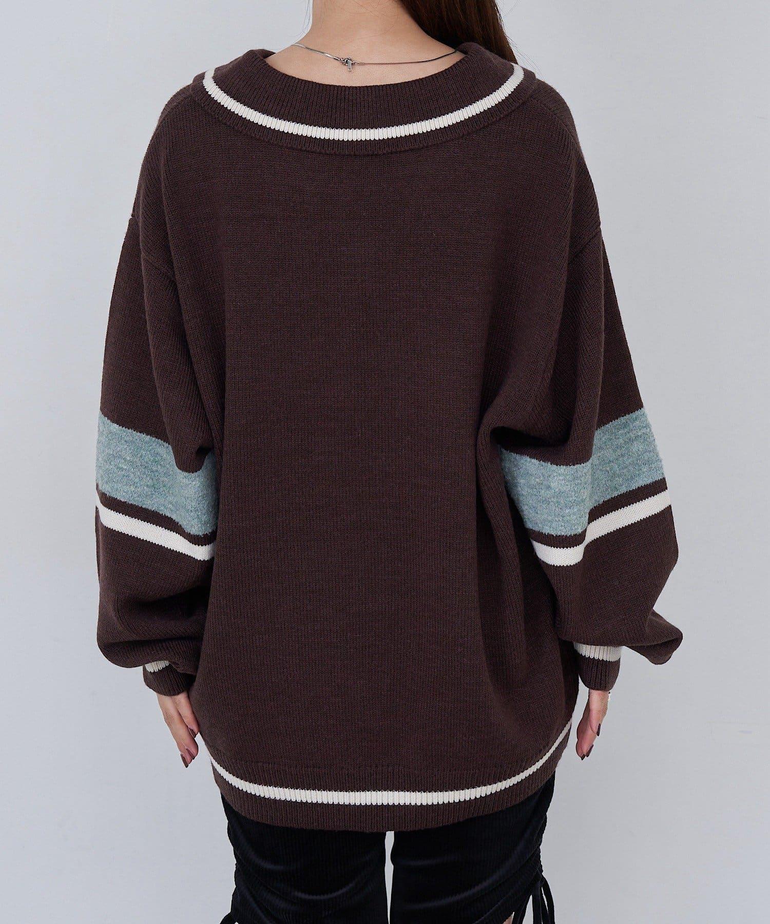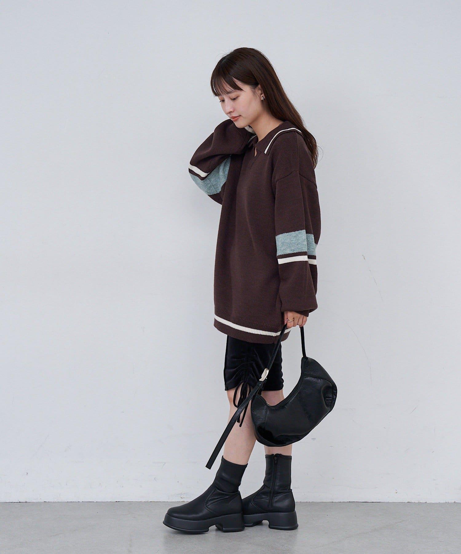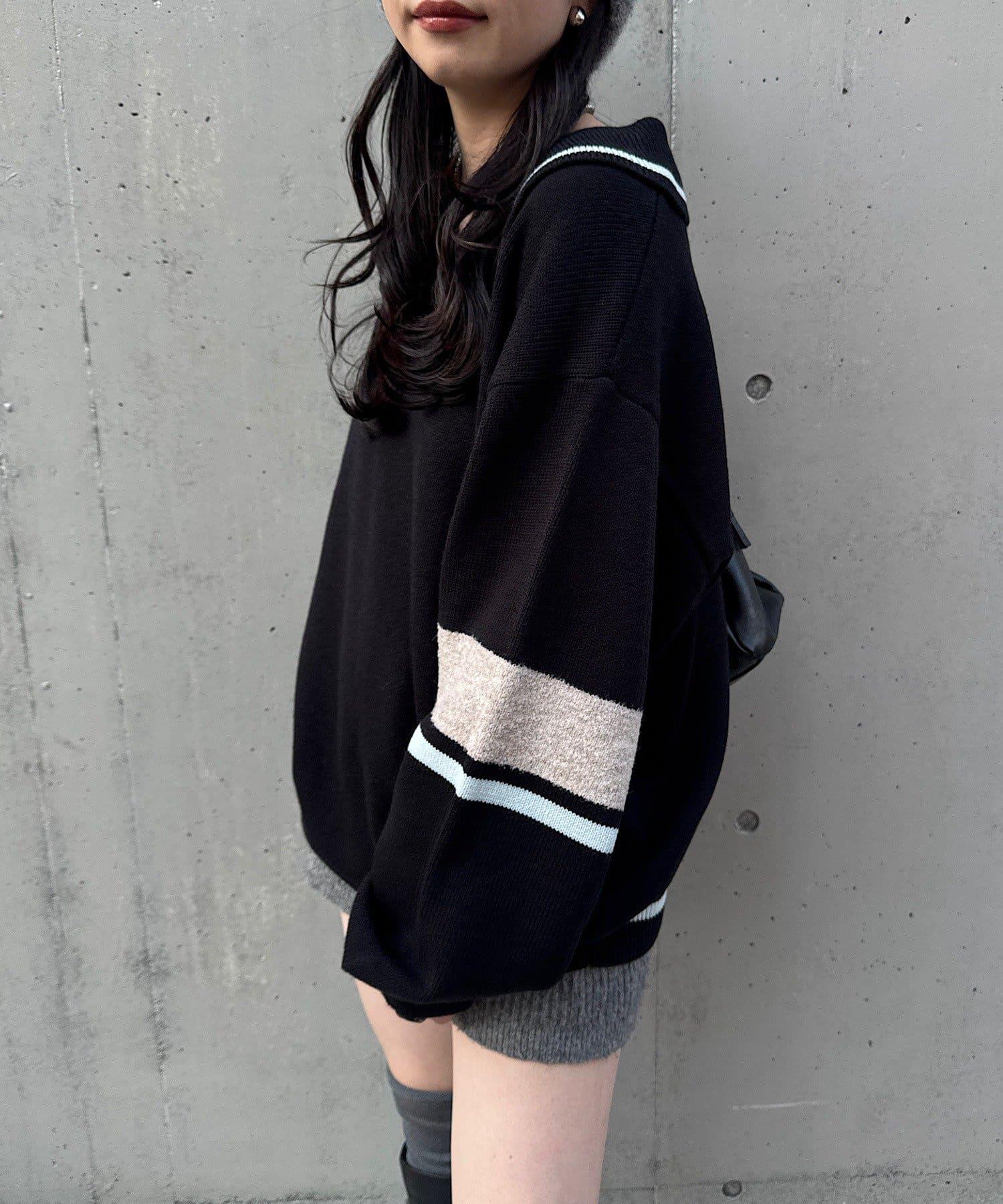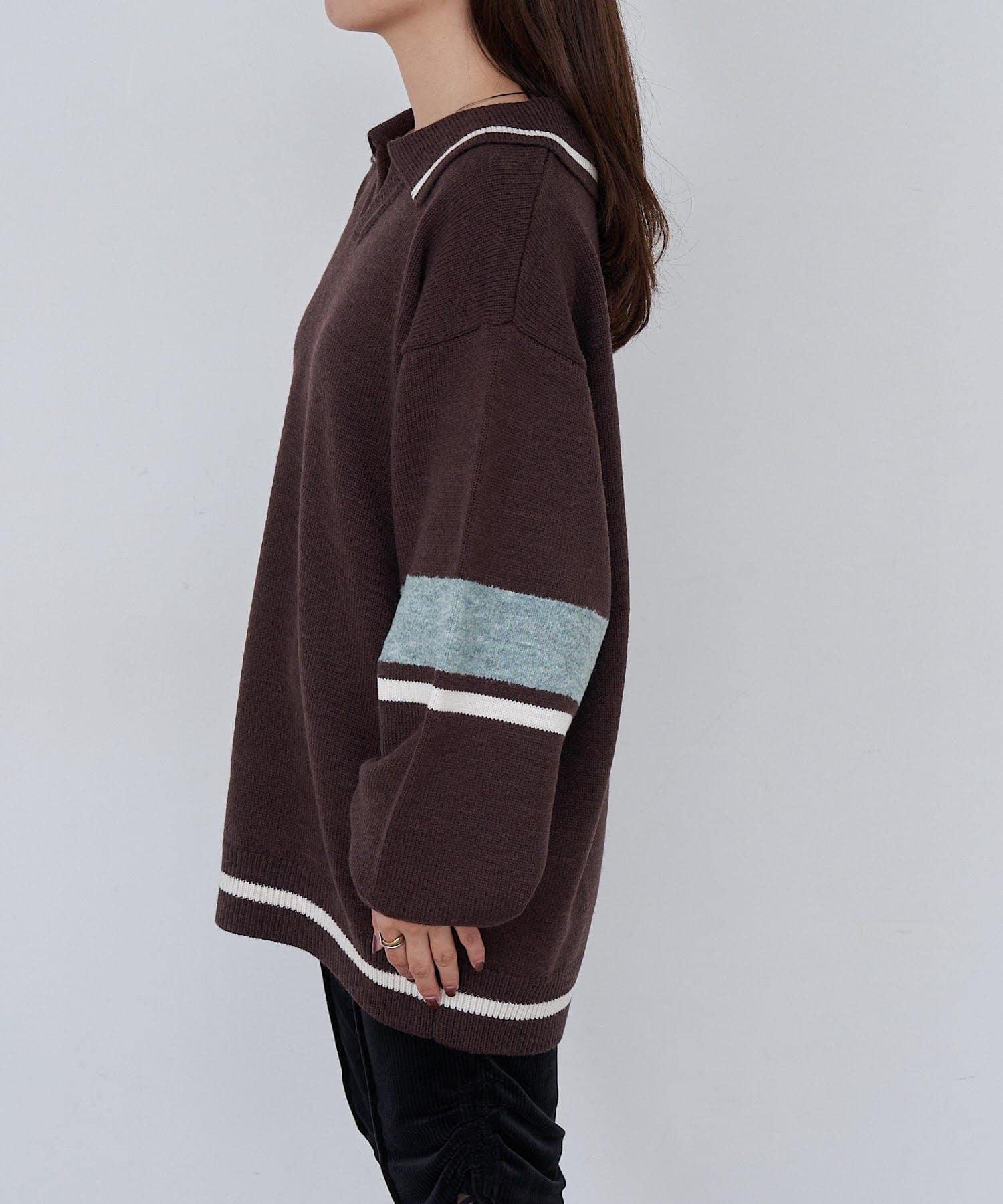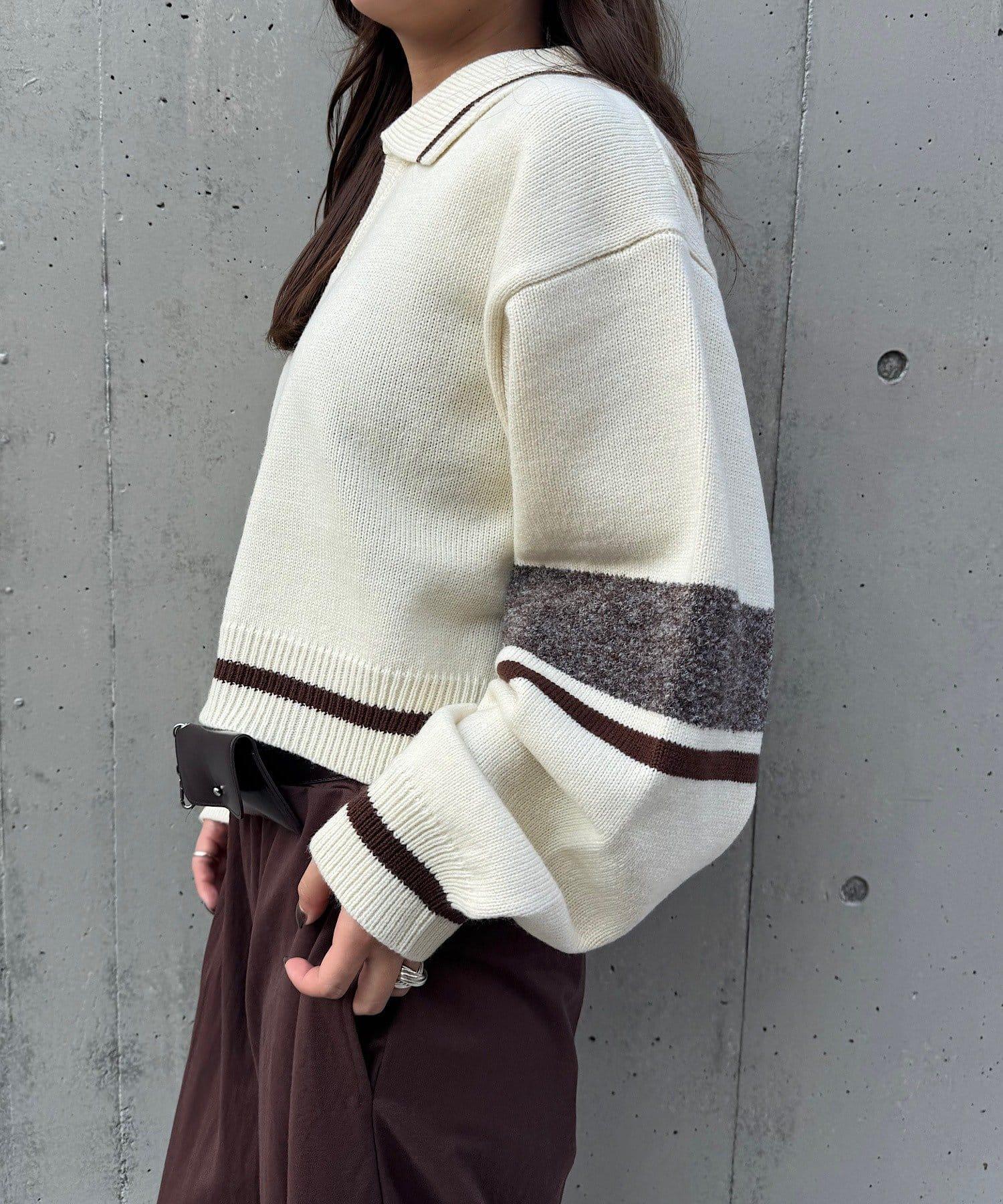 預約商品【S.M尺碼可選】翻領線條針織套頭衫