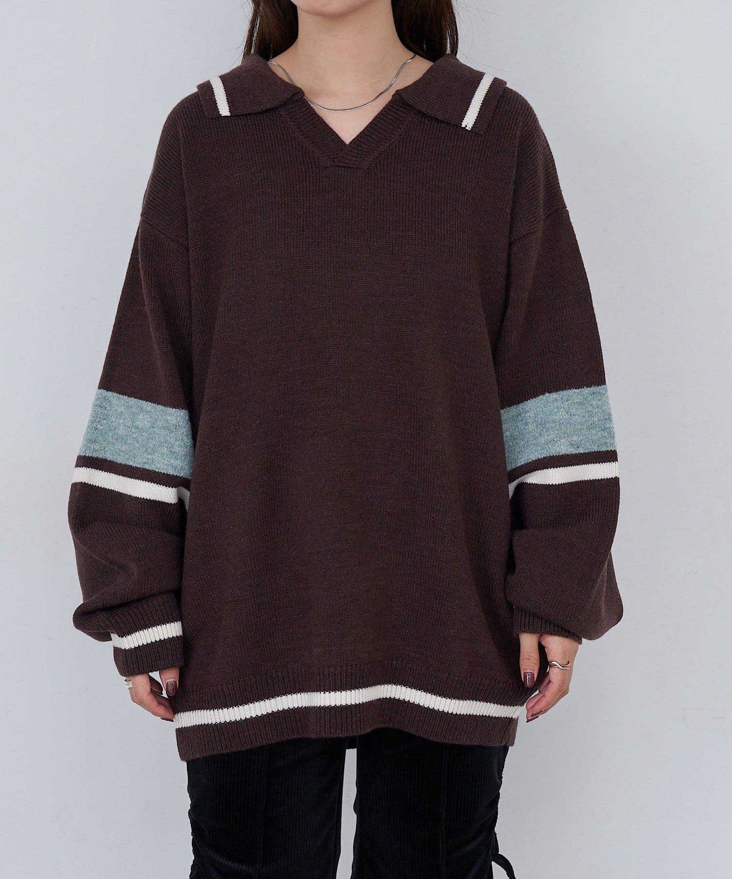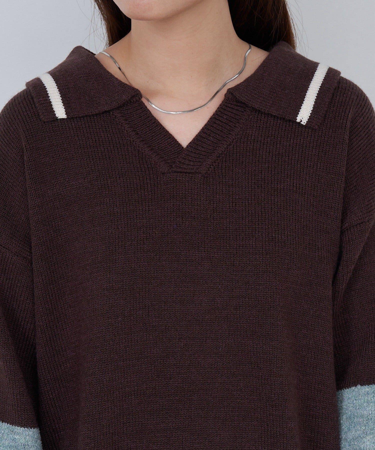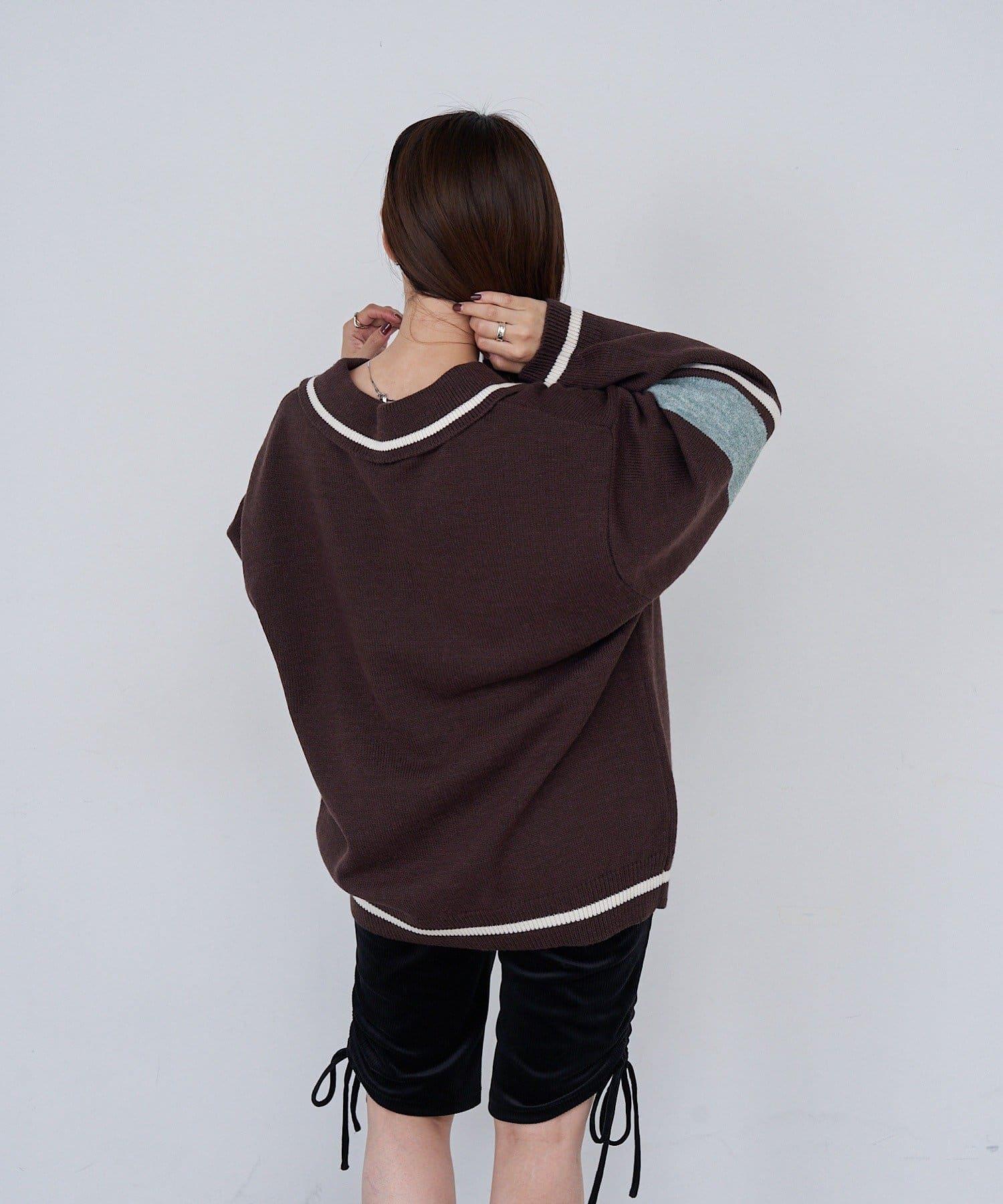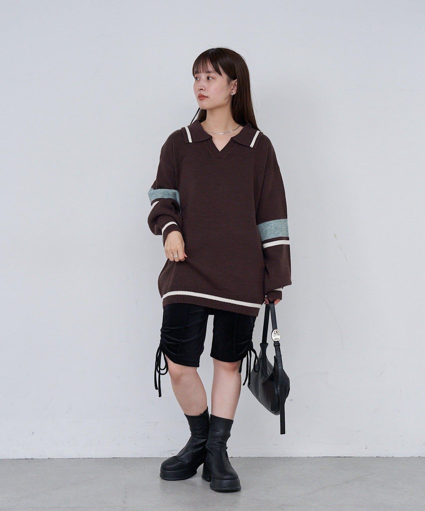 預約商品【S.M尺碼可選】翻領線條針織套頭衫