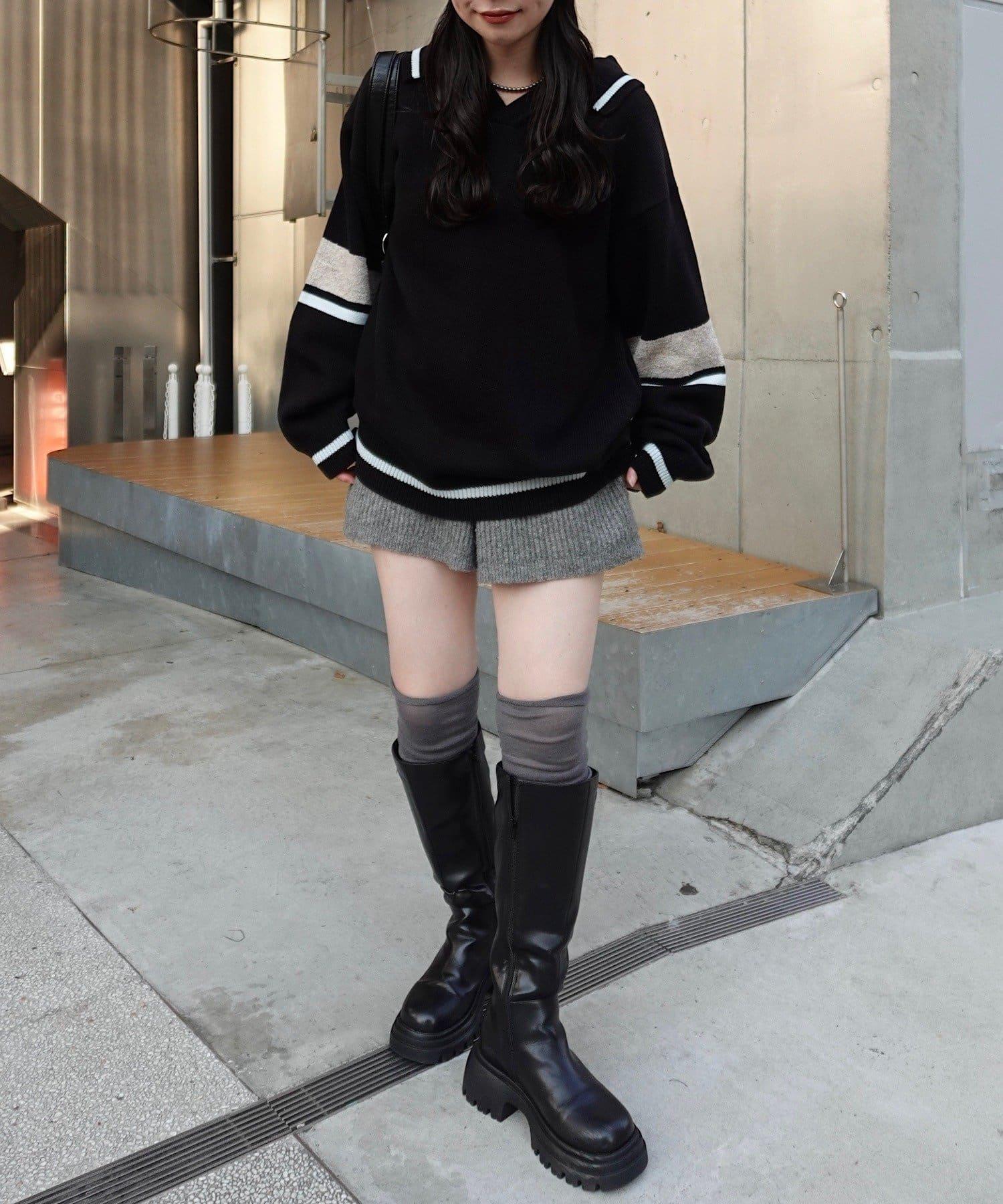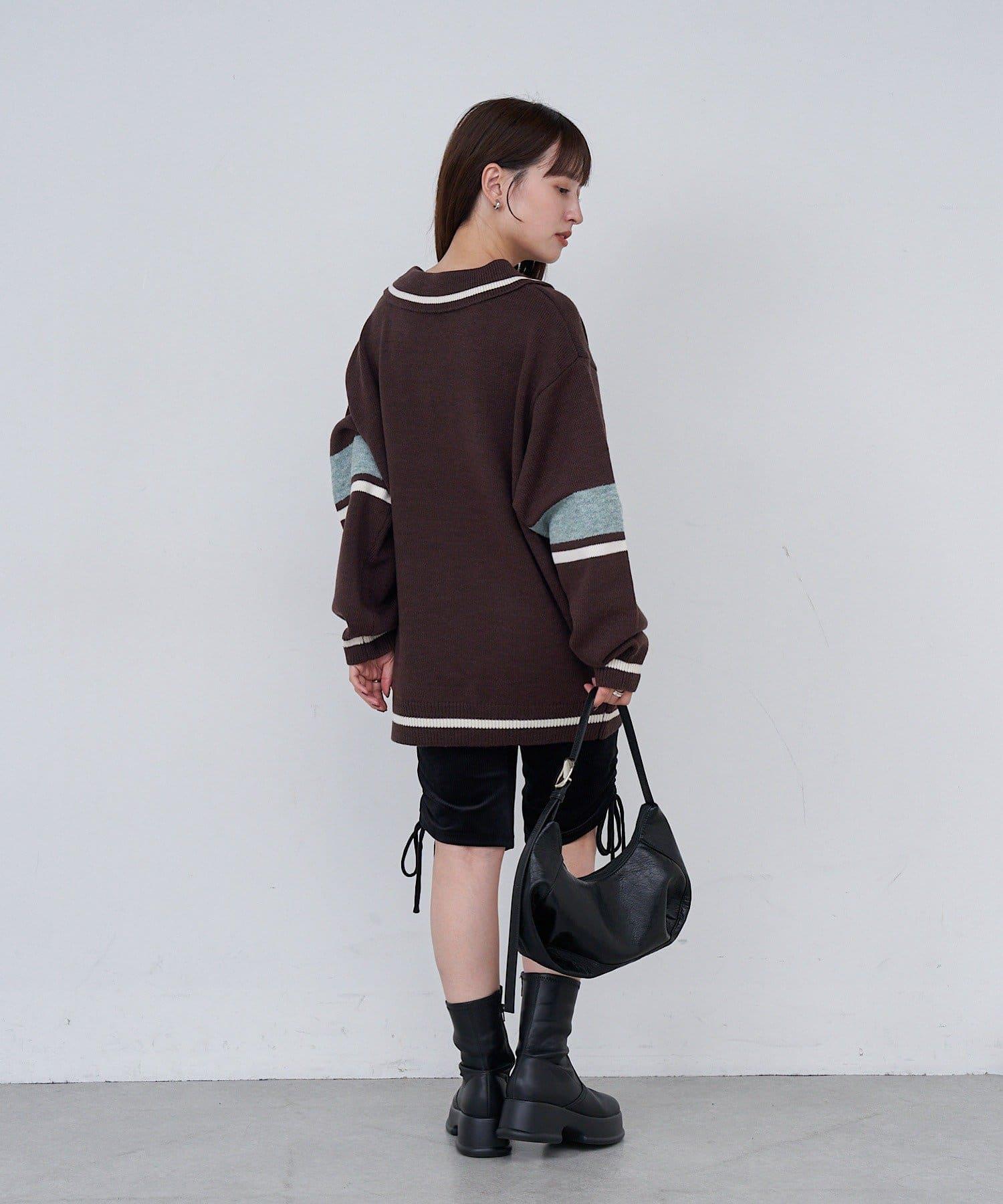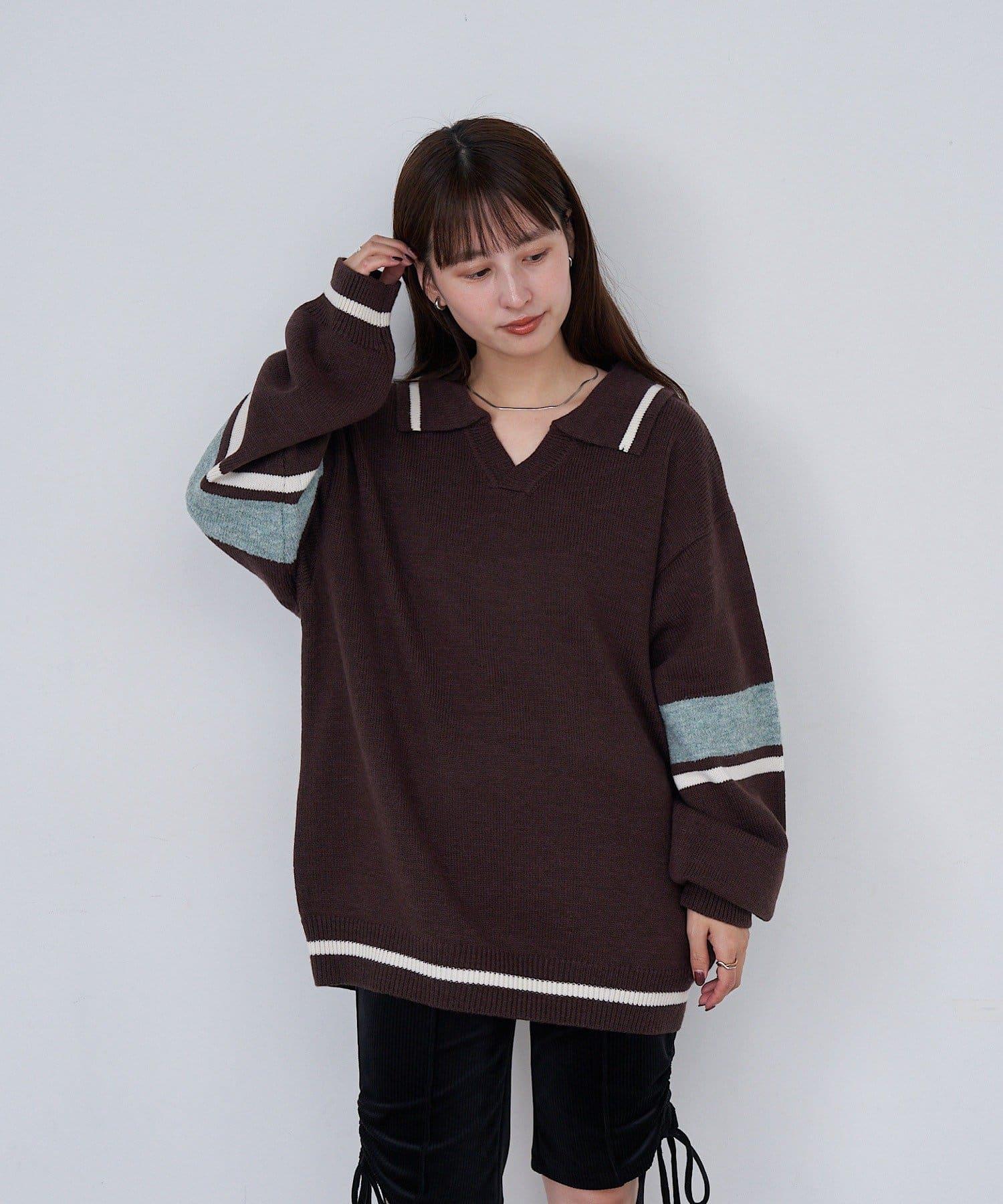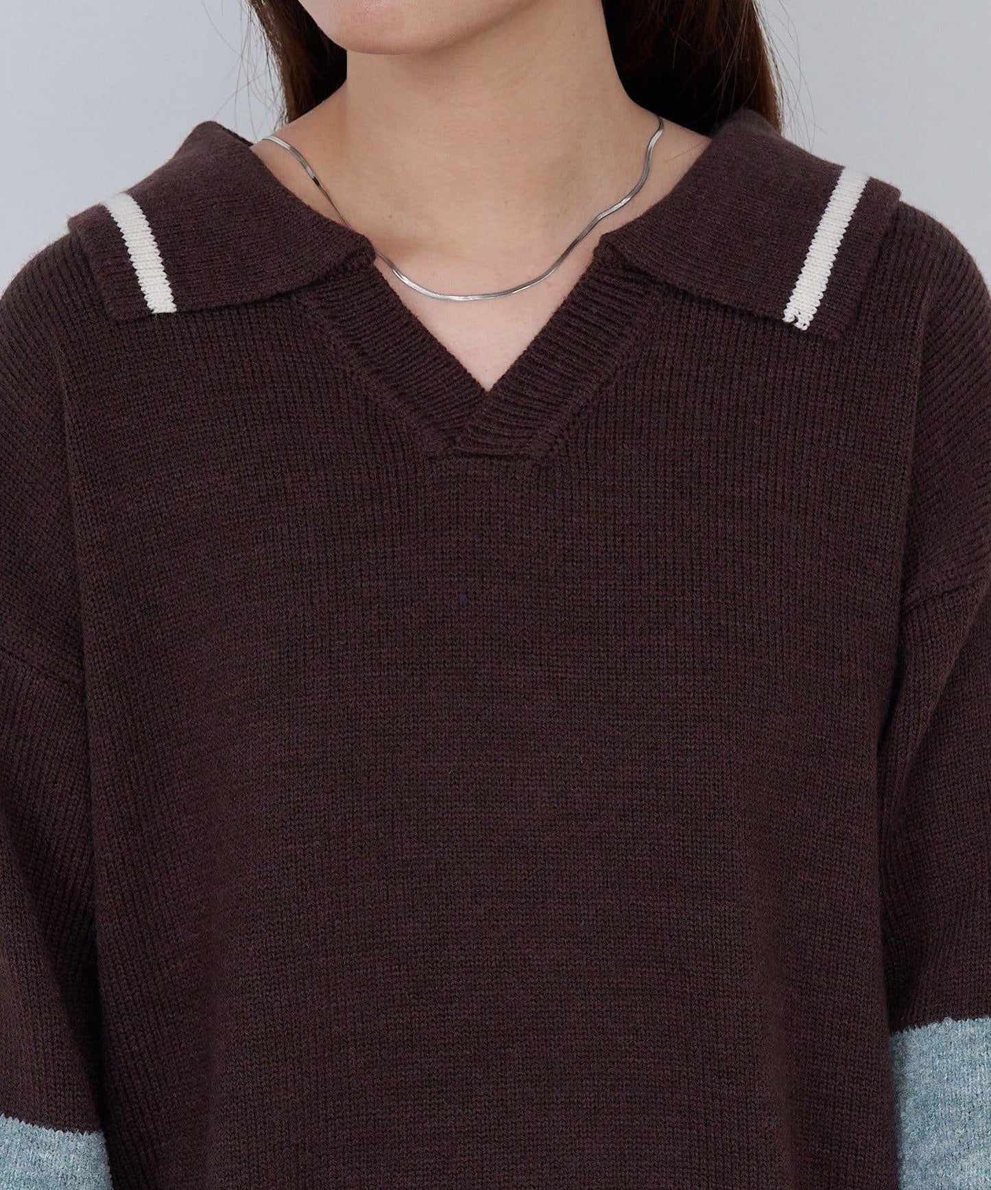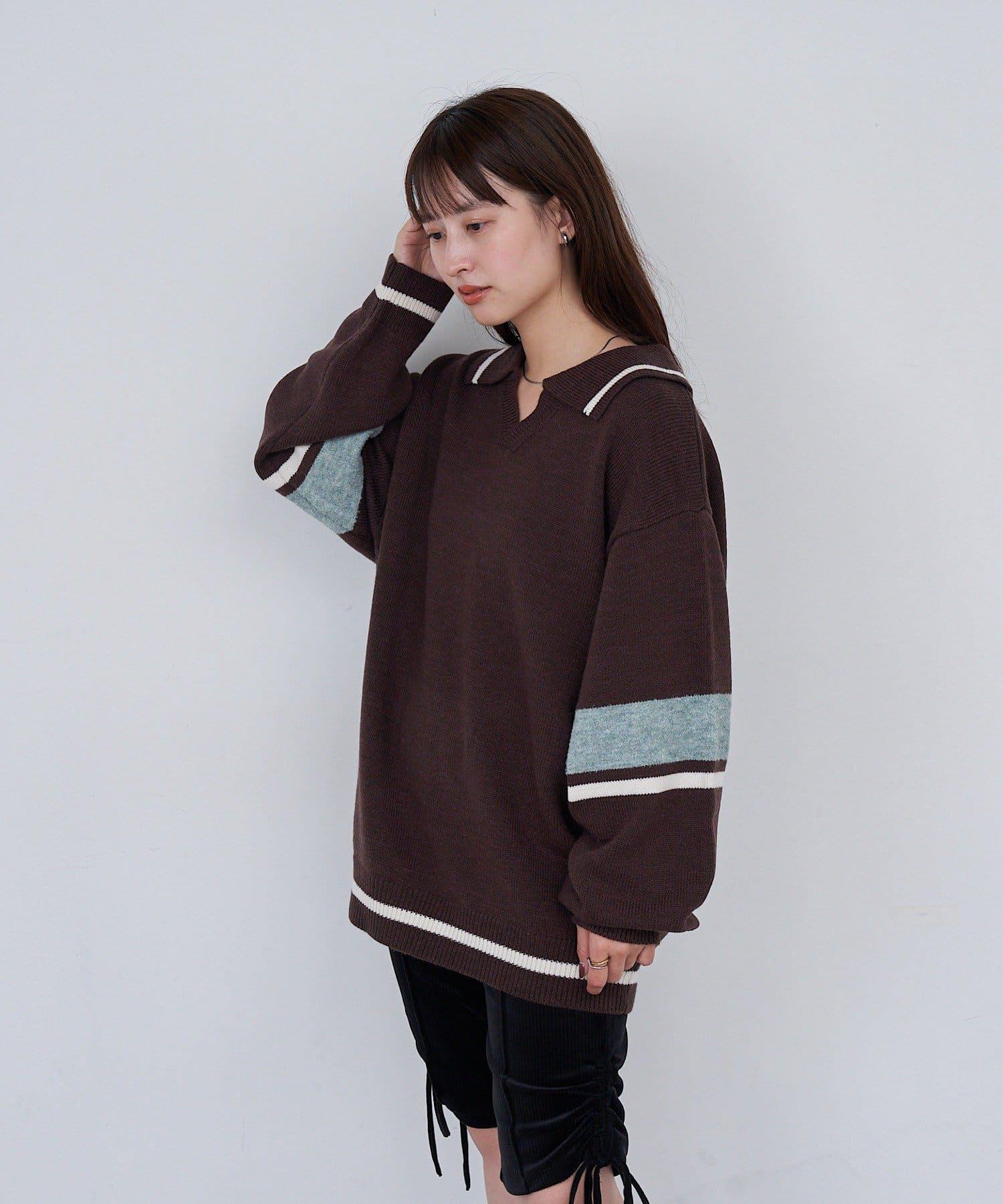 預約商品【S.M尺碼可選】翻領線條針織套頭衫