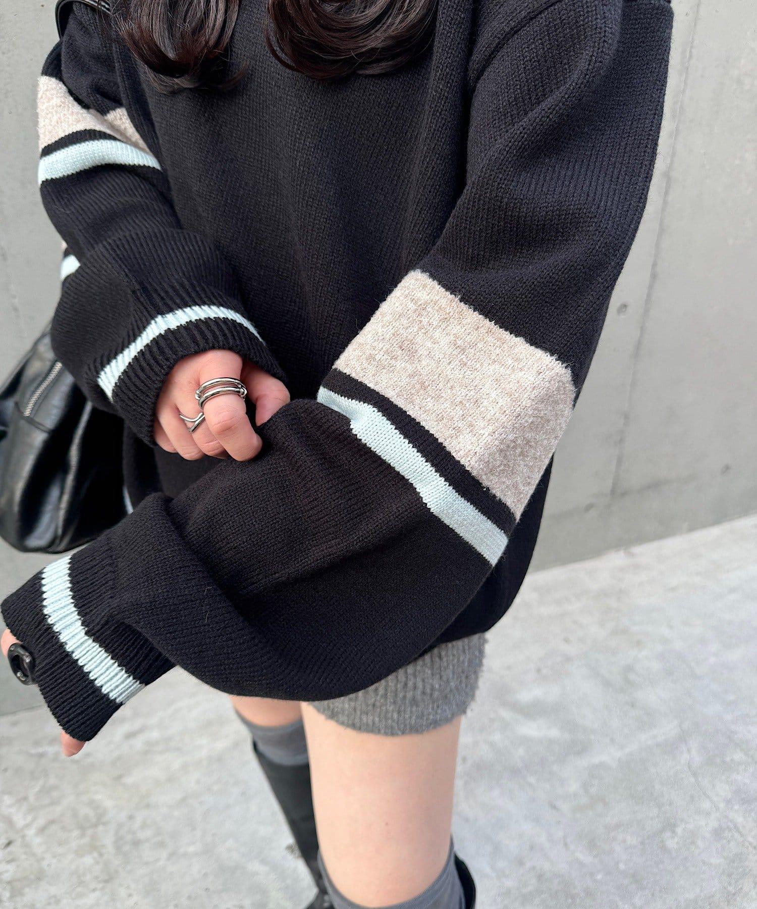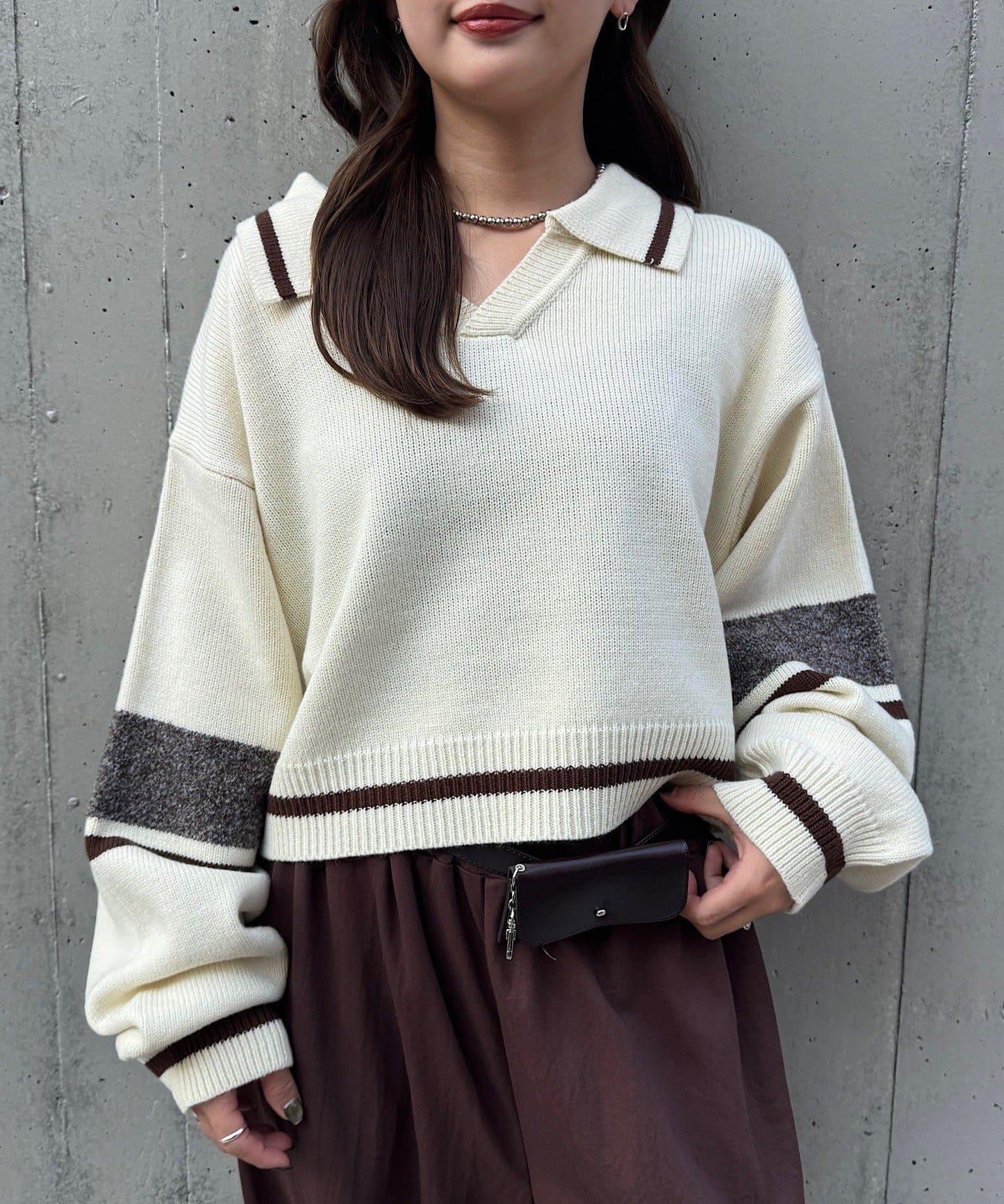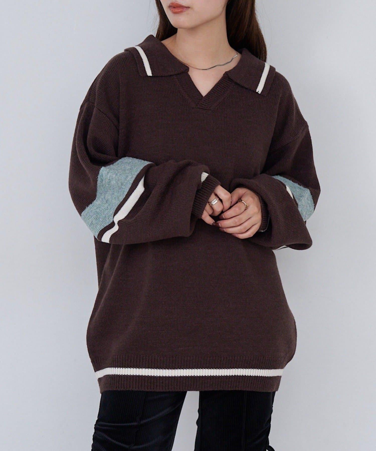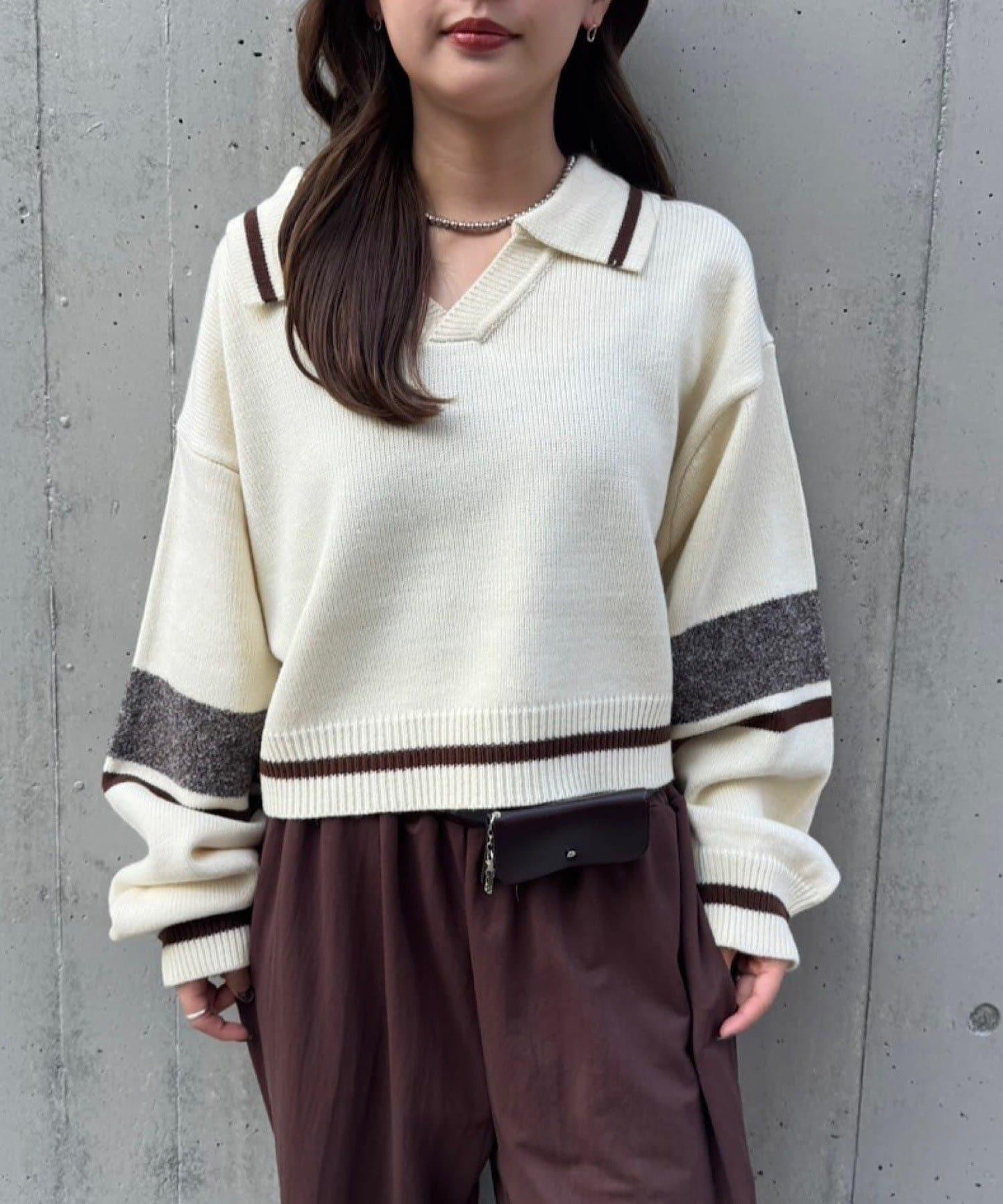 預約商品【S.M尺碼可選】翻領線條針織套頭衫