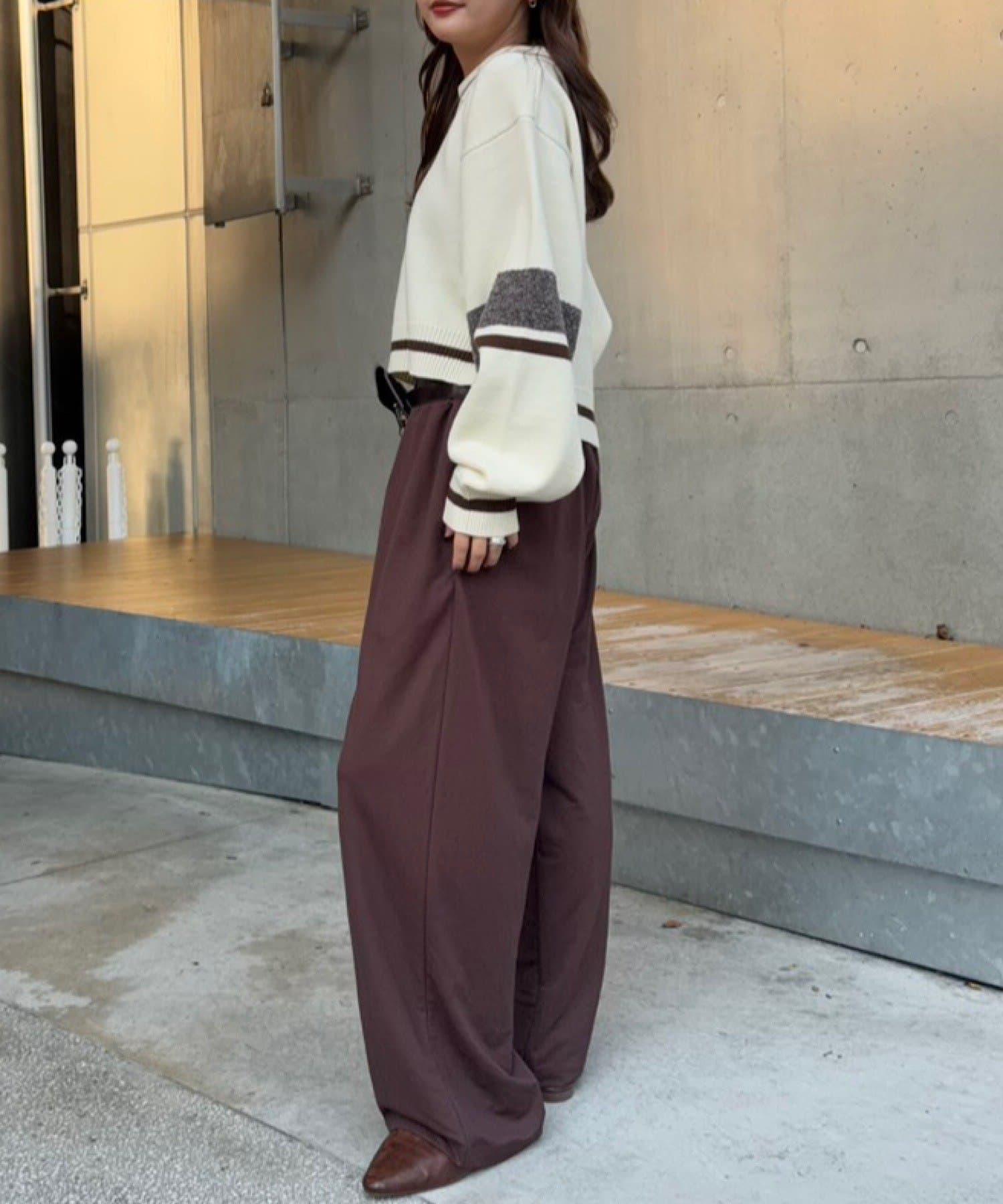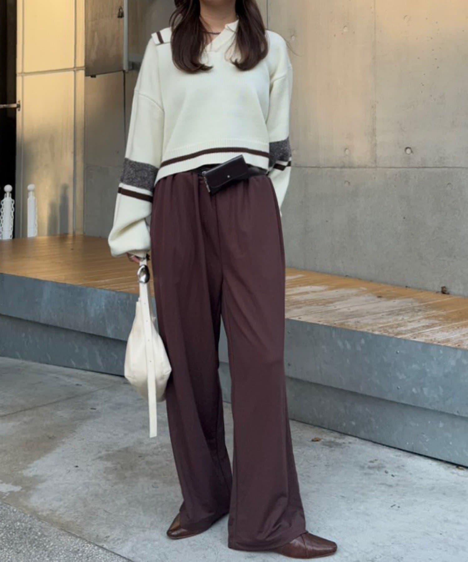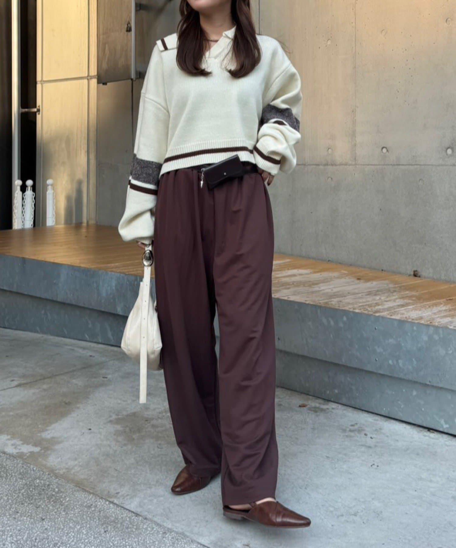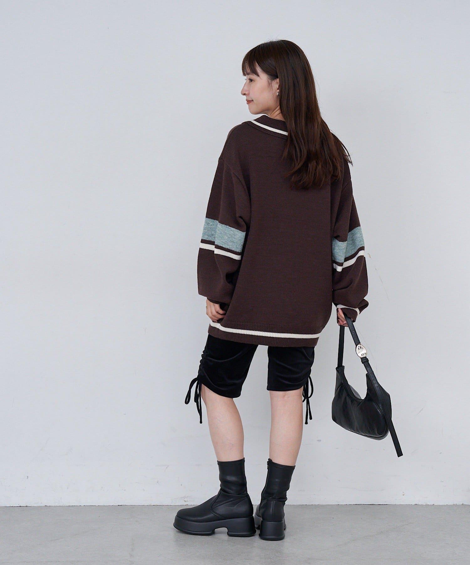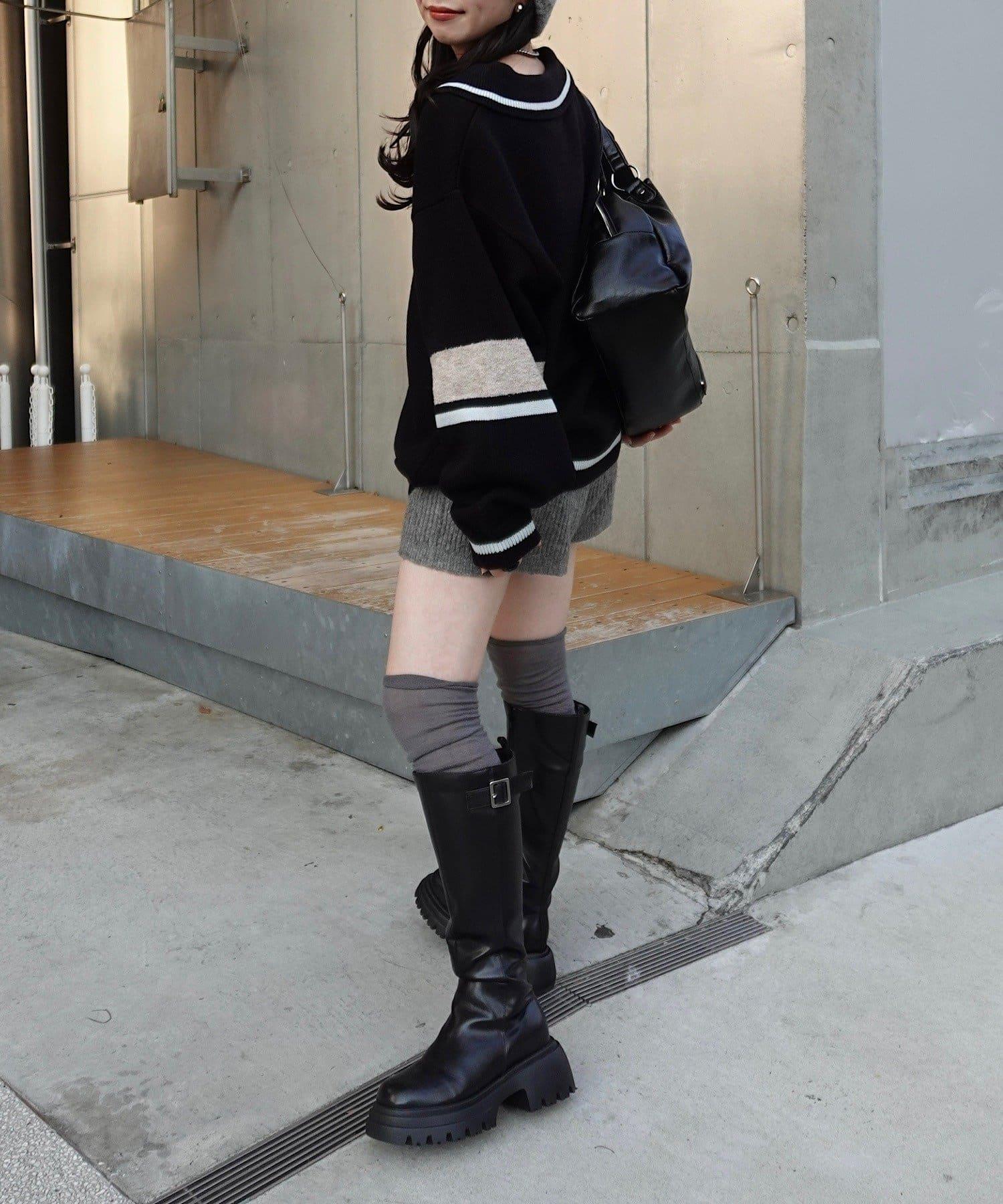 預約商品【S.M尺碼可選】翻領線條針織套頭衫