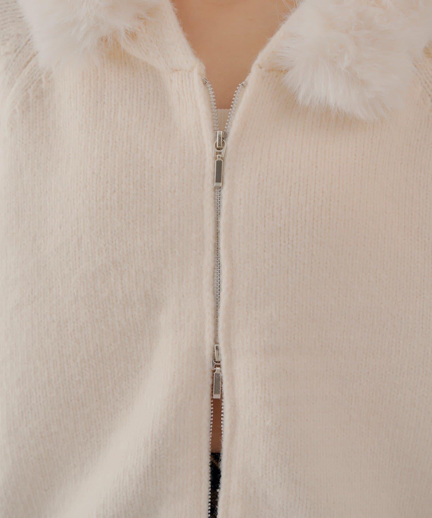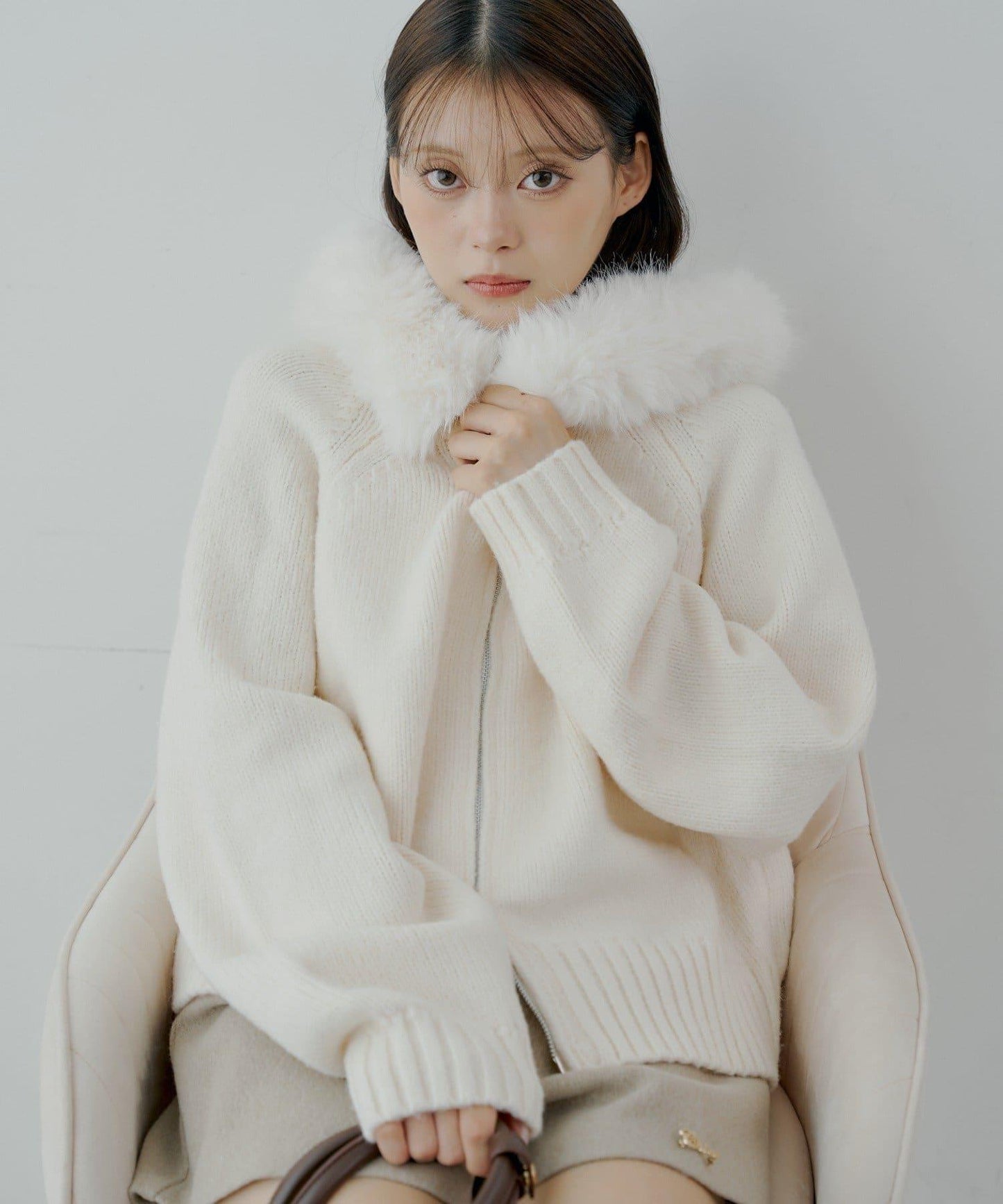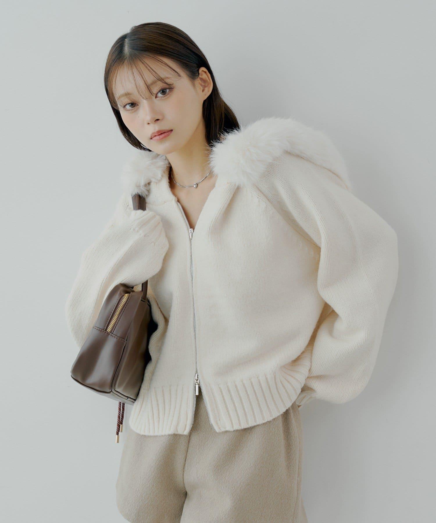 預約商品【SALON by Chico】可拆卸毛絨寬鬆雙拉鍊針織開衫