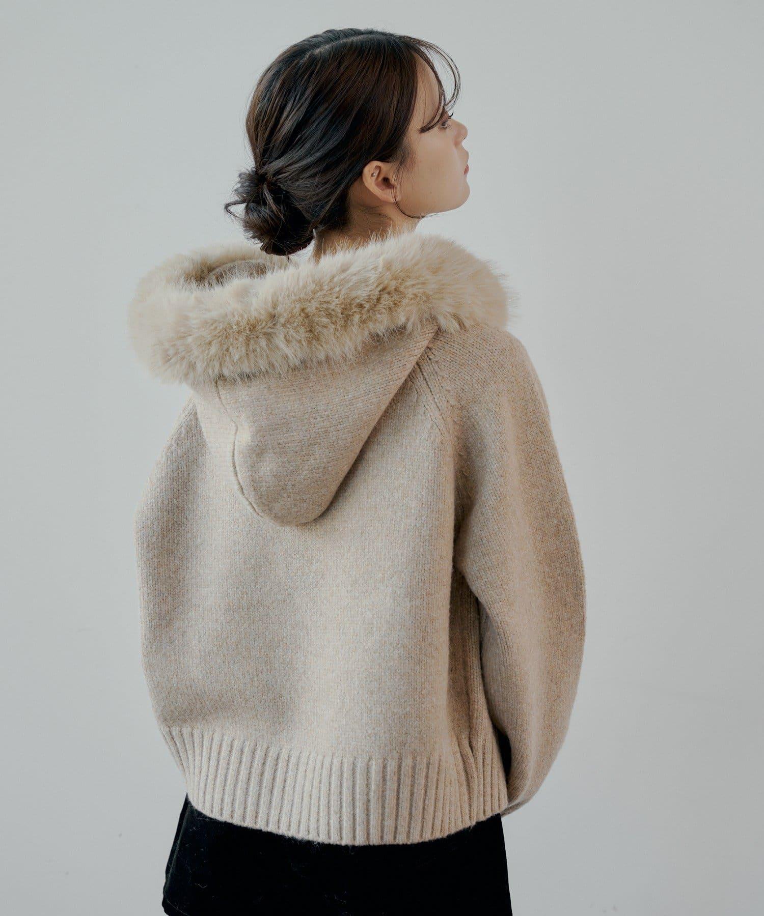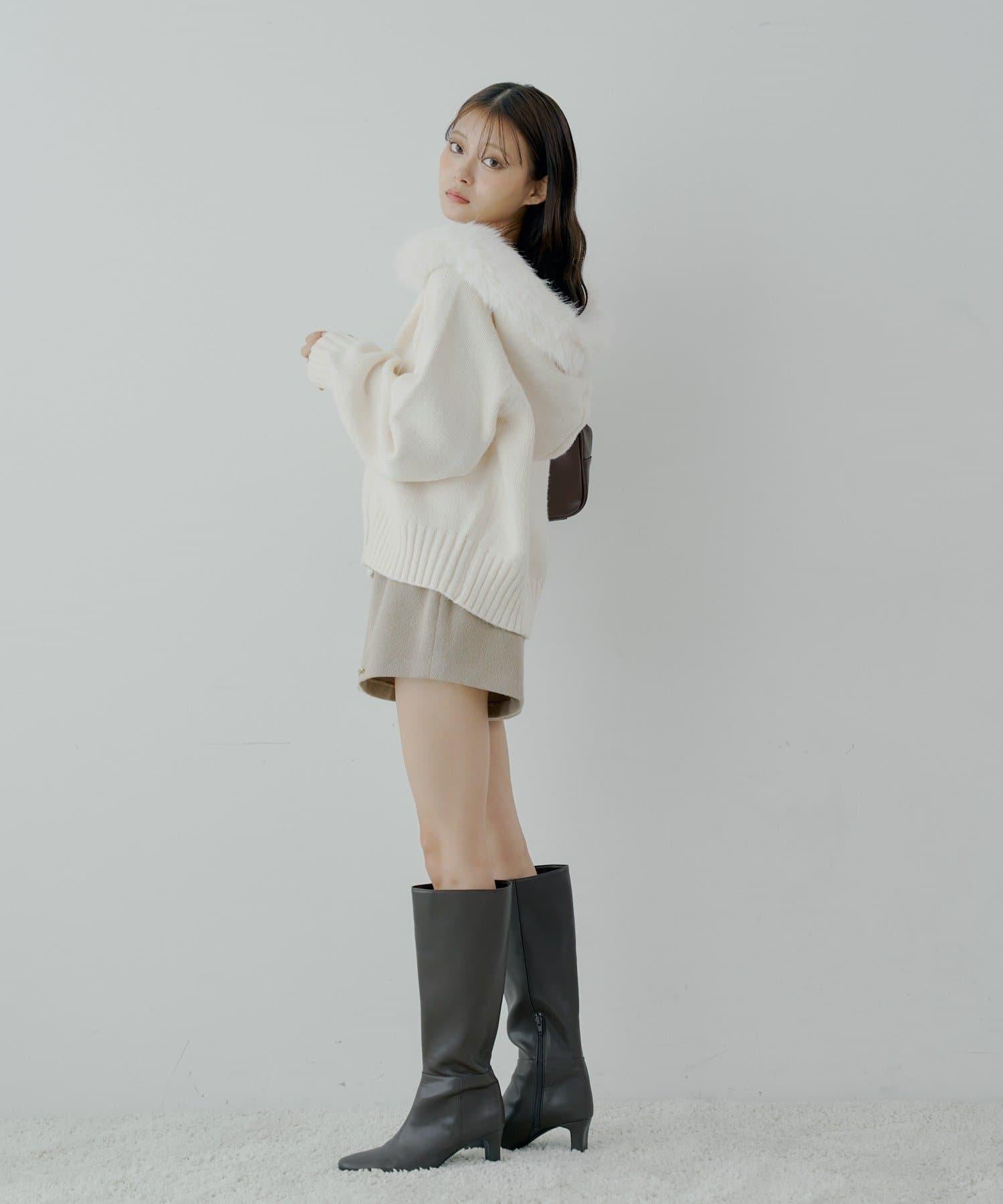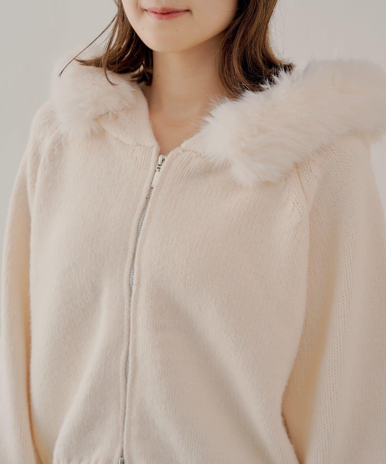 預約商品【SALON by Chico】可拆卸毛絨寬鬆雙拉鍊針織開衫