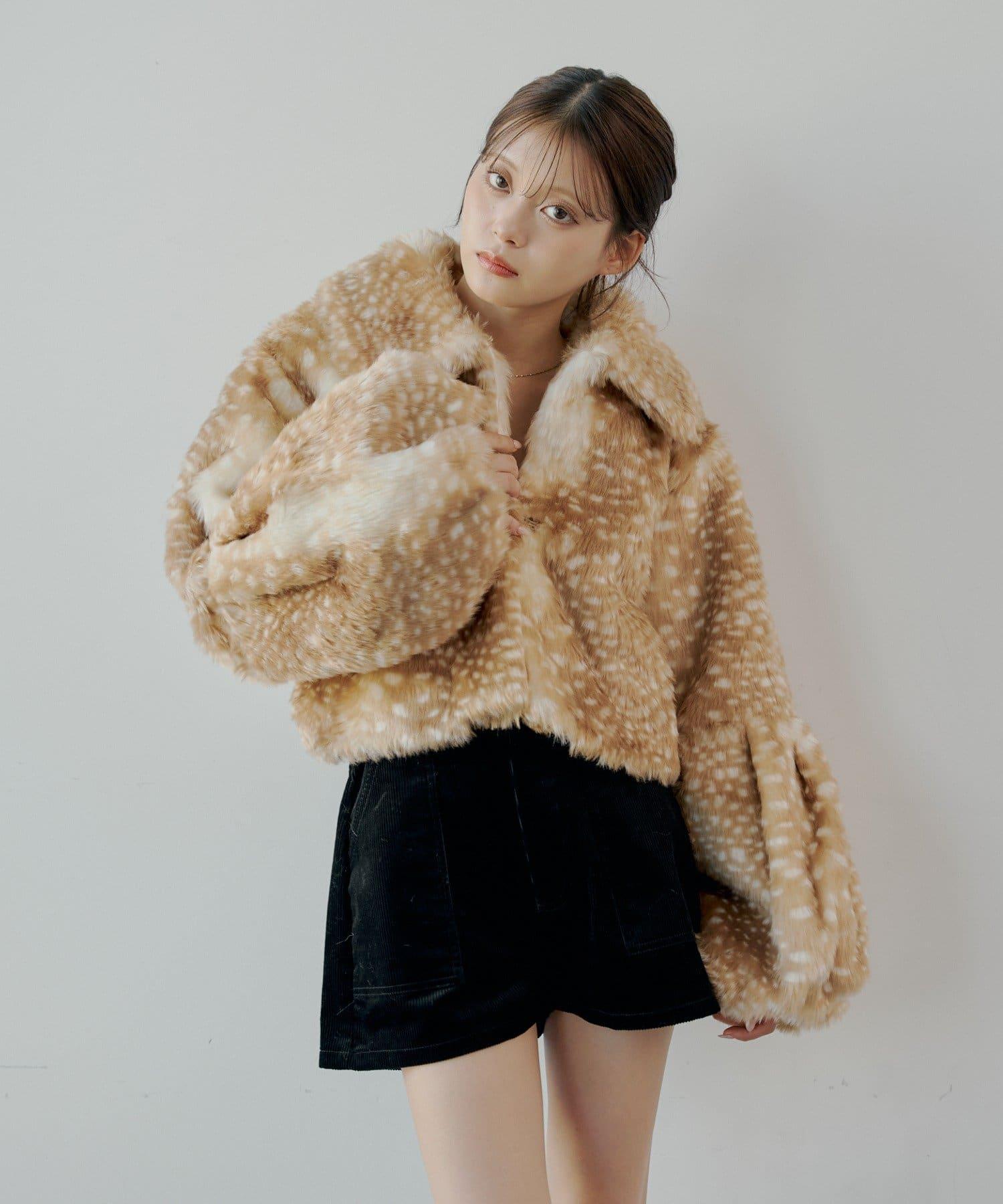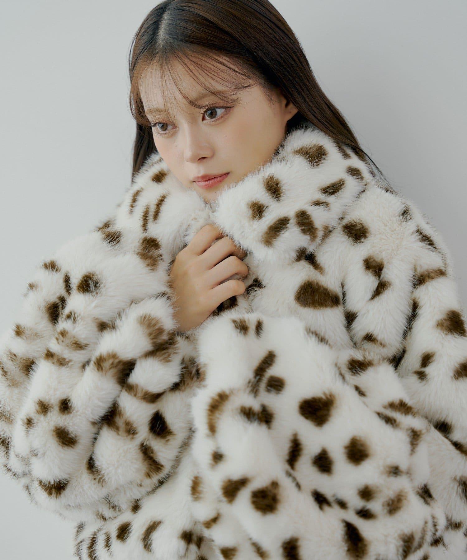 【SALON by Chico】可拆卸領短款動物紋大衣