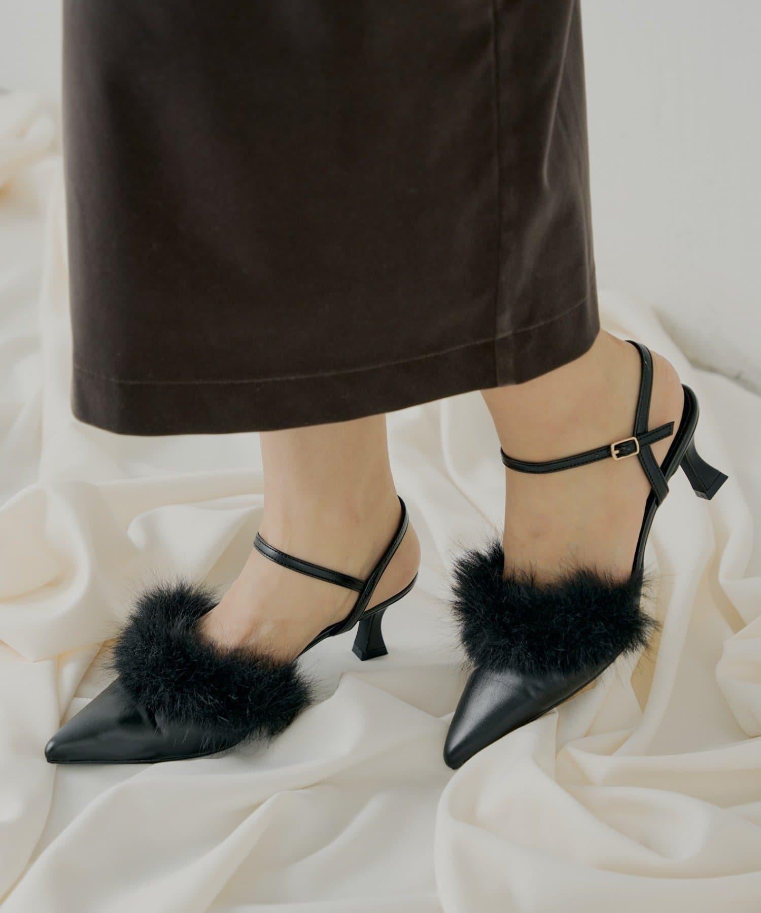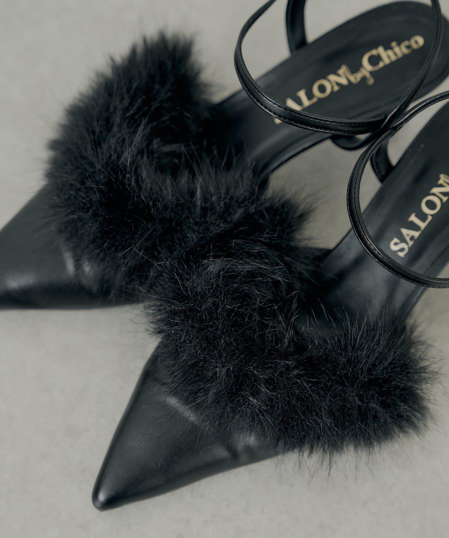 鞋面上蓬鬆的皮草為您的造型增添了一絲魅力。