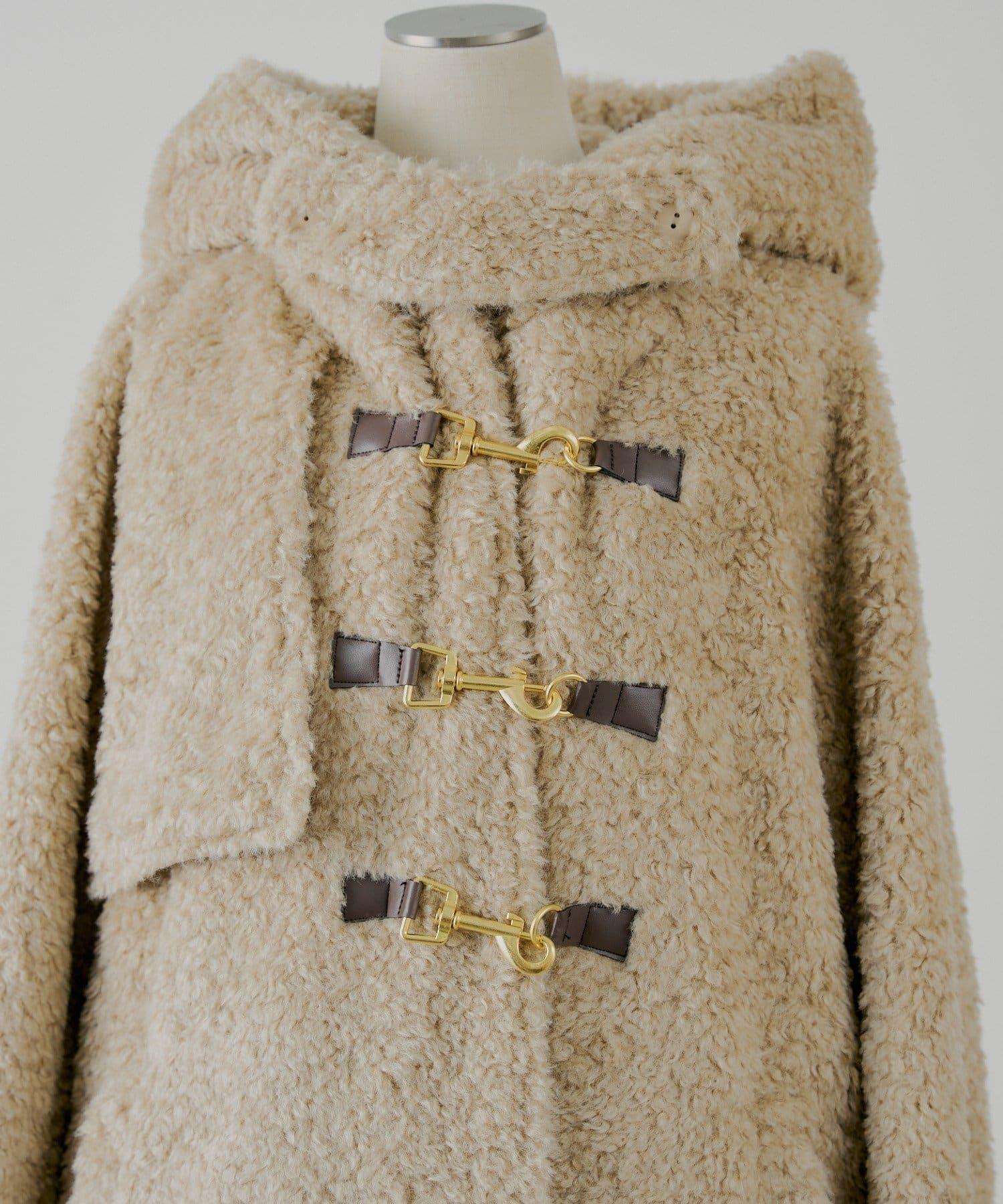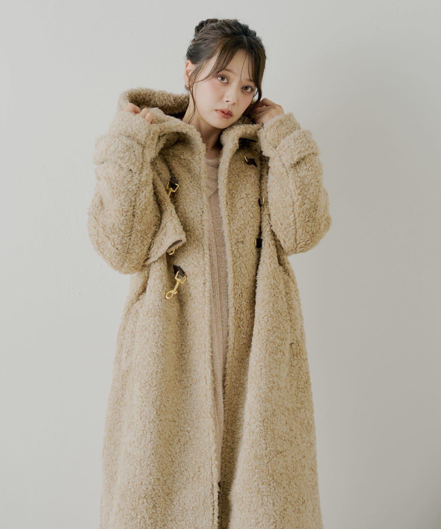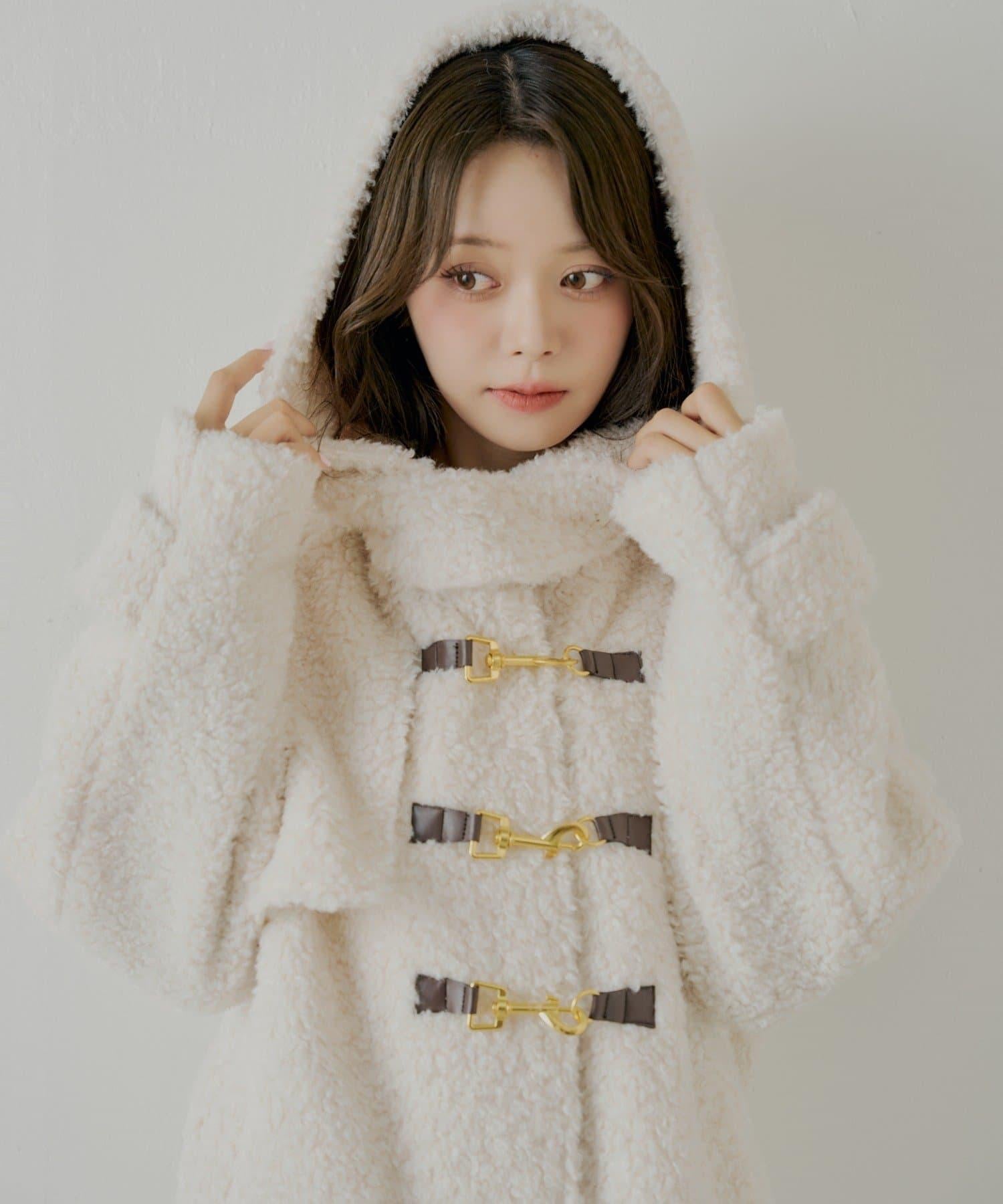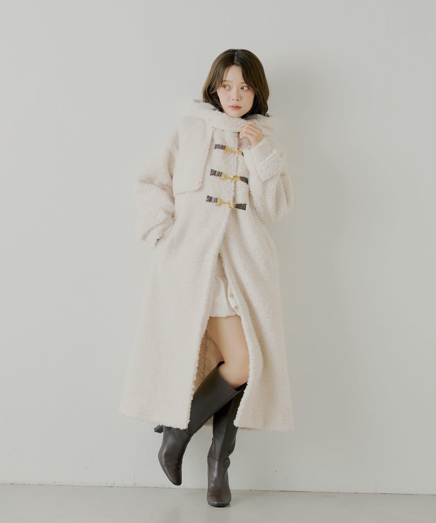 【SALON by Chico】短款羊羔絨連帽長款牛角扣大衣