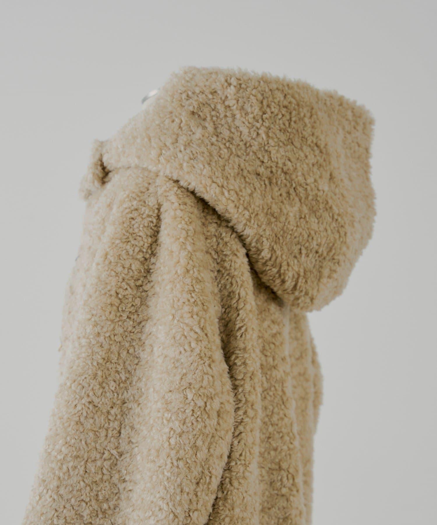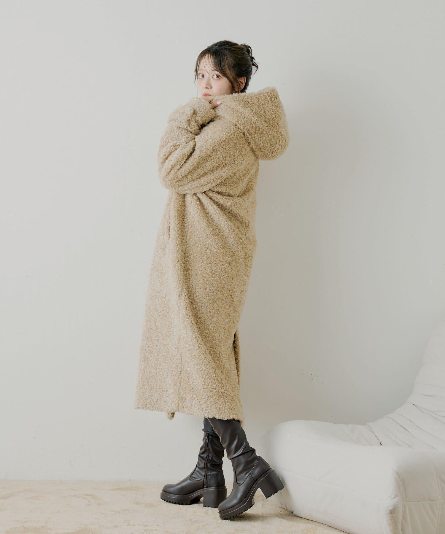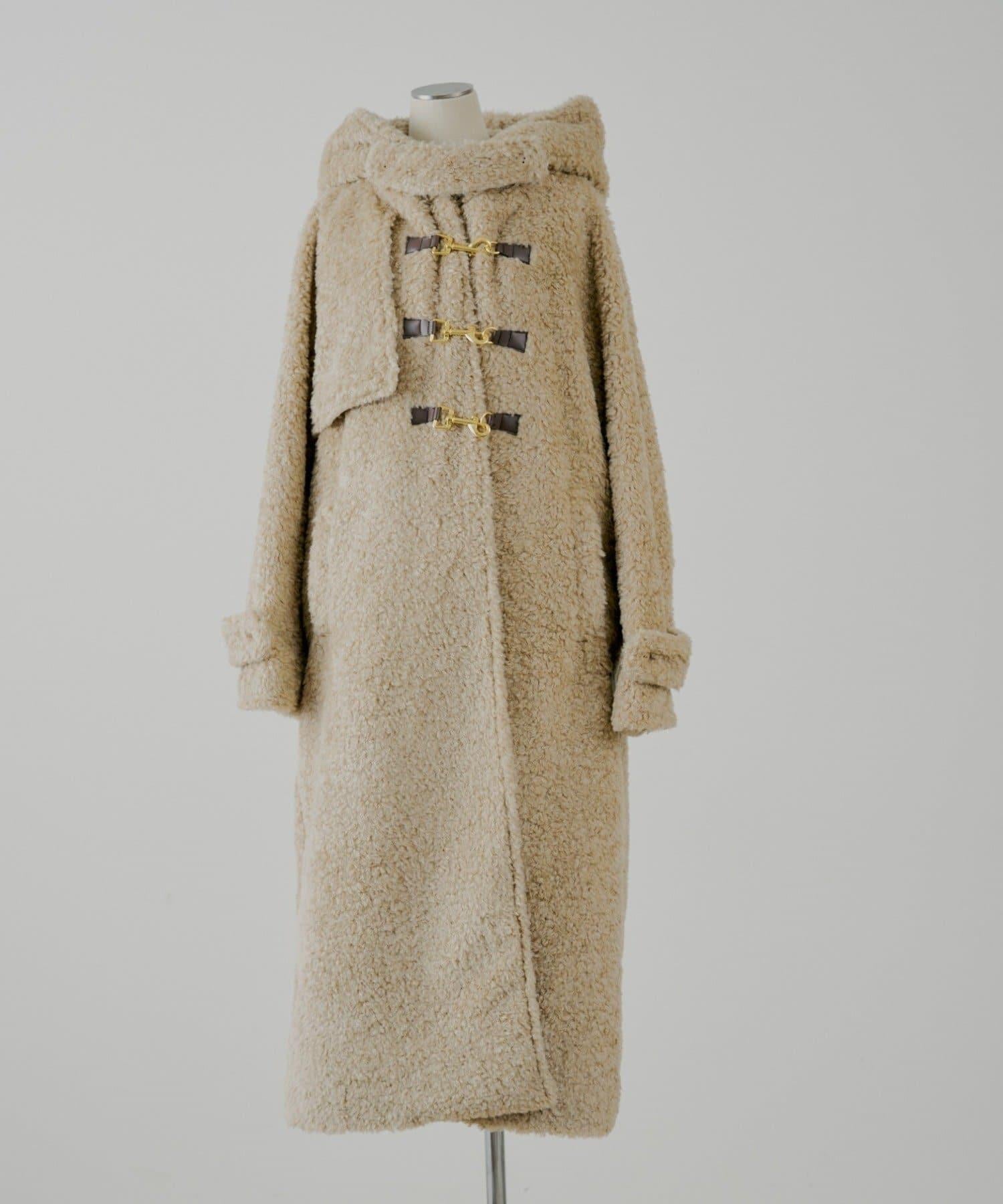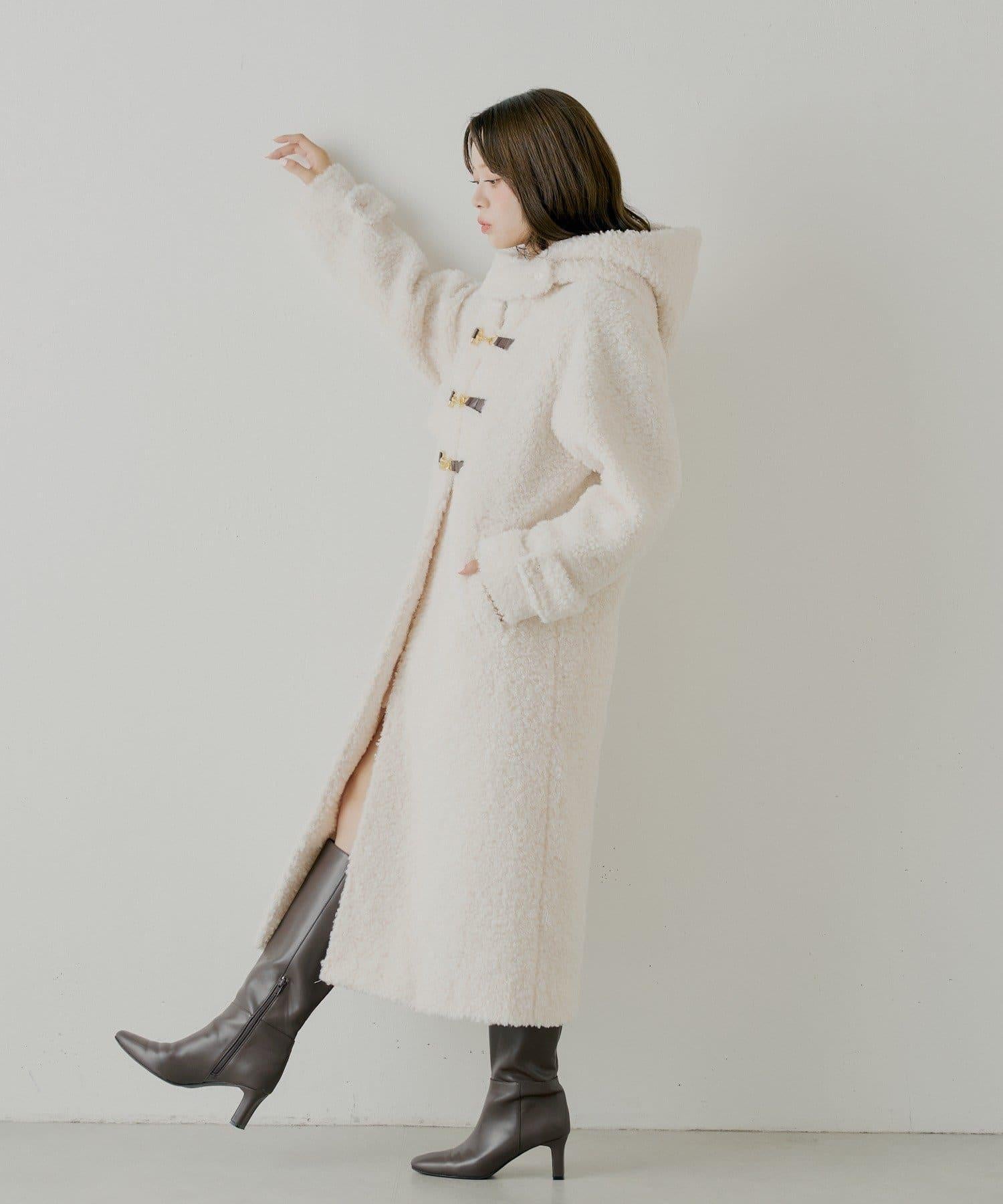 【SALON by Chico】短款羊羔絨連帽長款牛角扣大衣