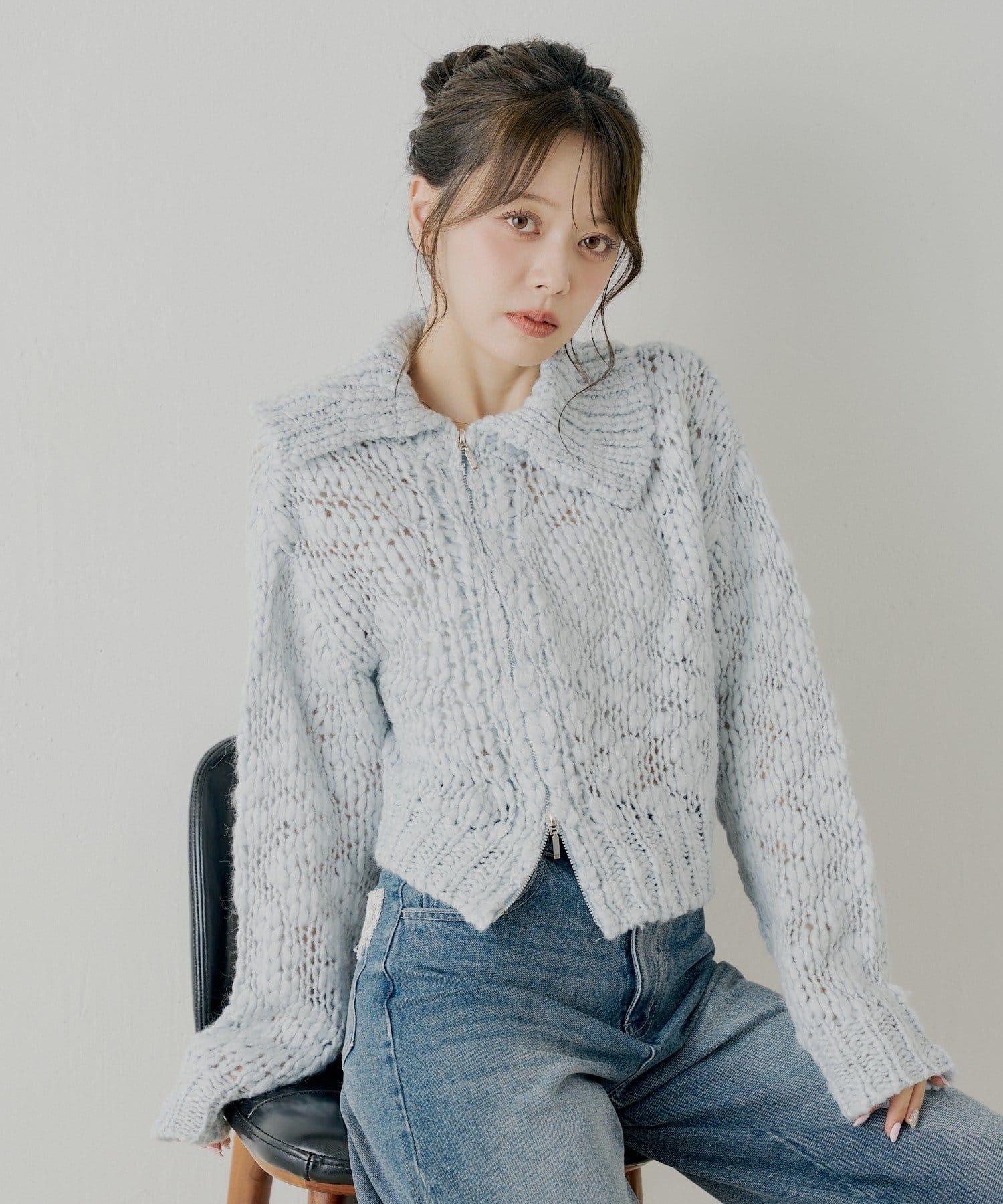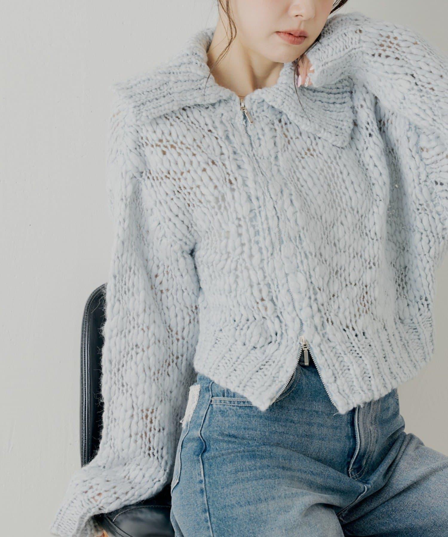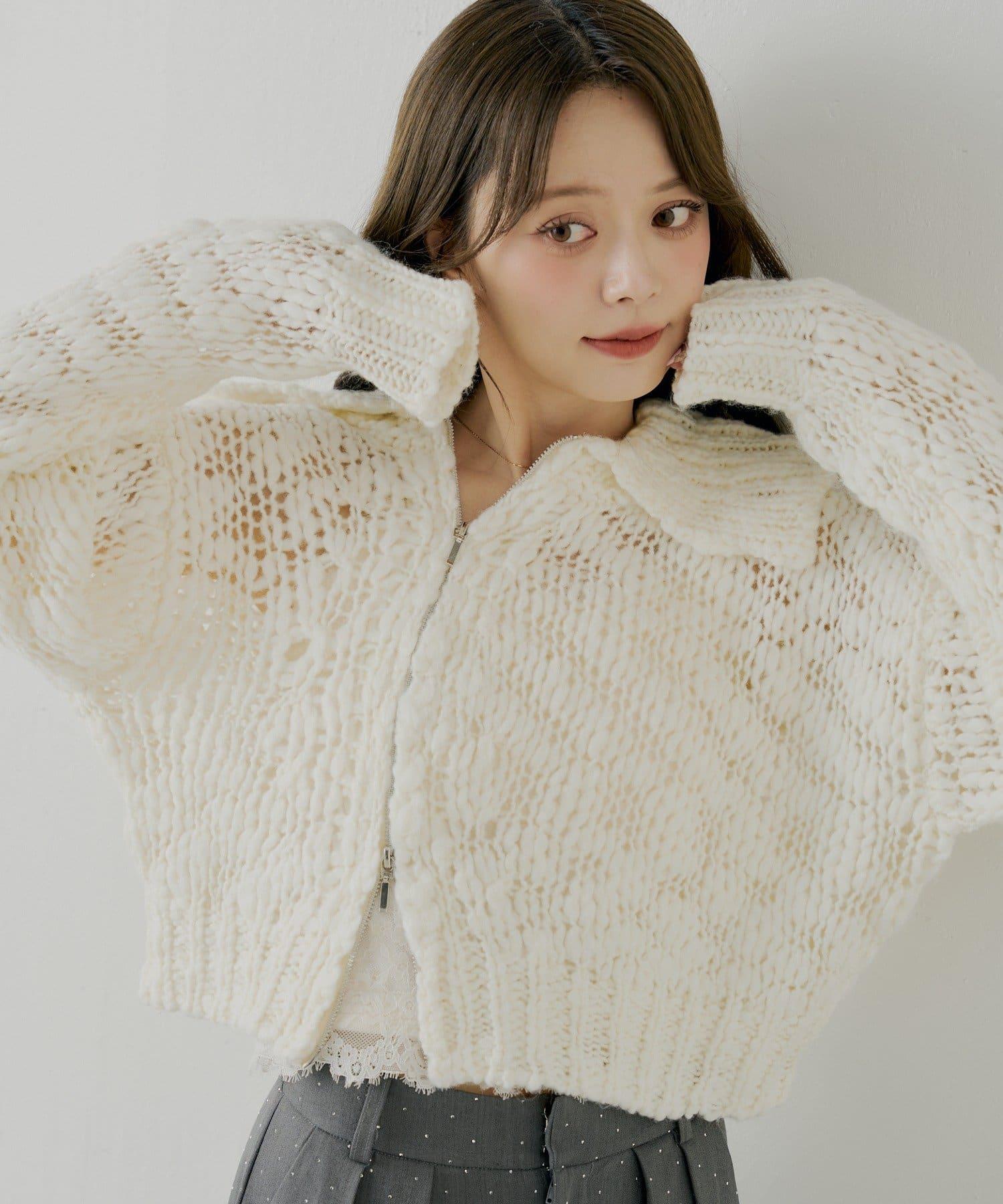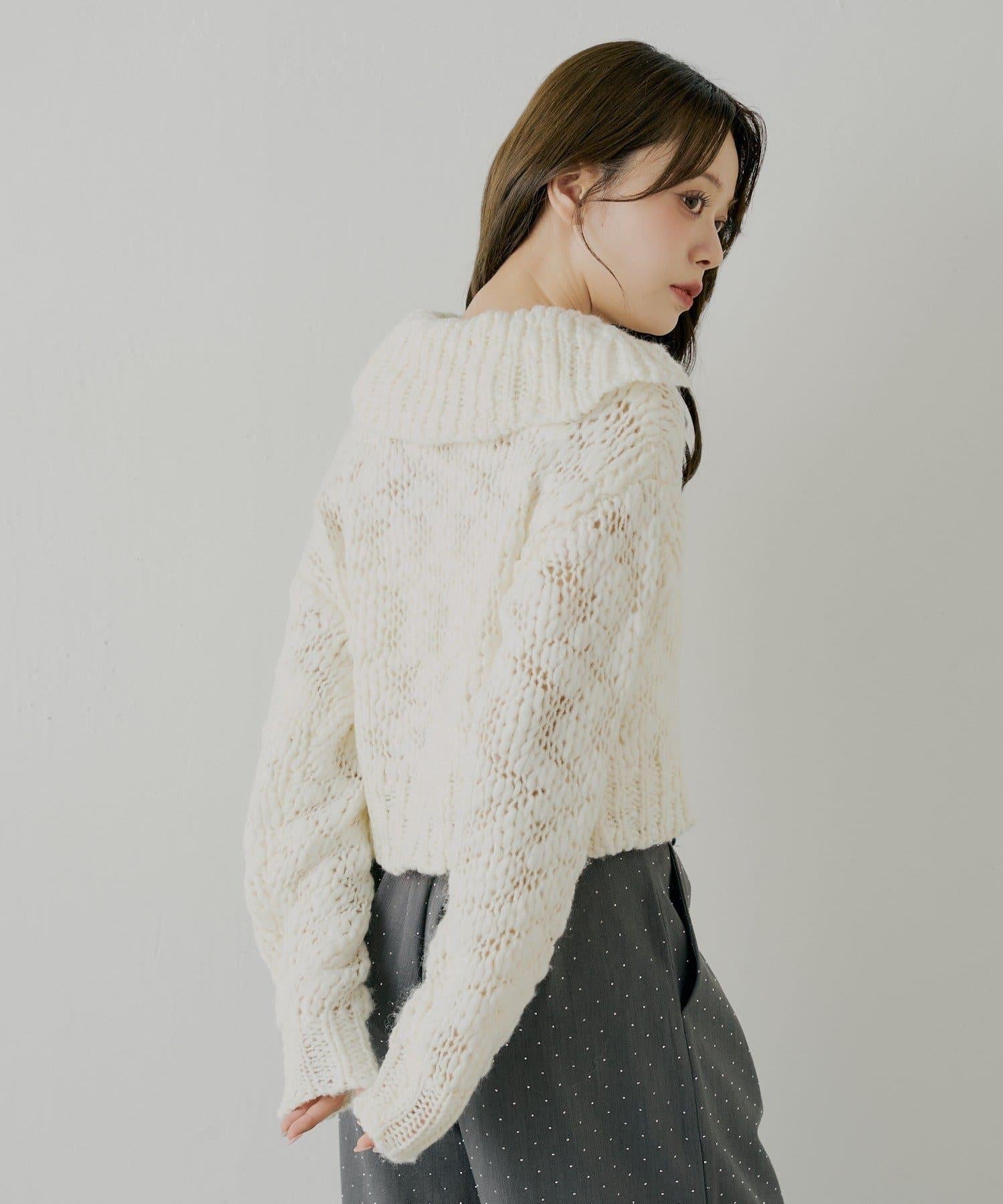 【SALON by Chico】粗針織不對稱拉鍊寬鬆針織衫