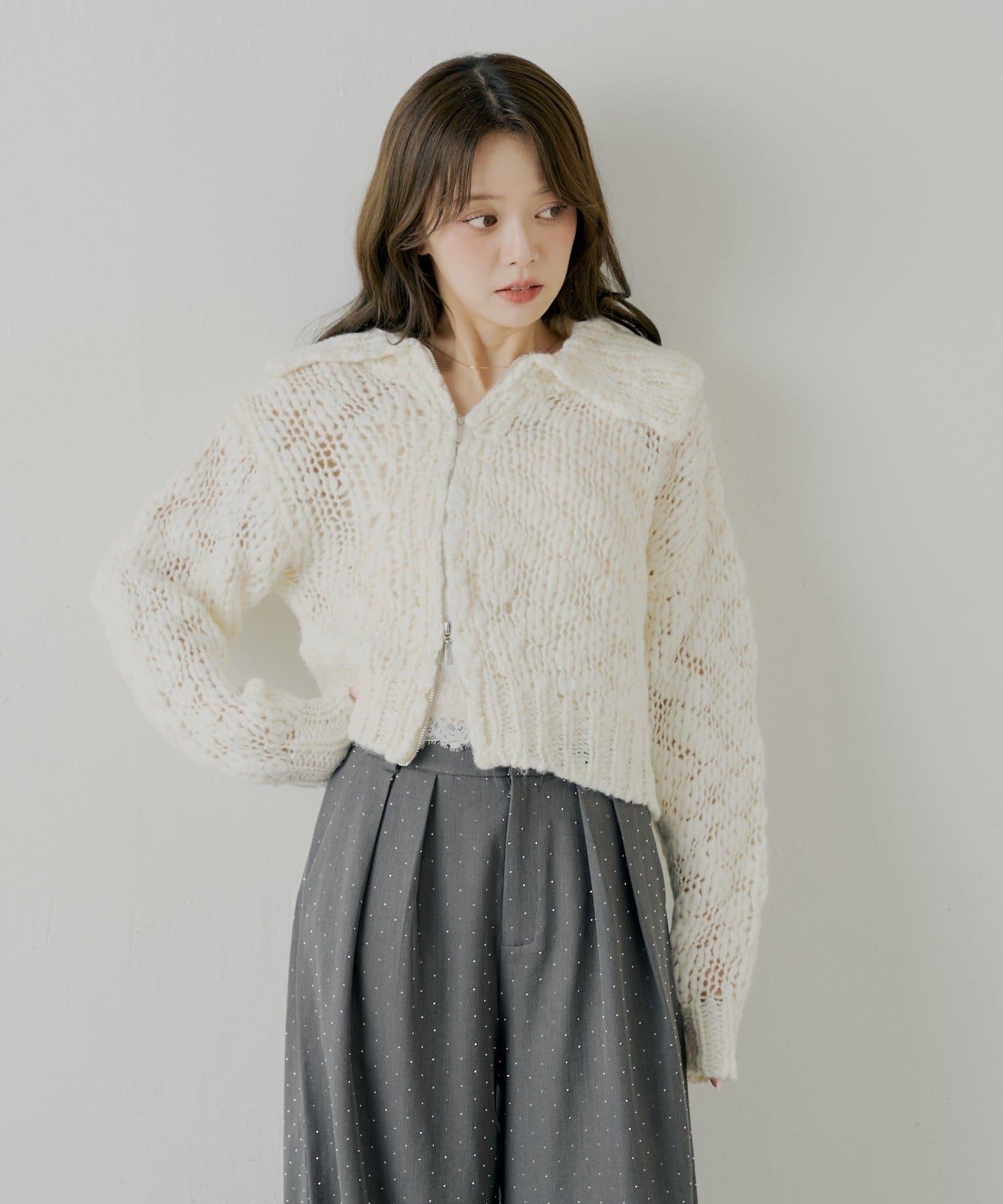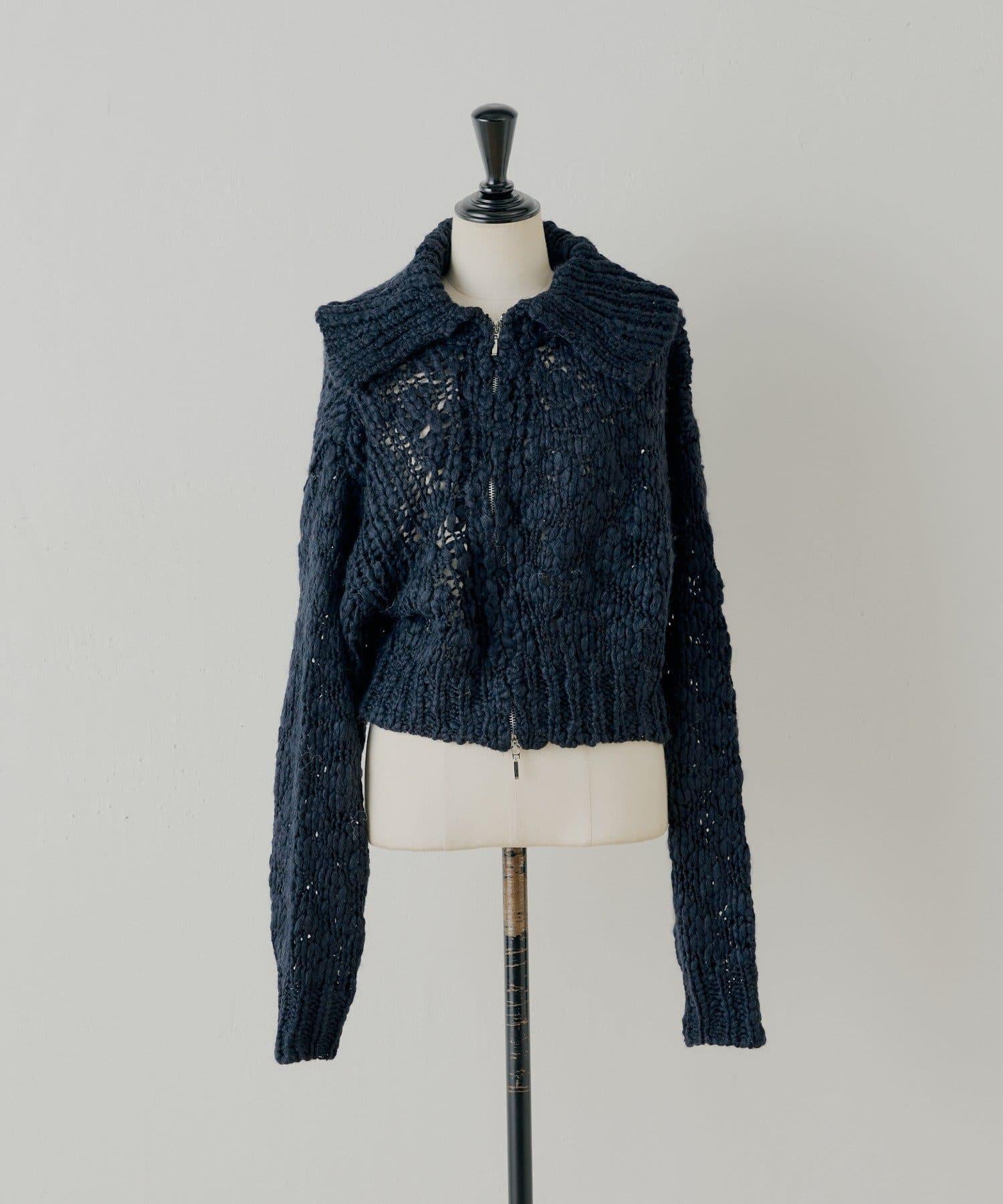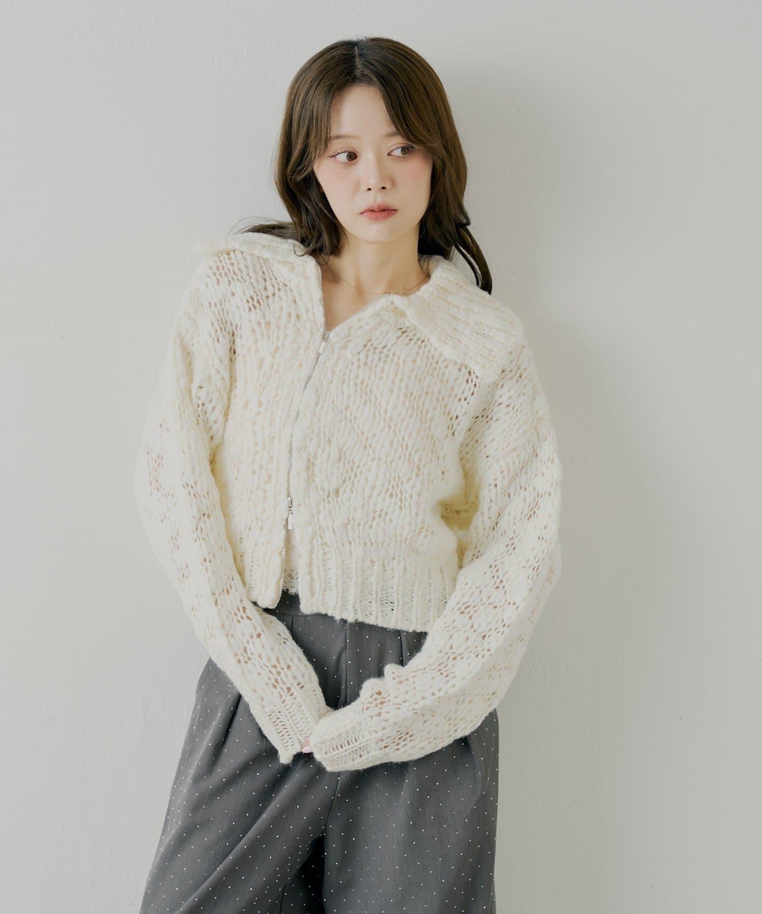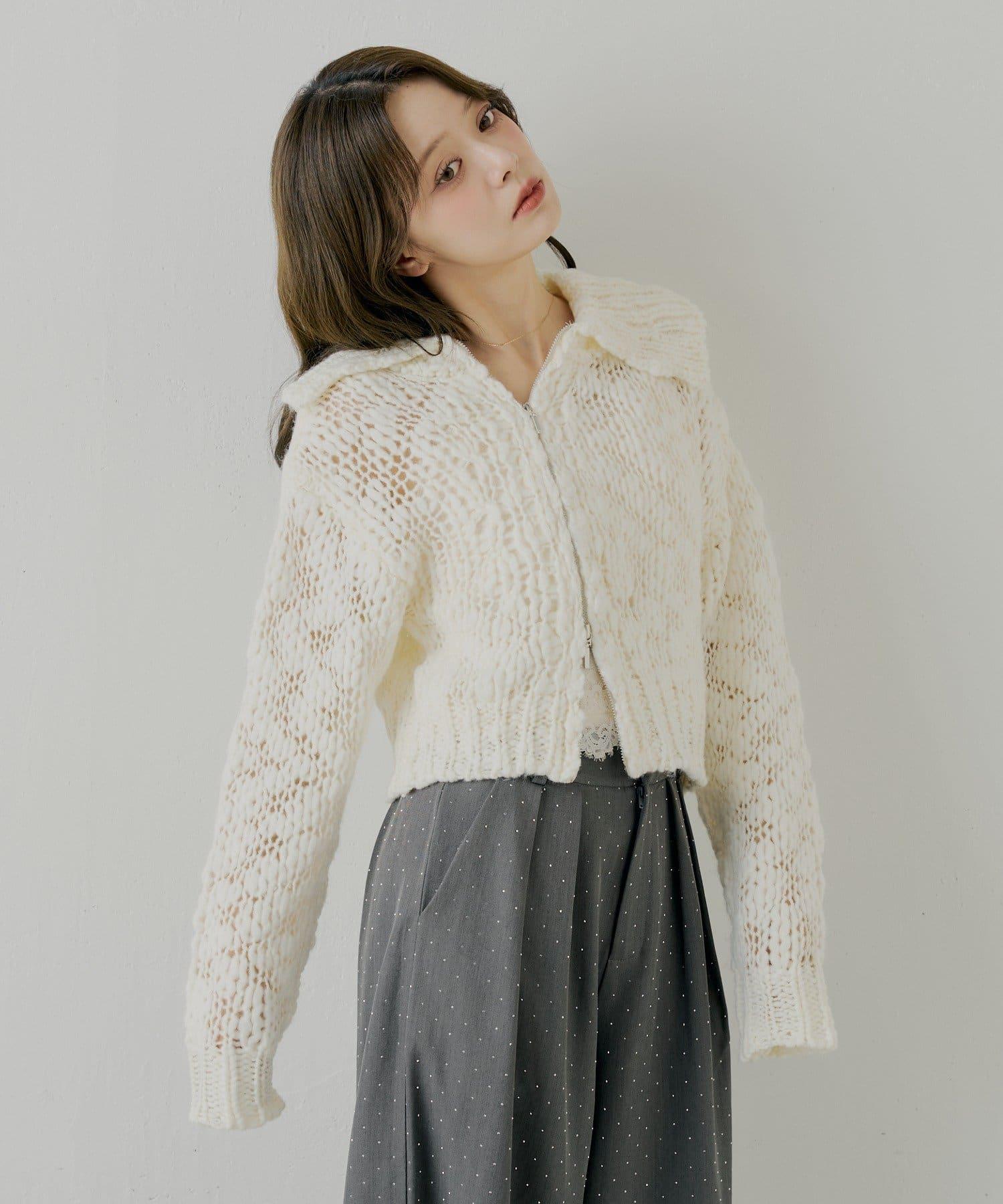【SALON by Chico】粗針織不對稱拉鍊寬鬆針織衫