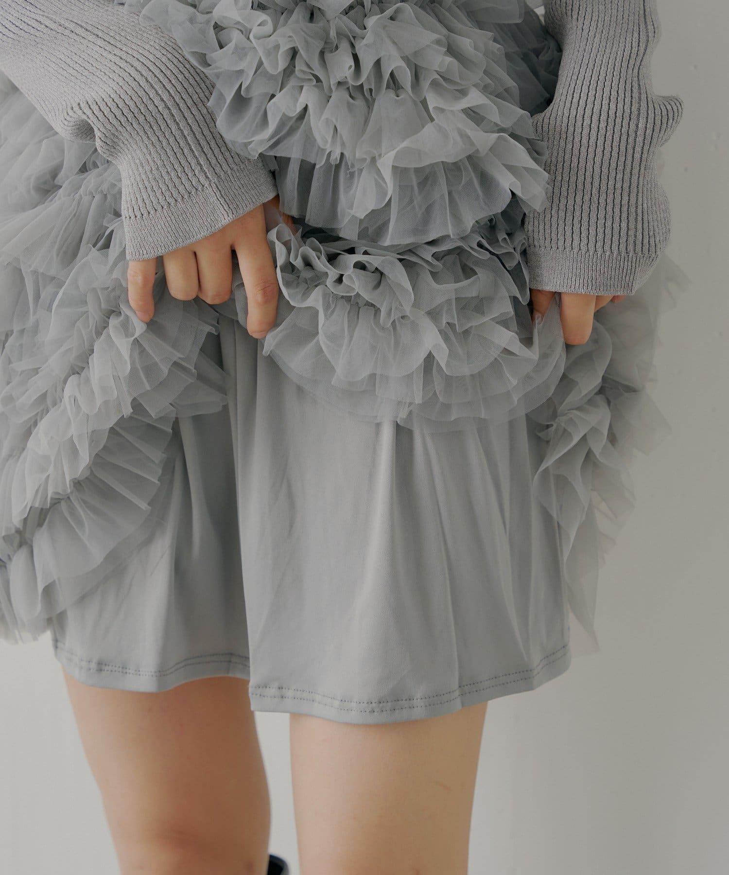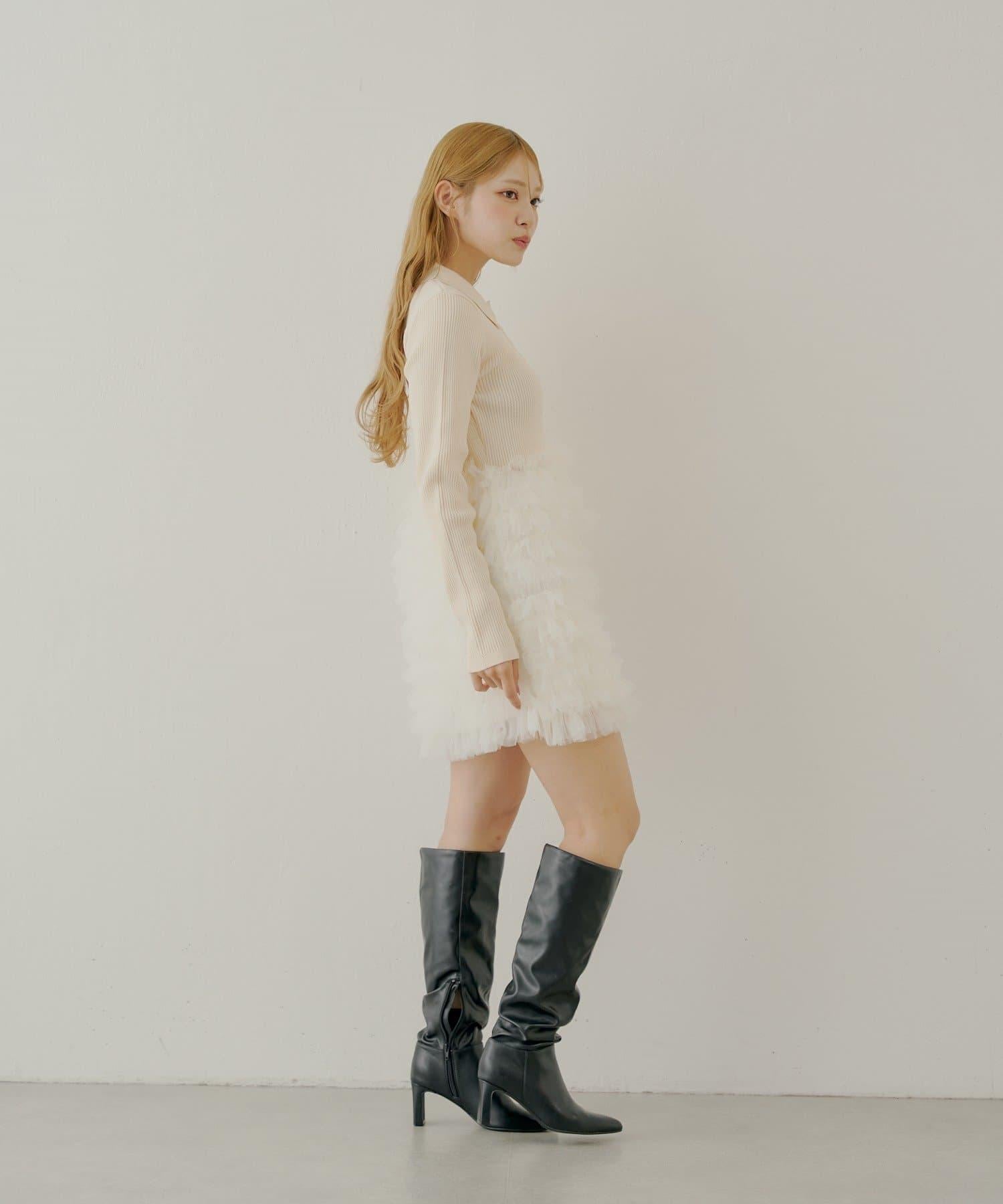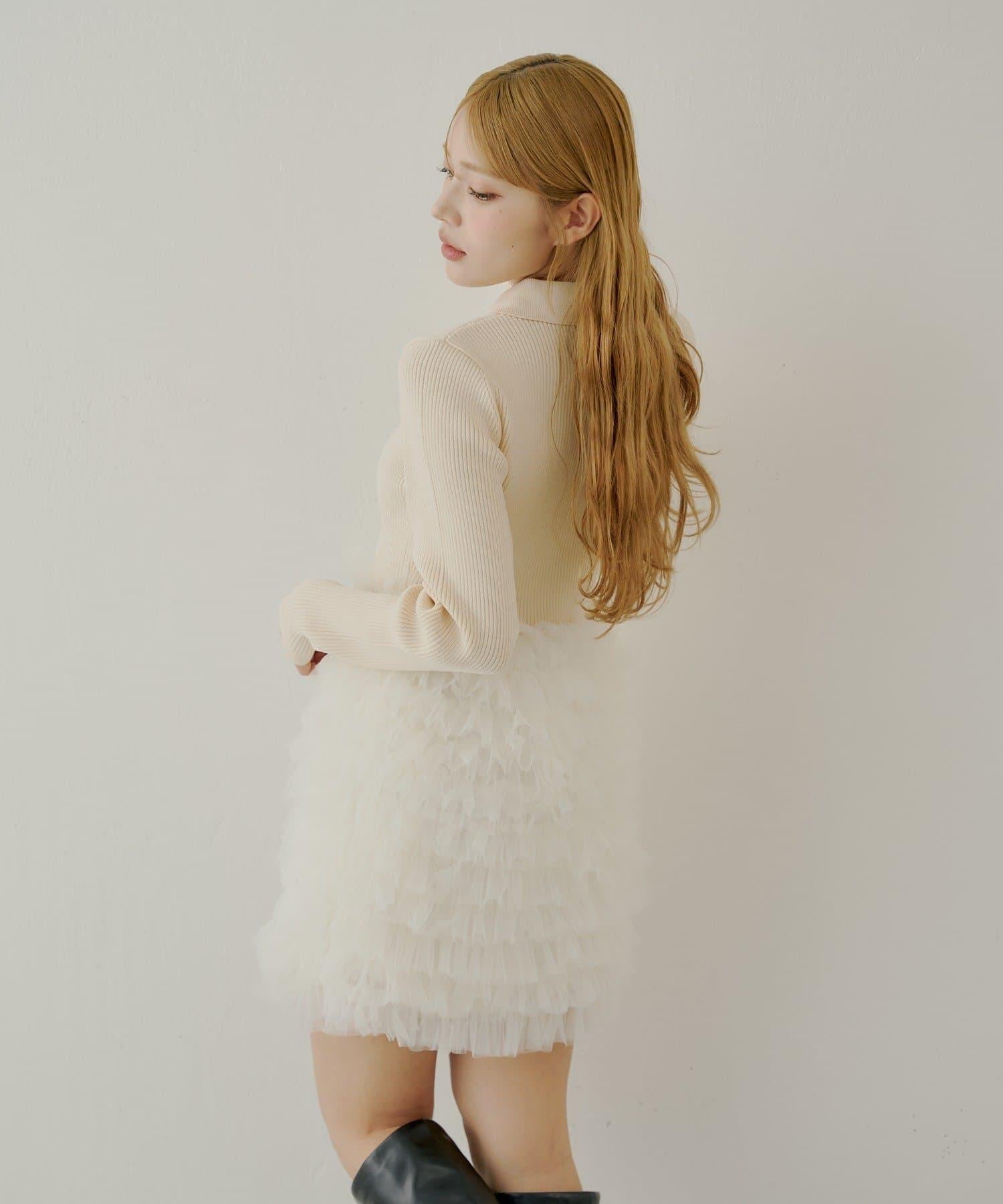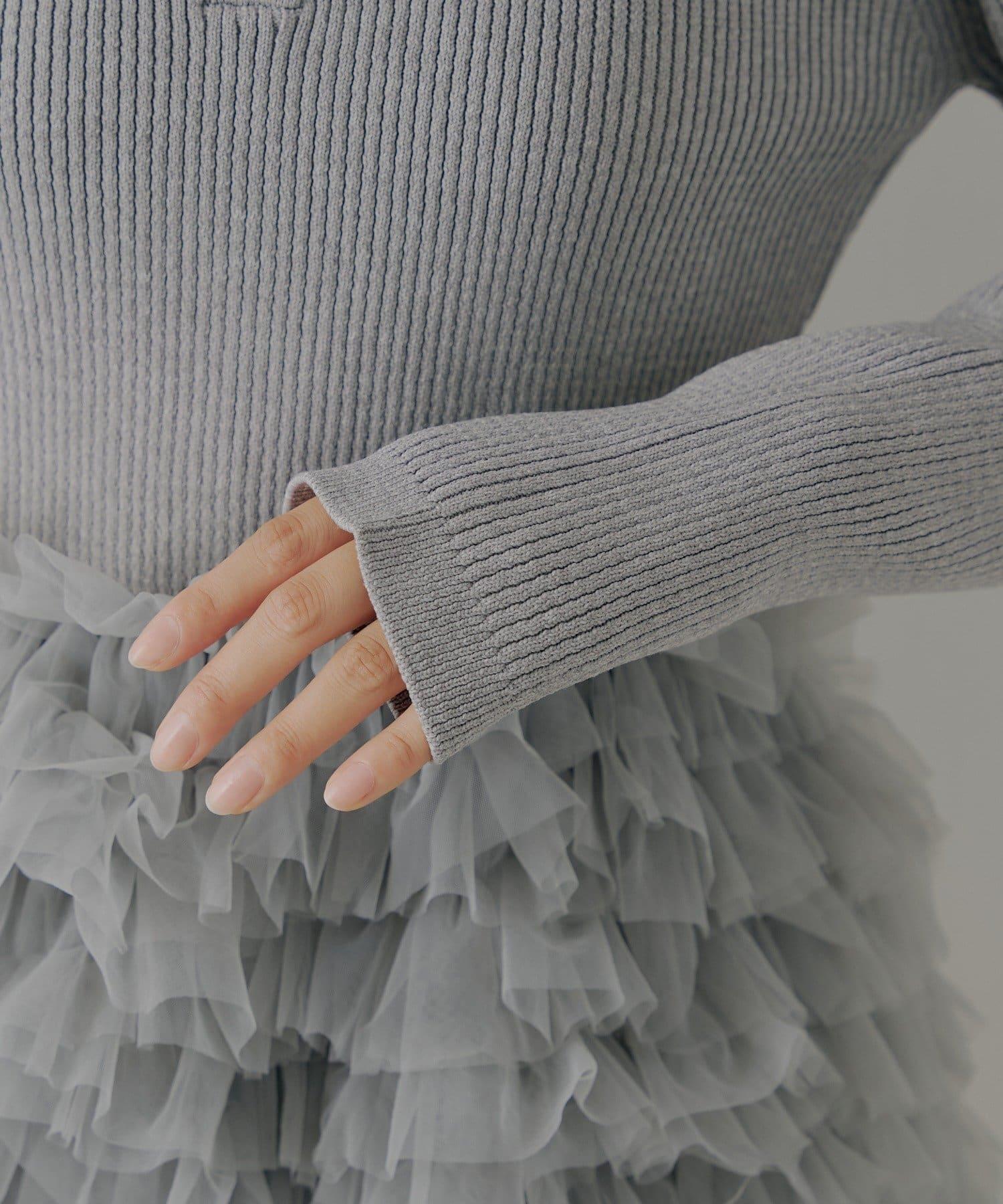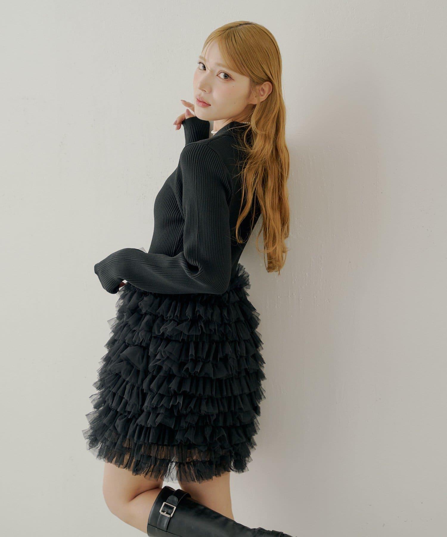 羅紋針織讓身體線條更優美,薄紗裙襬讓雙腿更纖細。