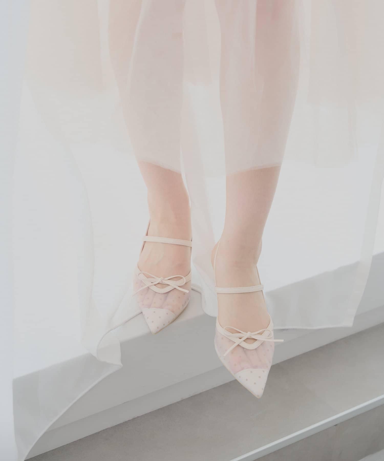 透視薄紗材質搭配點狀圖案,營造出優雅、無憂無慮的感覺。