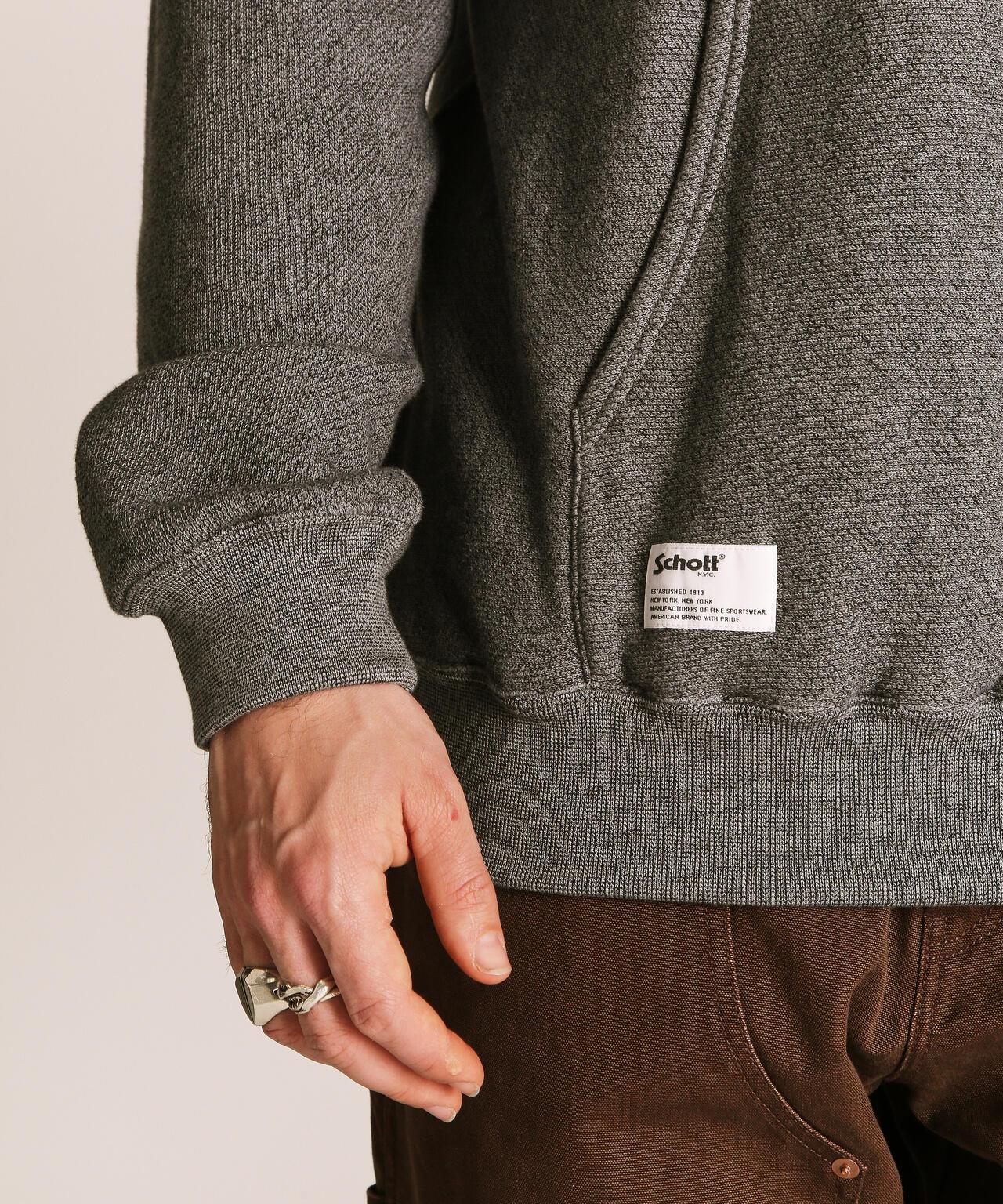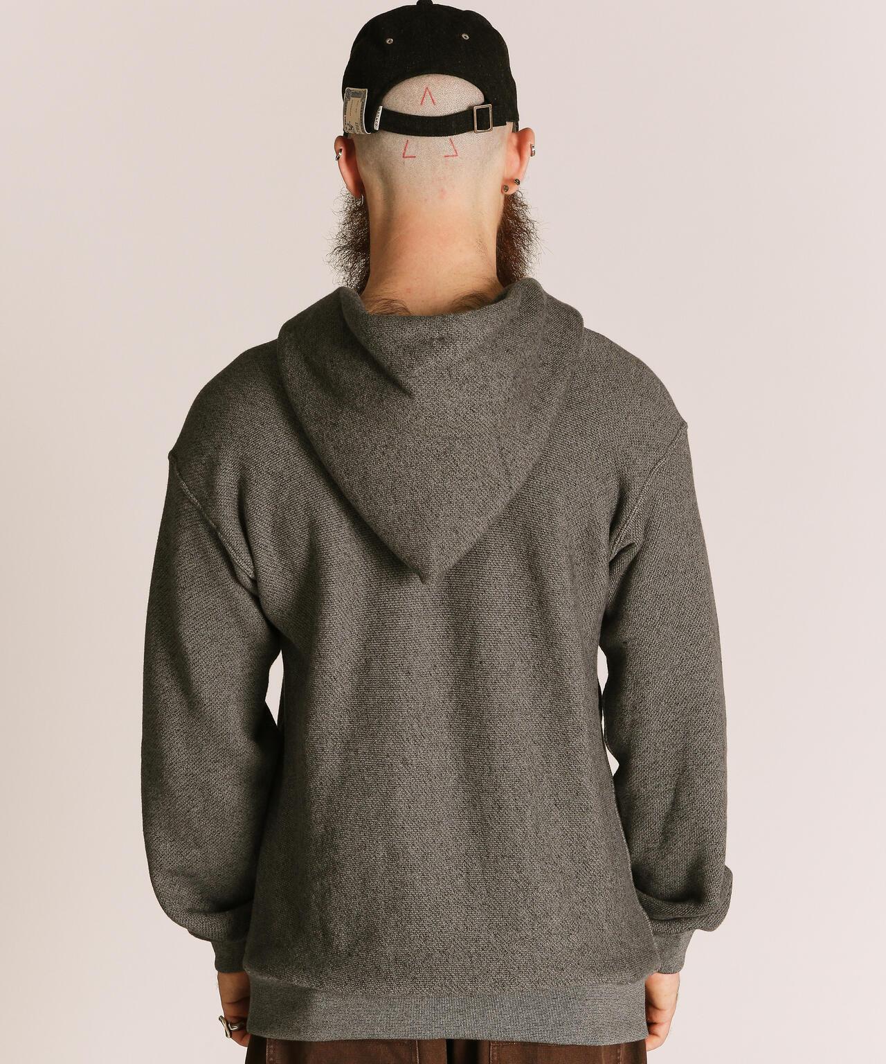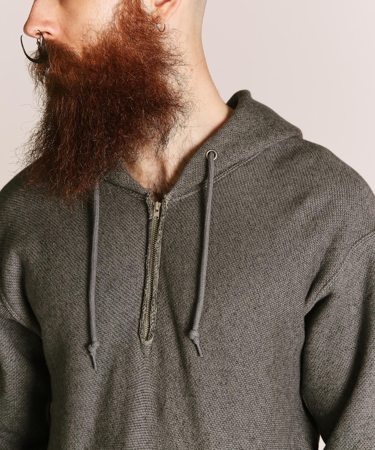 半拉鍊連帽衫,外觀復古。針織面料的表面採用捻線編織,呈現出芝麻鹽般的獨特外觀和深邃的品味。內襯採用一種被稱為 "魔鬼背毛 "的超粗紗線,👍限度地保留了原棉質感。這種甜美、粗糙、慢速編織的襯裡柔軟舒適。復古規格忠實再現,取消了肩部接縫,打造出圓潤的輪廓。衣長較短,袖子設計適中,不會過於厚重。寬敞感極佳,便於作為內搭,可搭配各種服飾。注重細節的縫紉規格和麵料手感,使其簡約而不失力量。