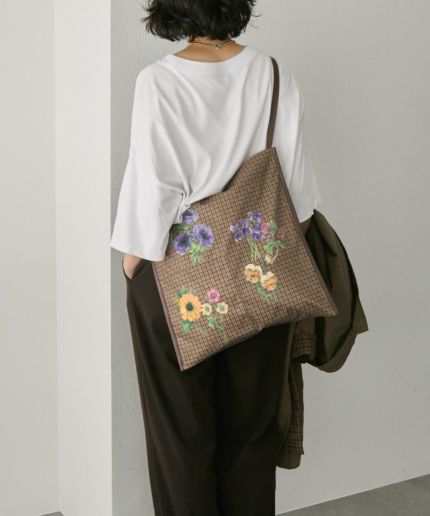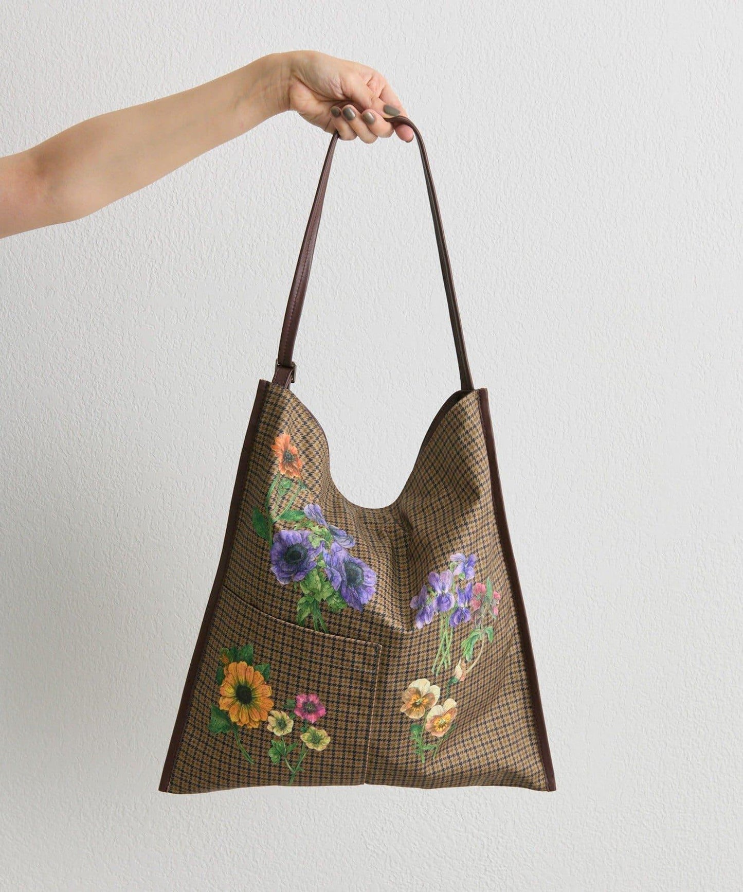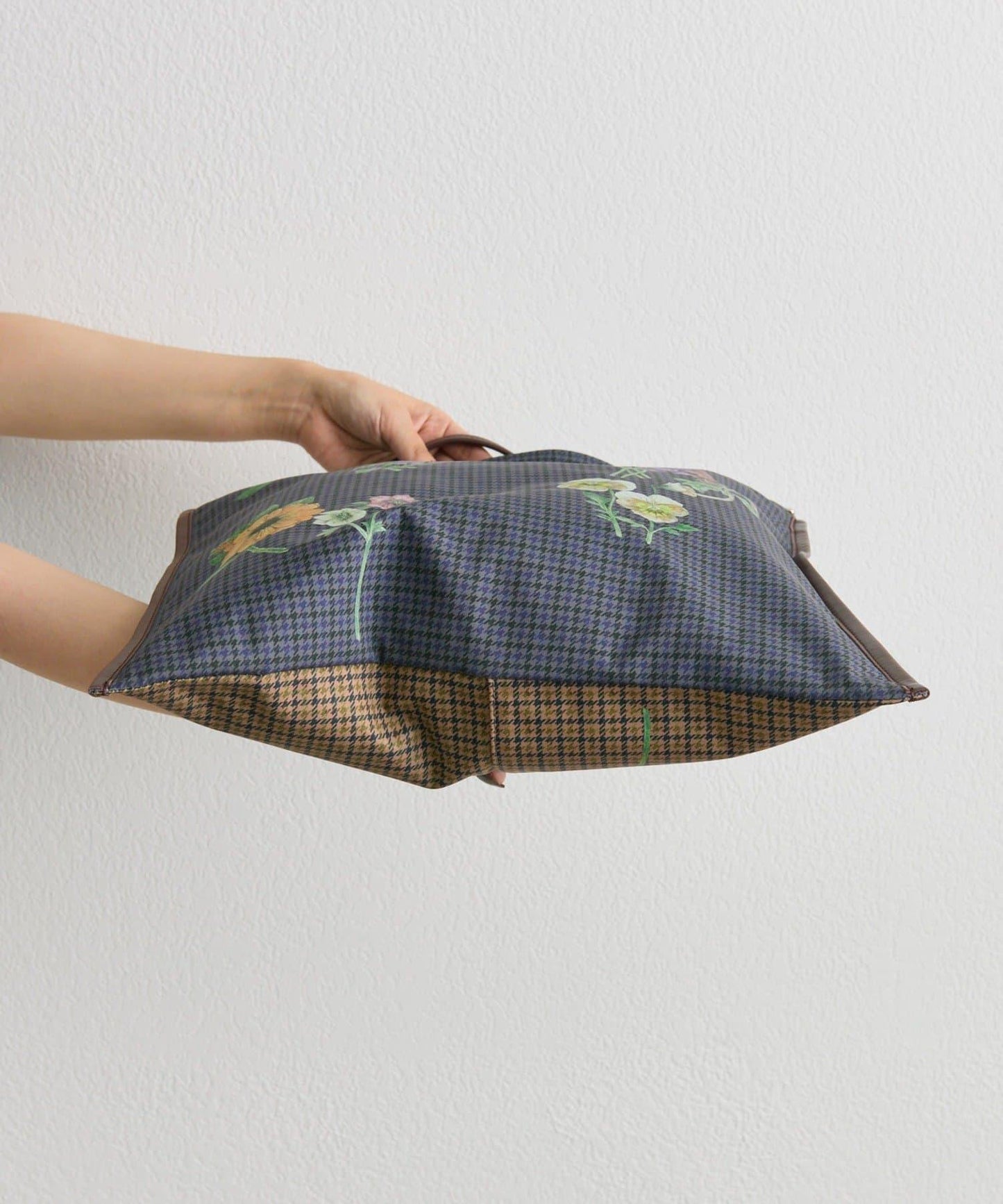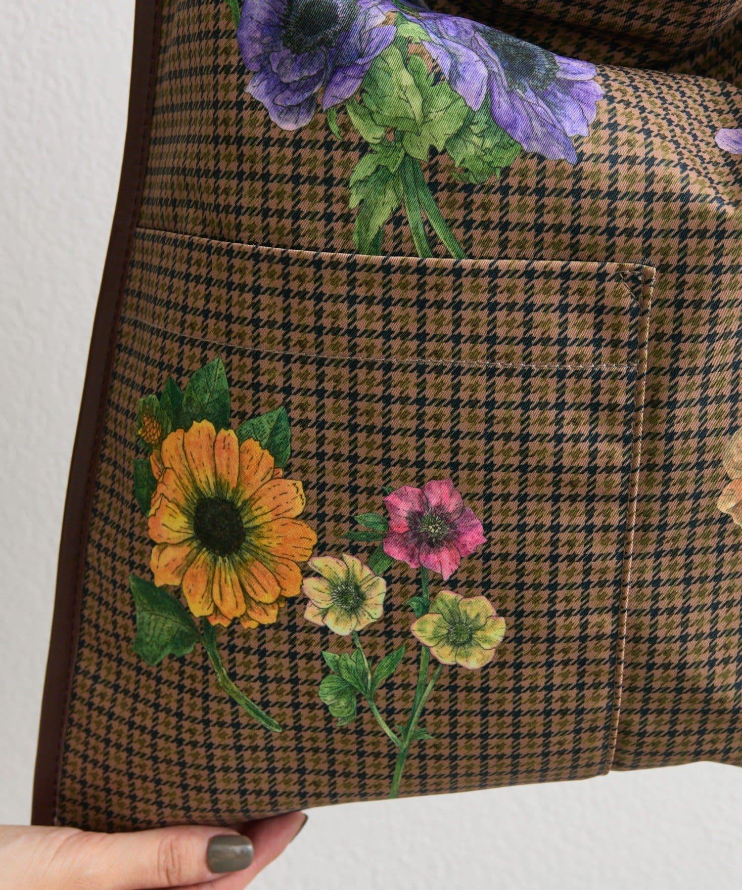 錯落有致的格子圖案充滿古典氣息,混合圖案上盛開著五顏六色的花朵、