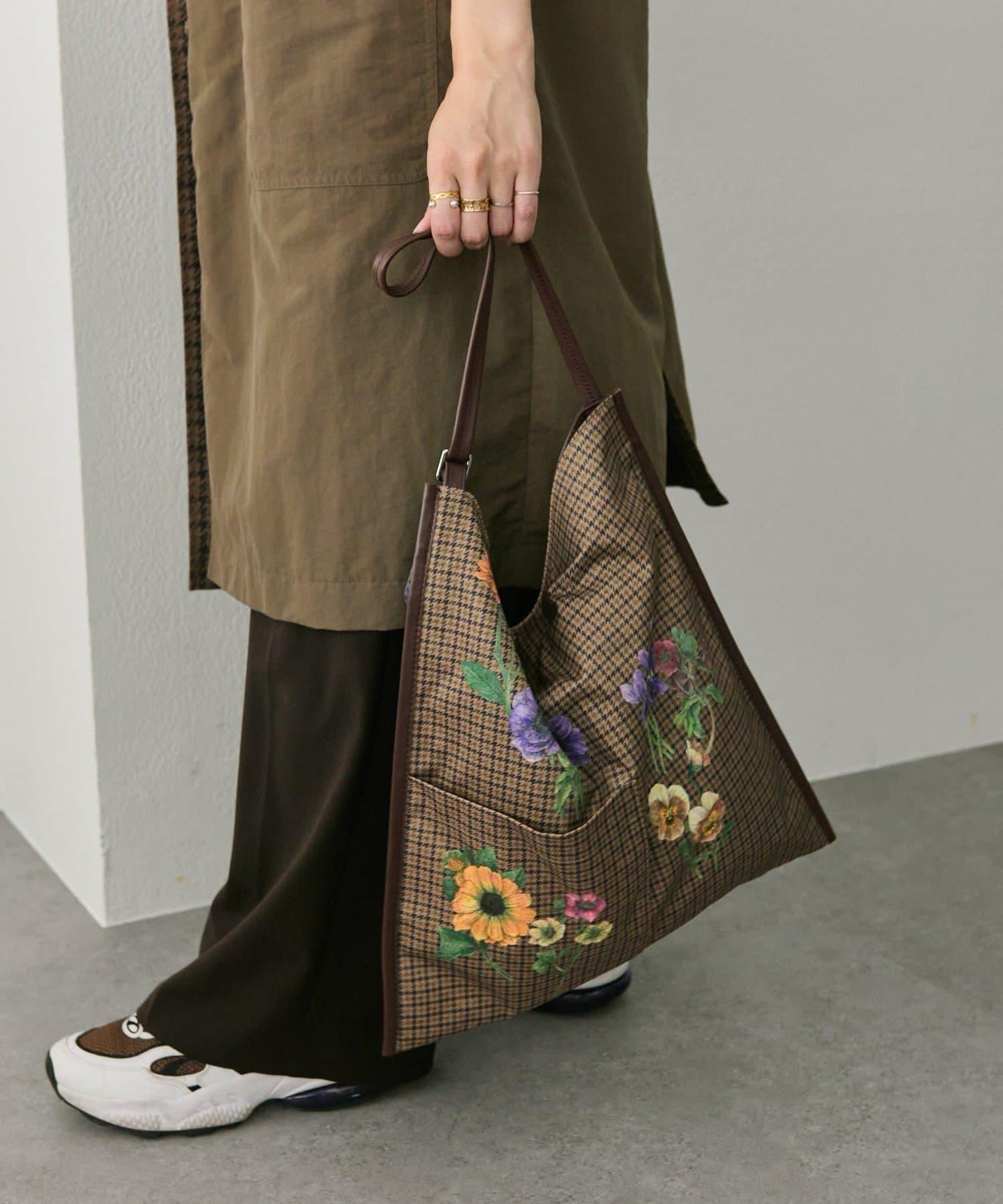 該設計混合了交錯格紋和花卉圖案,為 ear 👍設計。