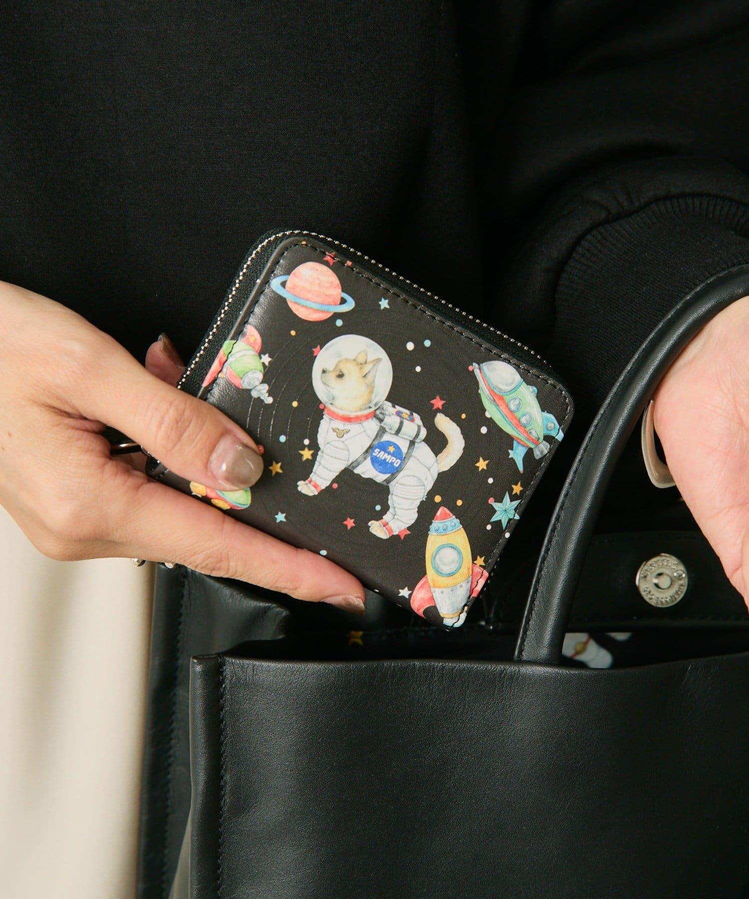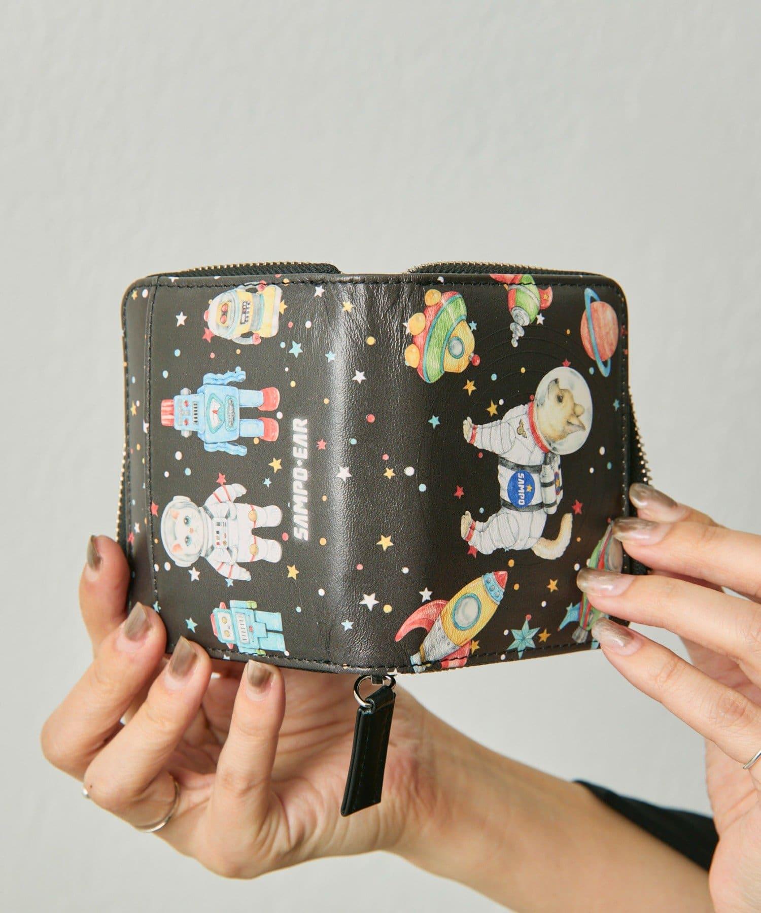 sampo×perche×ear《可不折疊紙幣收納!/易於使用/真皮/聯名》太空玩具風琴摺疊錢包
