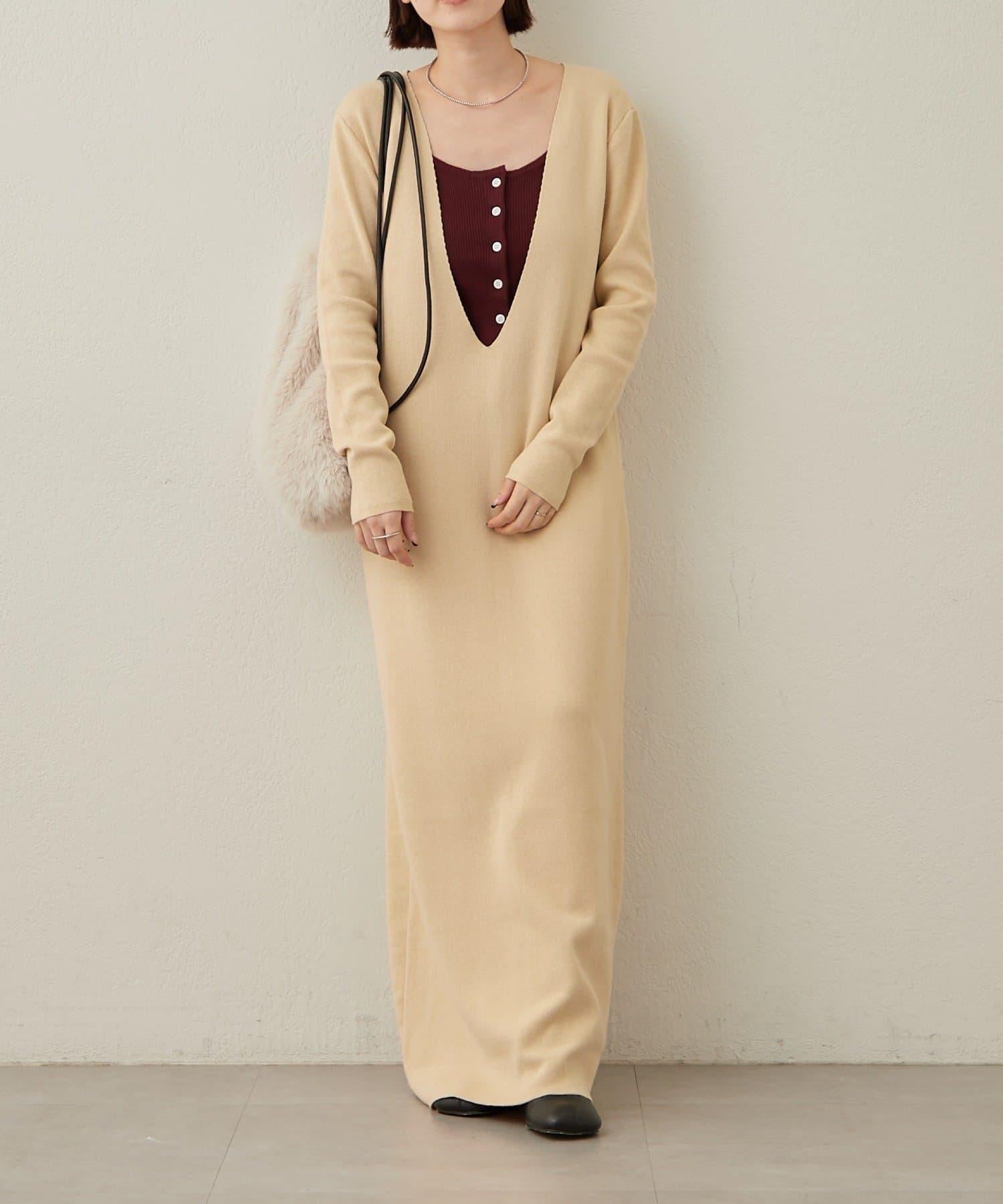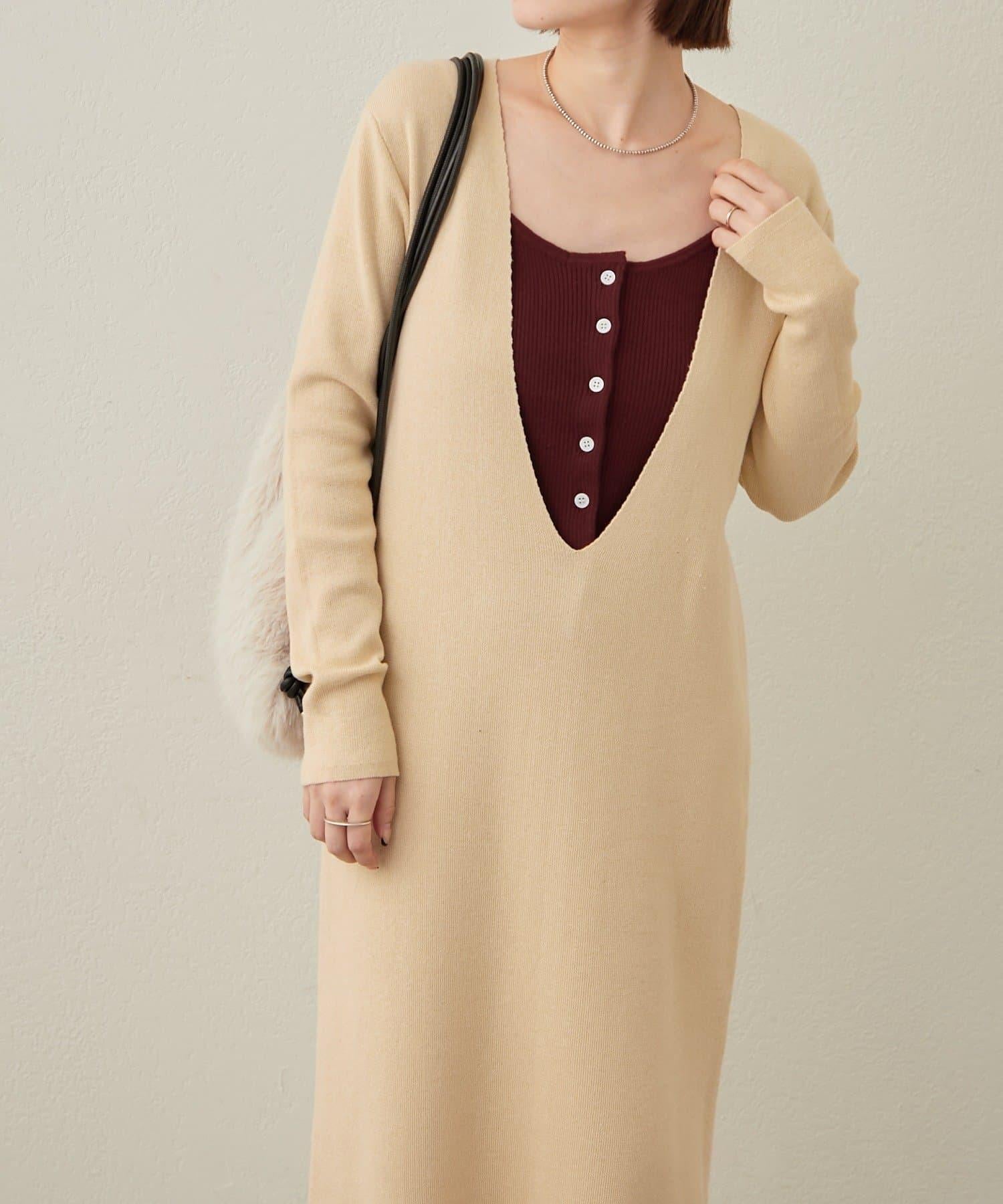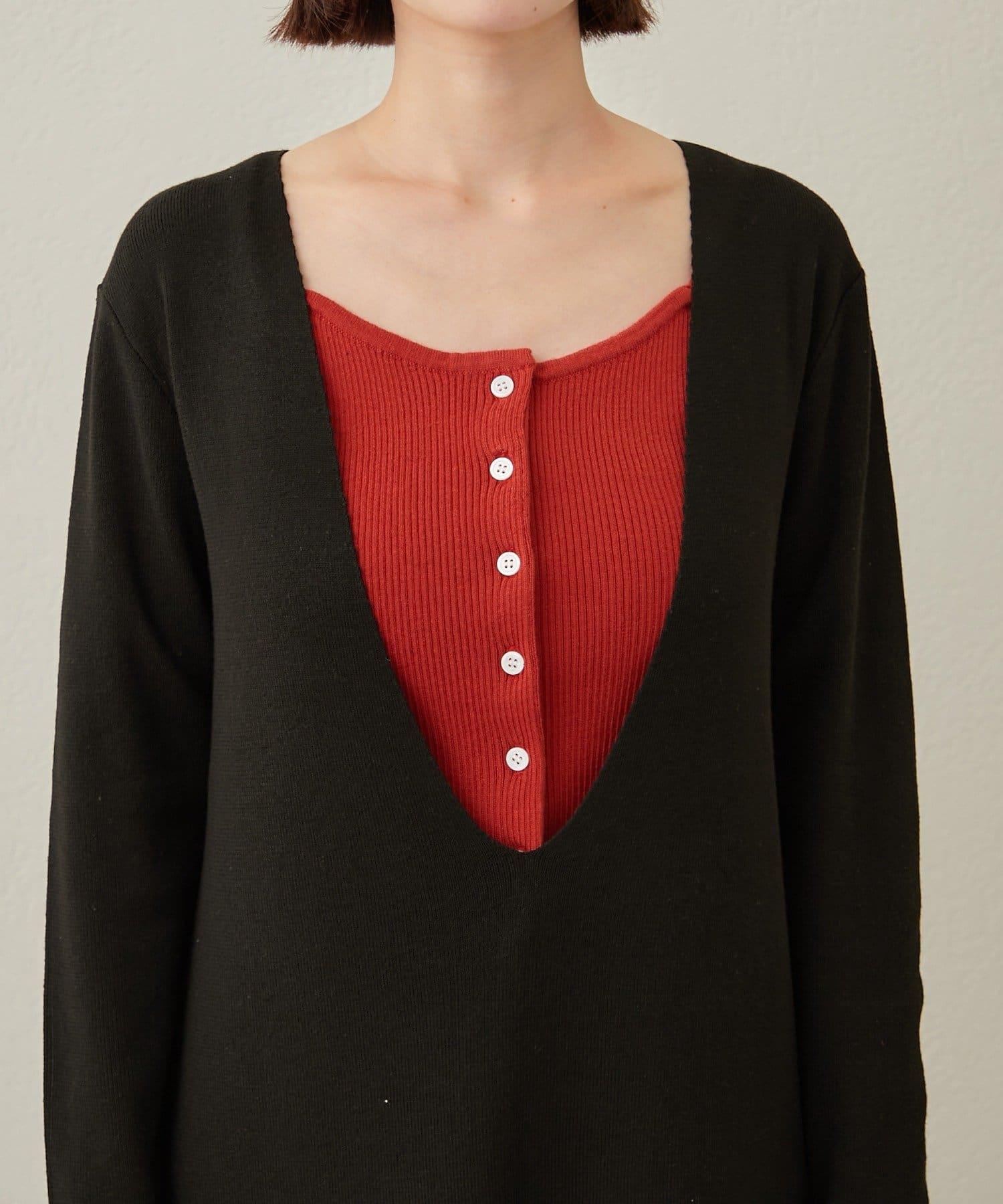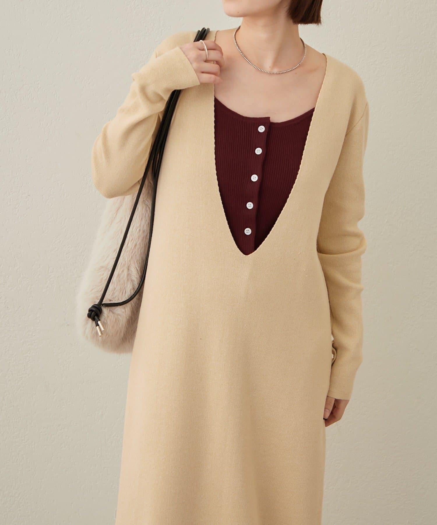 它還有一個深 V 領,讓您可以搭配不同的內搭享受層次感^^。