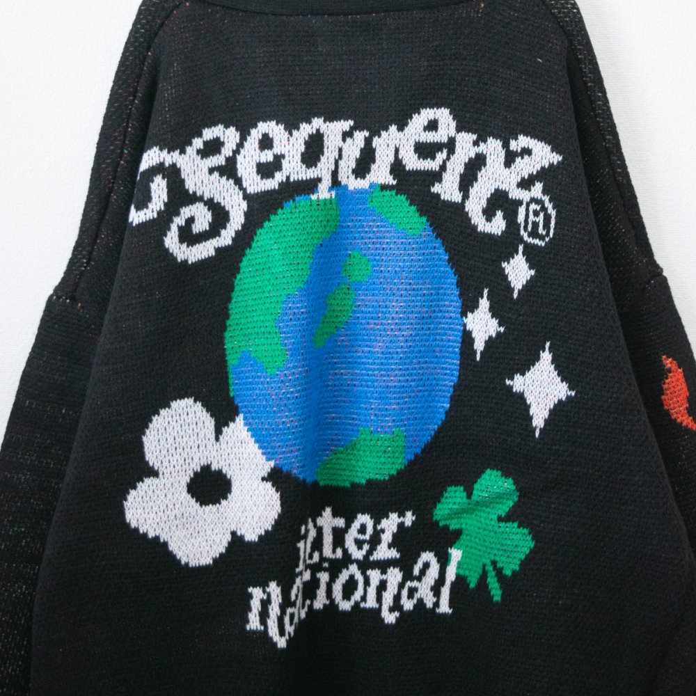 SEQUENZ 1pt刺繡 嬉皮花紋提花針織開衫 黑色[特價] (CT6843BK)