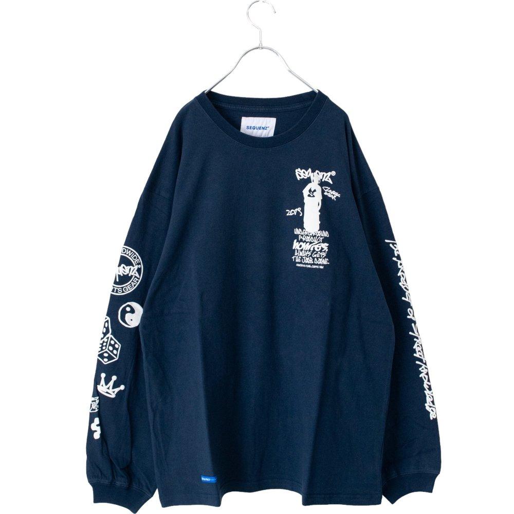 SEQUENZ O.G拼貼蓬鬆印花長袖T恤 海軍藍色 (CT7120NV)