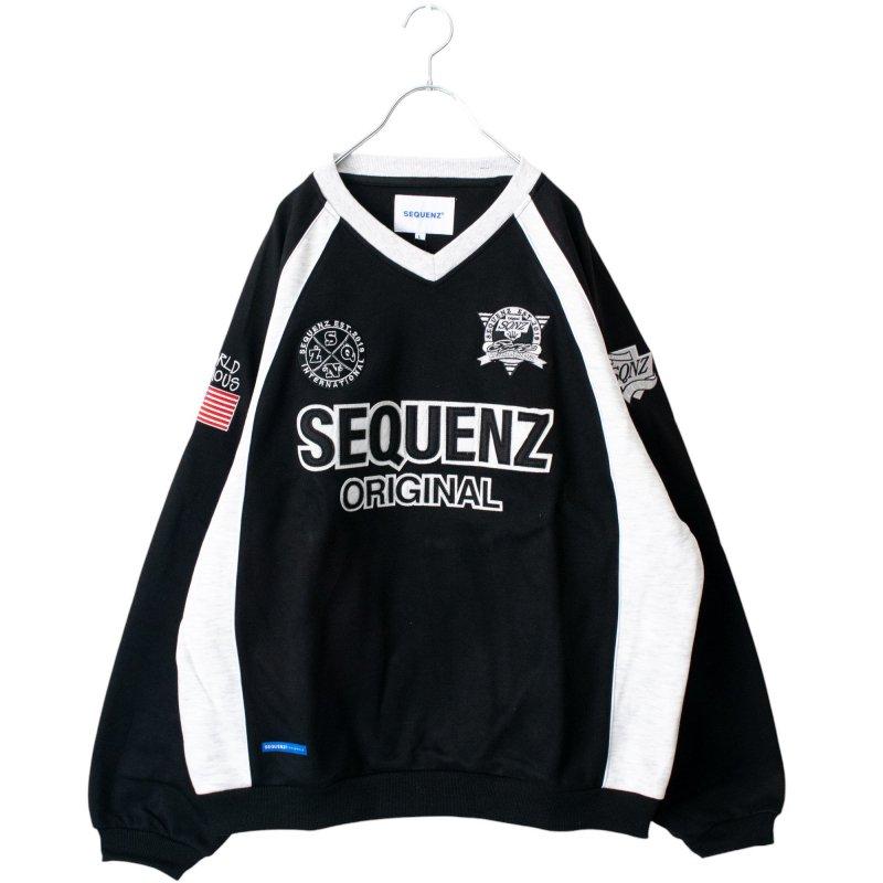 SEQUENZ/PIPING SPORT V/N 運動V領衛衣 重磅針織 反毛邊 裝飾線條 運動 V領 衛衣 黑色[新春促銷] (CT7201BK)