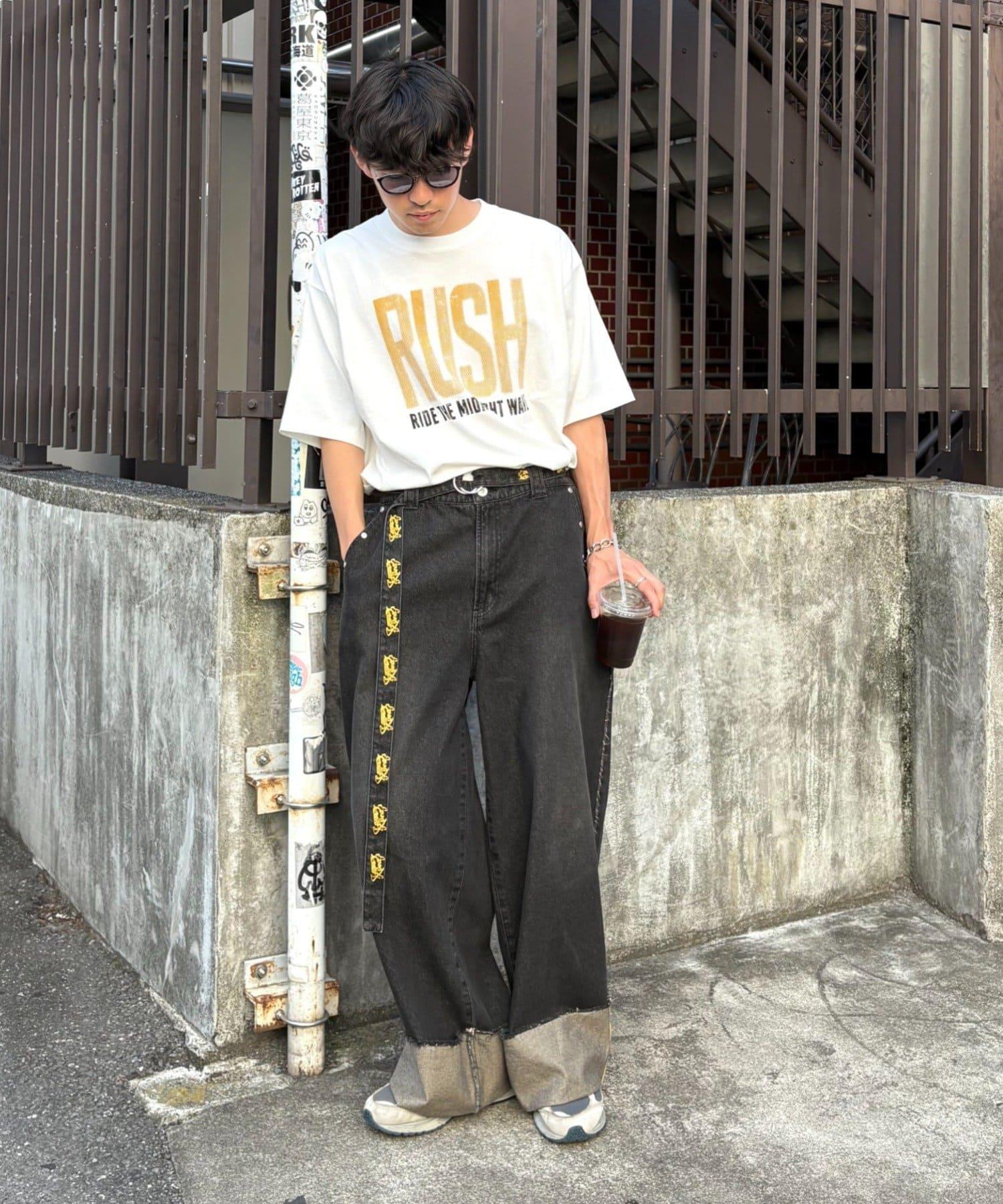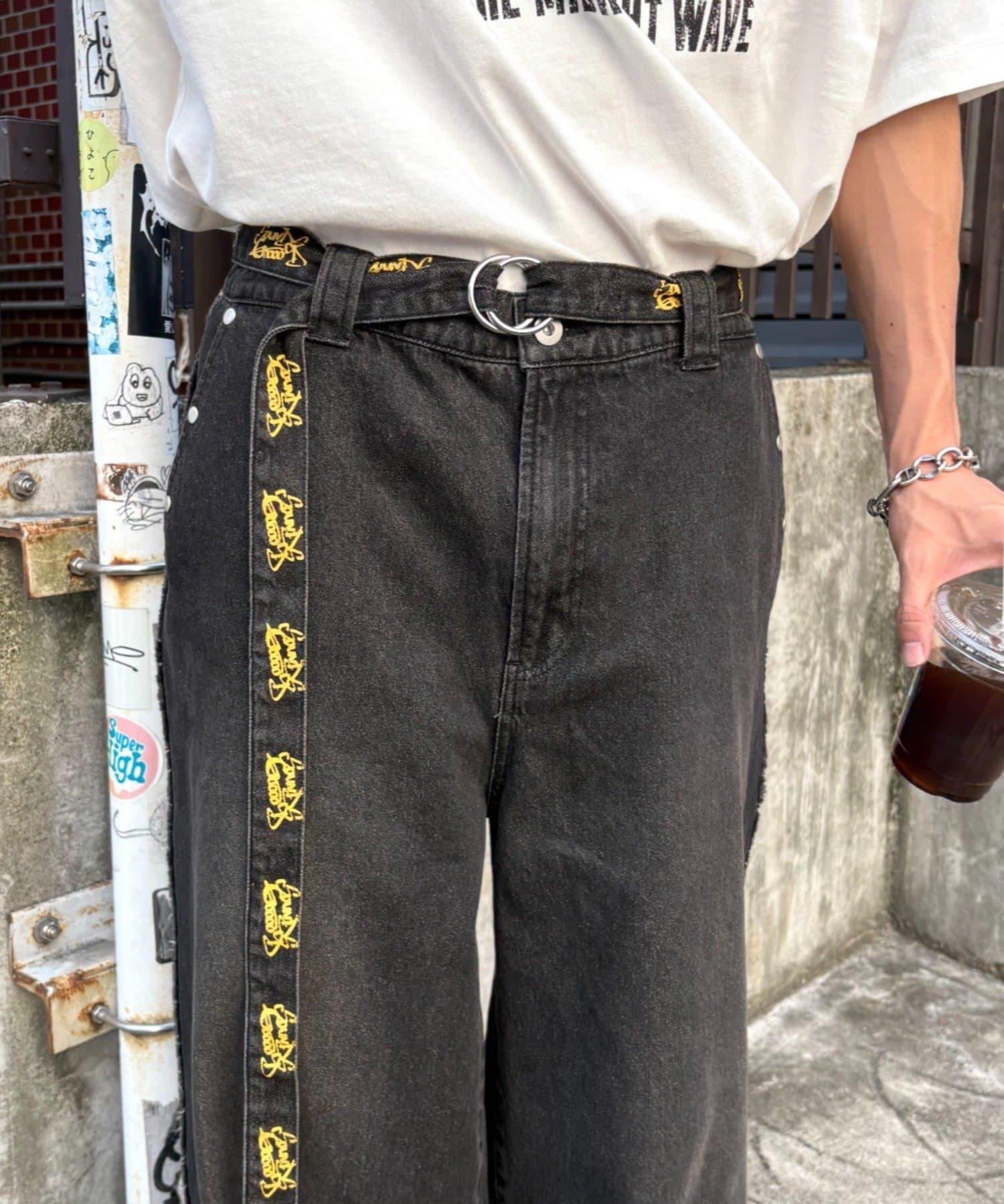帶腰環的雙環腰帶和附帶的雙環腰帶上還印有 SOUNDS GOOD 標誌。