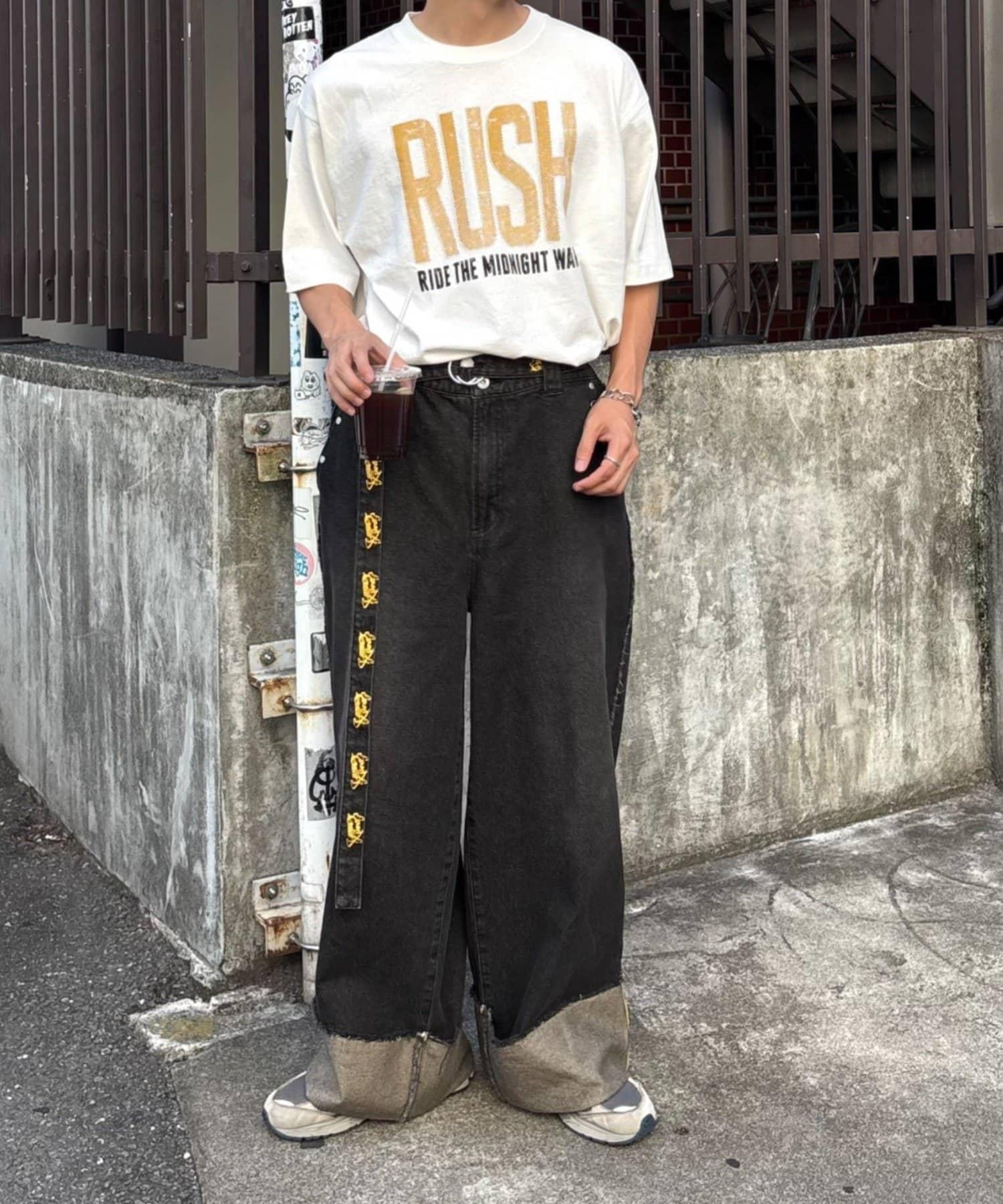 下襬、側邊和後口袋上的粗獷流蘇,只需穿上它們就能增添個性。
