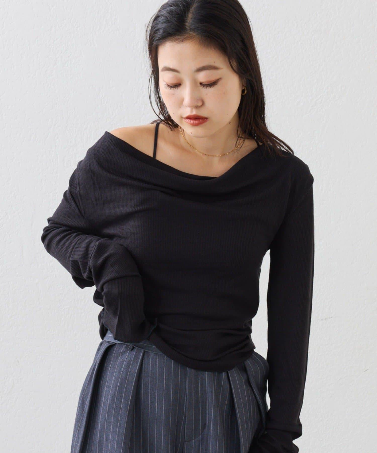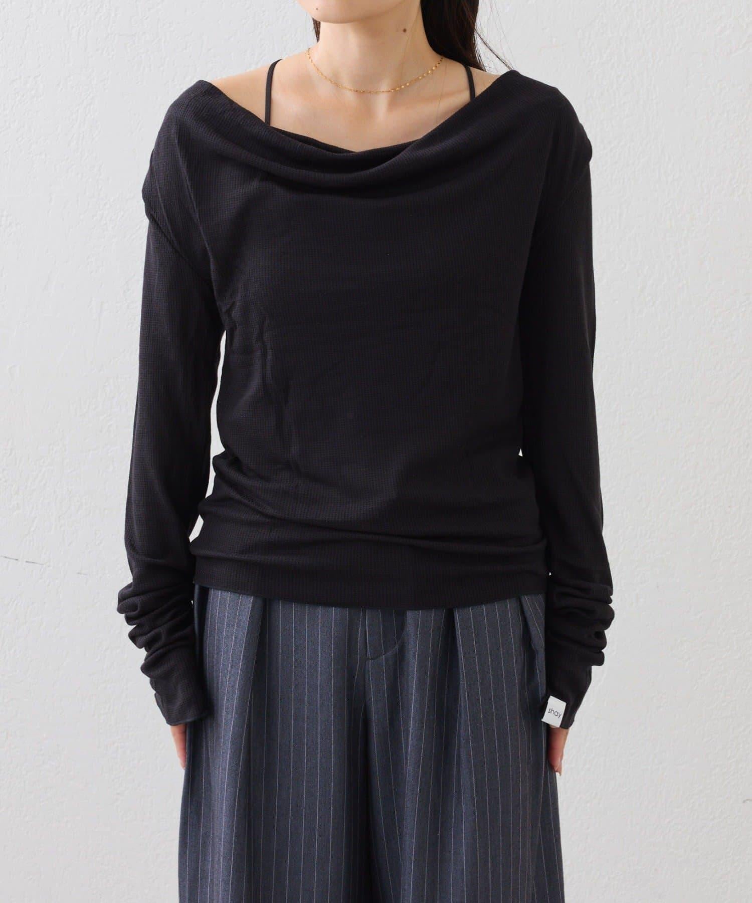 預約商品【shay】帶吊帶的透視垂墜感上衣(套裝)