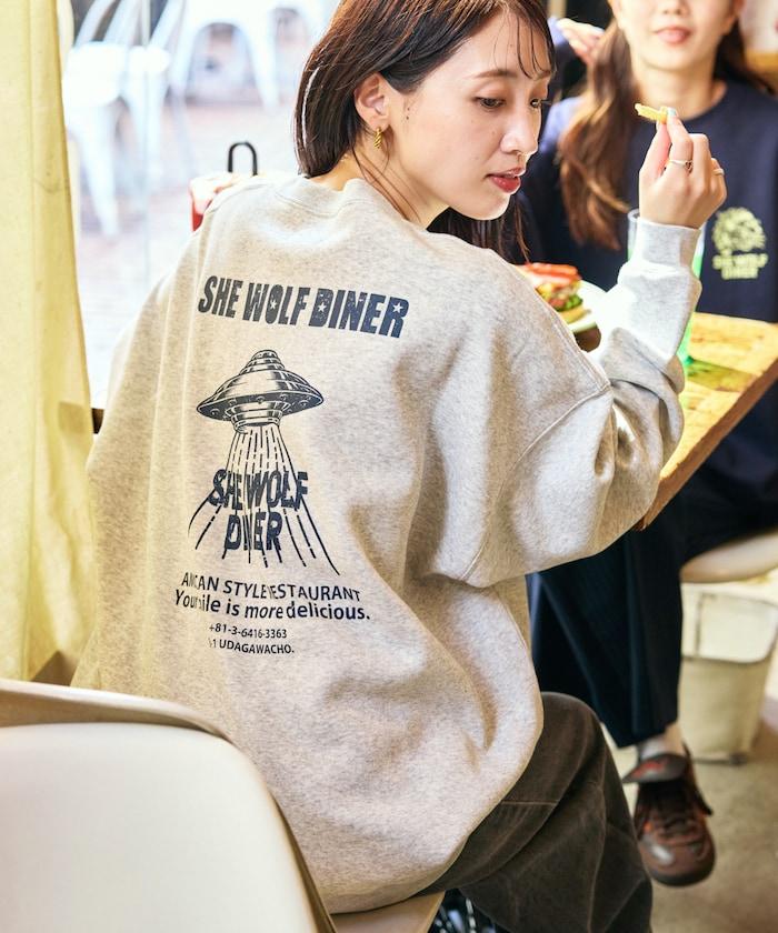 SHE WOLF DINER×FREAK'S STORE/海狼餐廳 聯名 大尺寸 後背印花 圓領衛衣 UFO