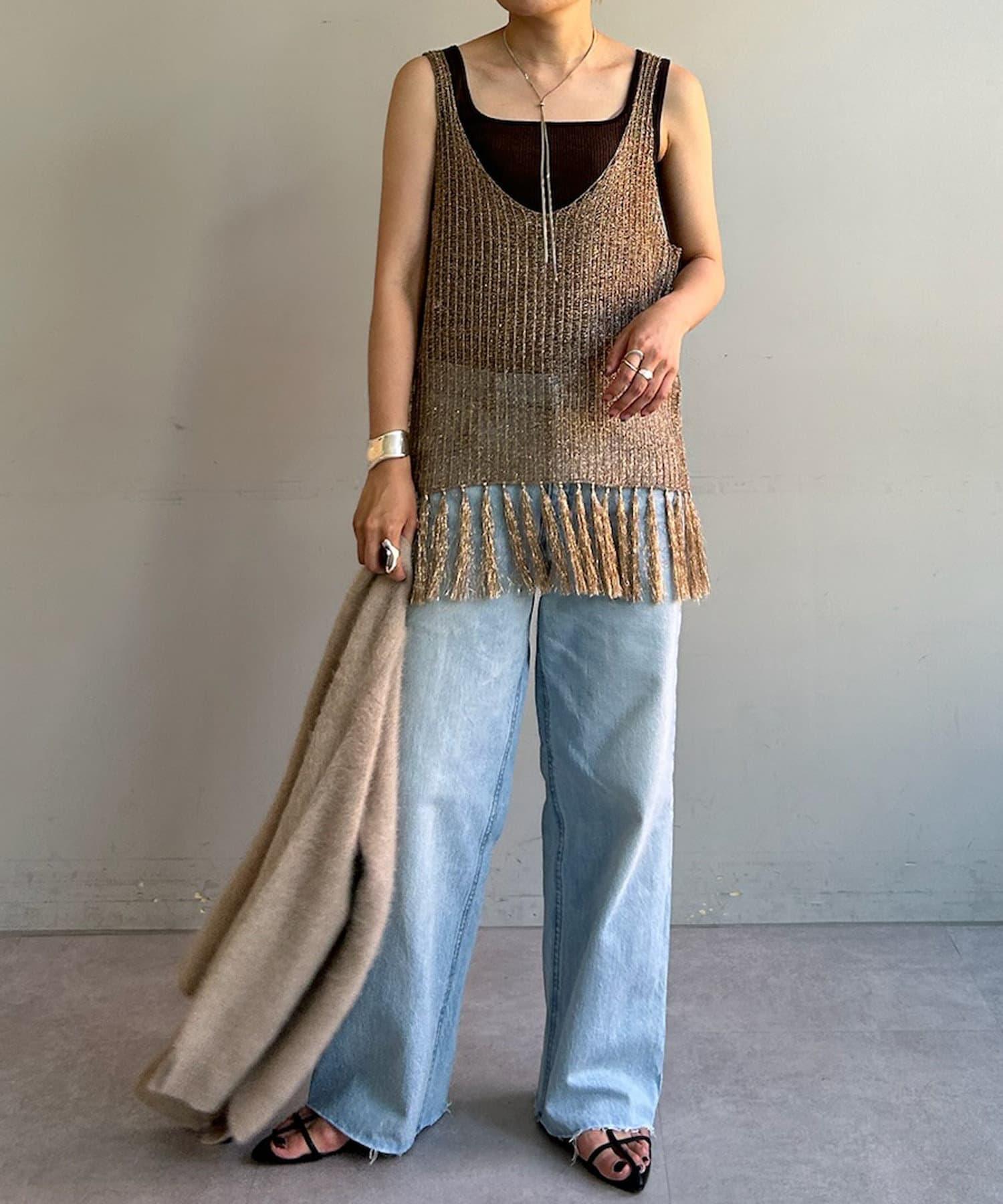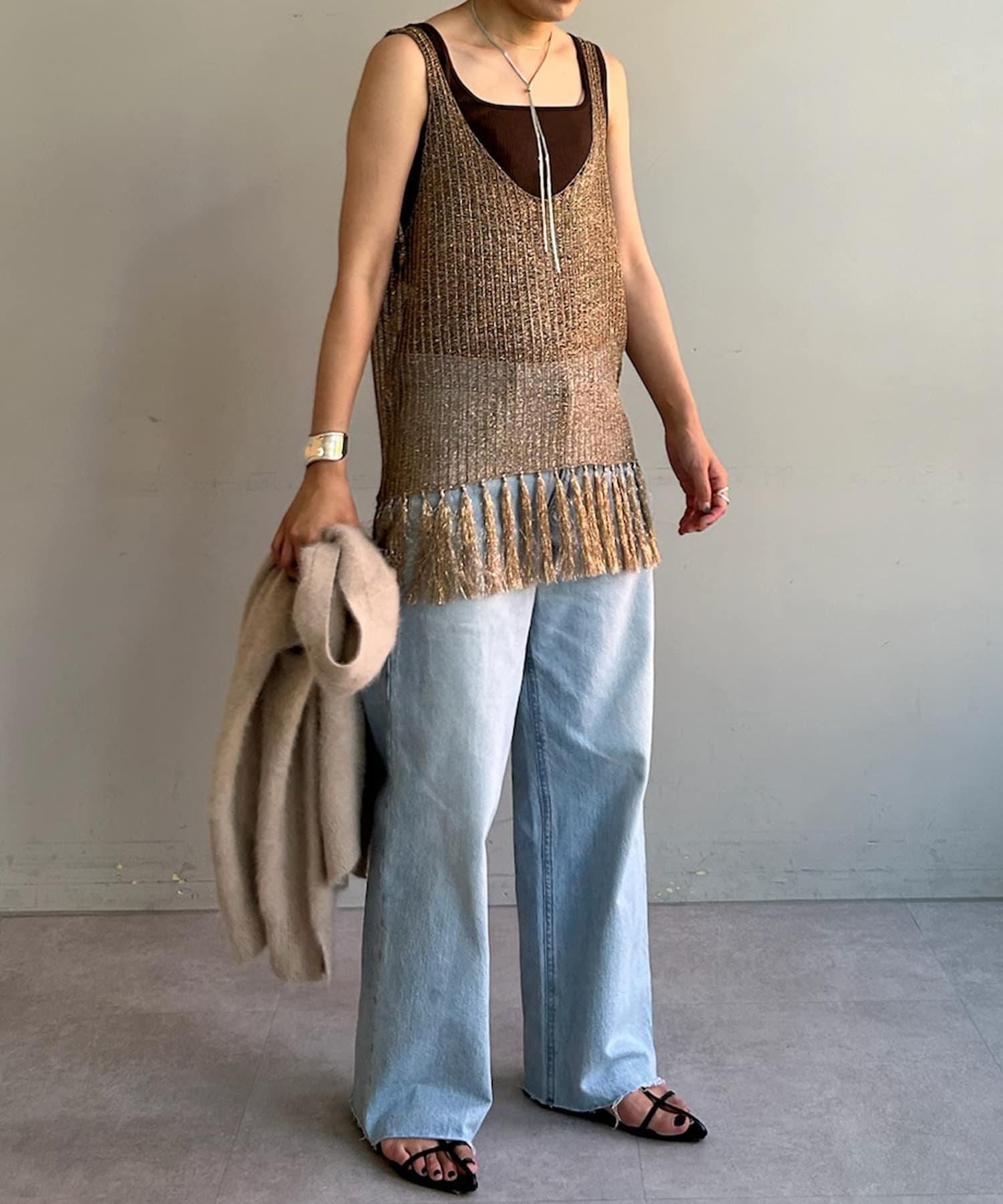 這款上衣的下襬有流蘇,在炎炎夏日可搭配無袖衫和 T 恤等夏季單品。