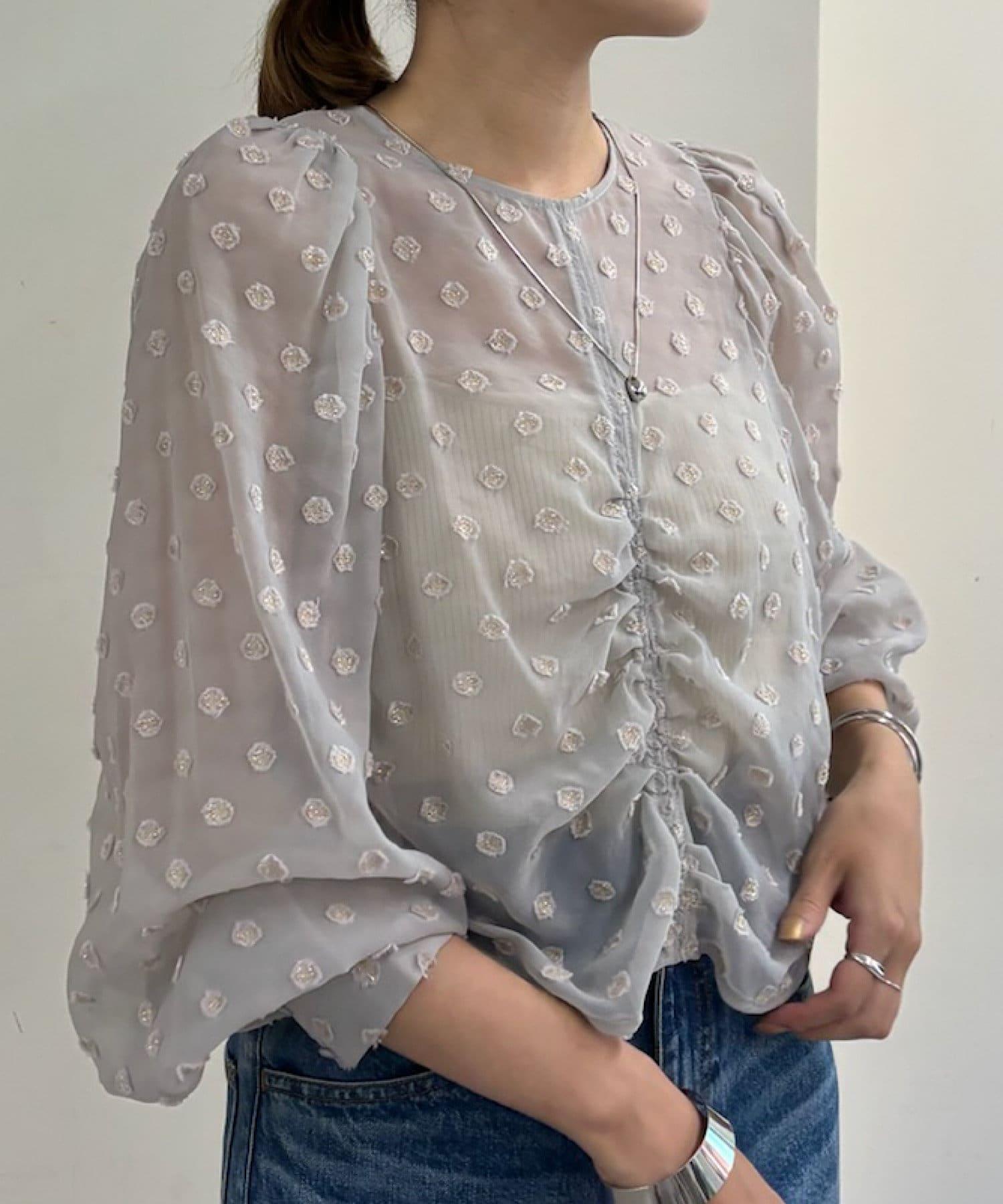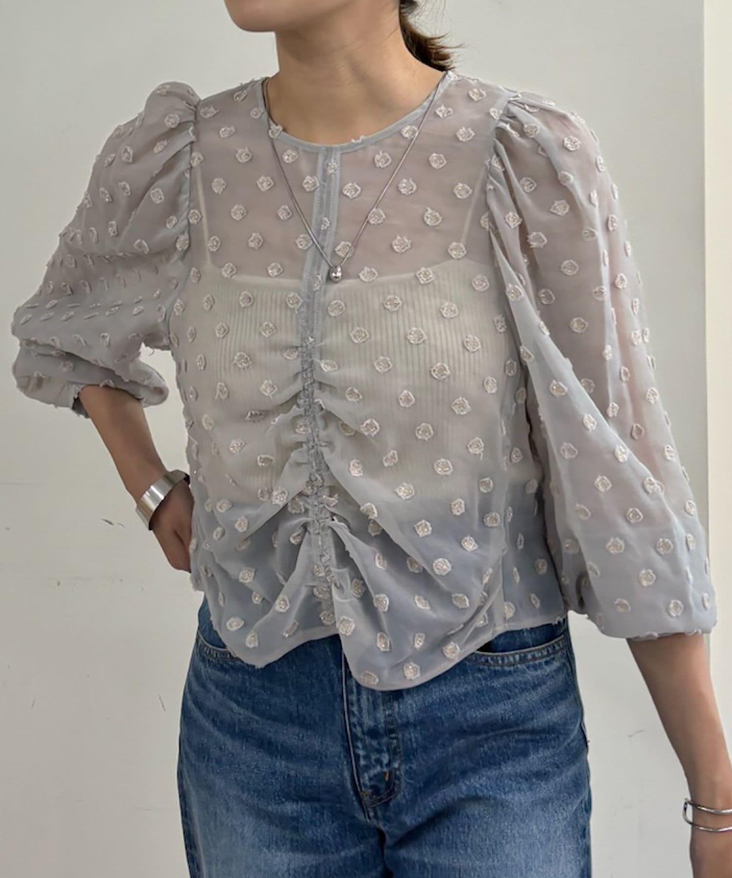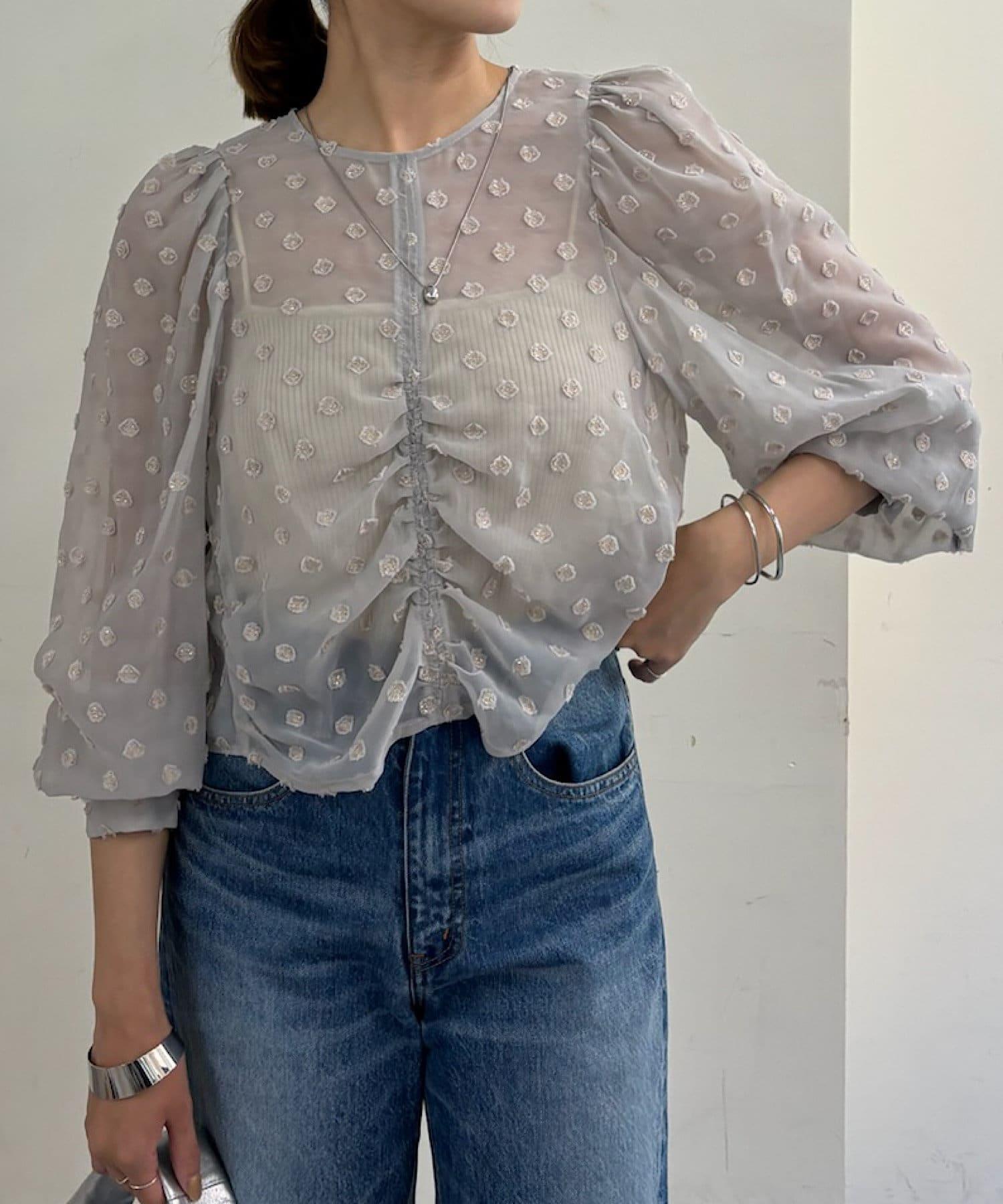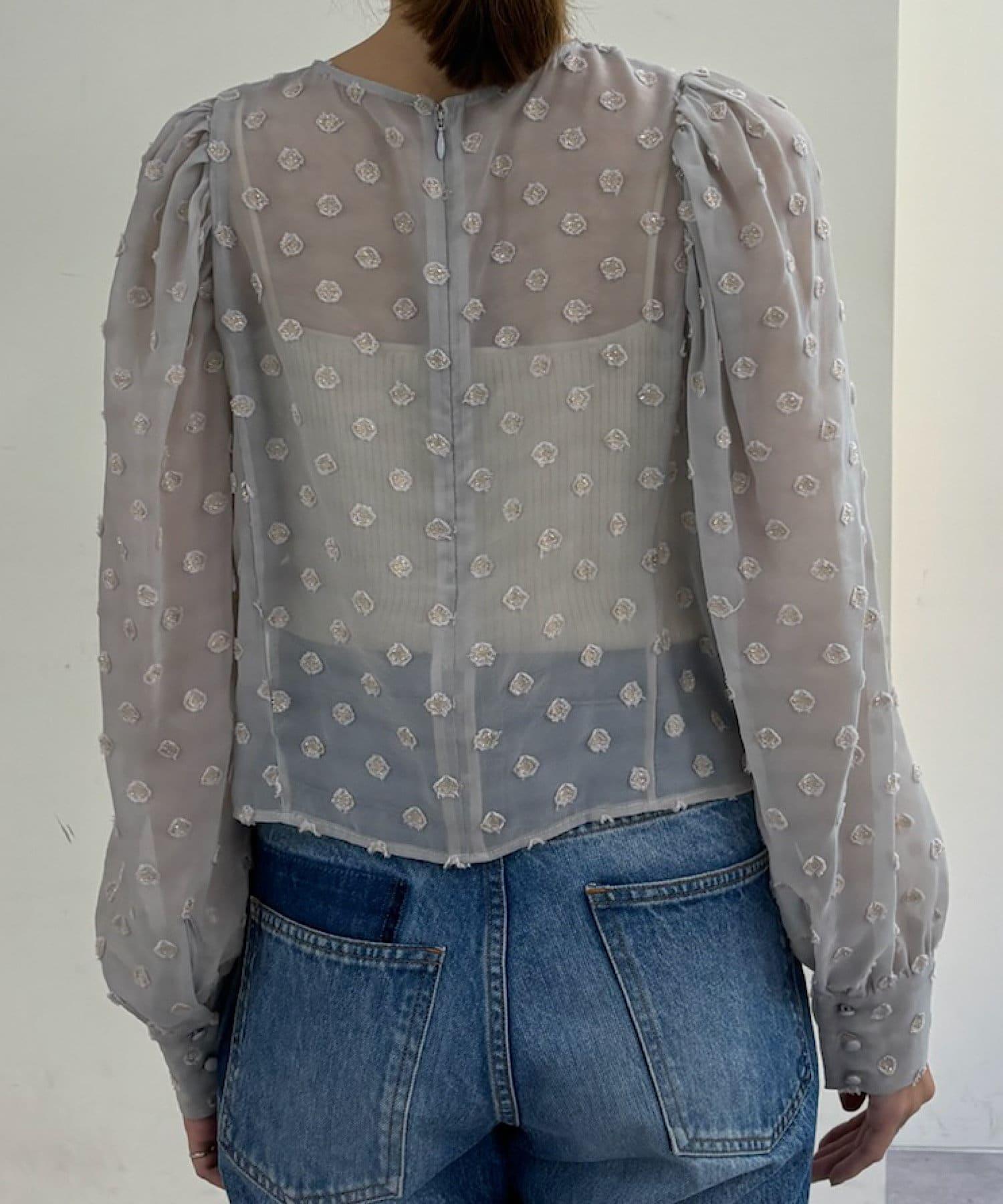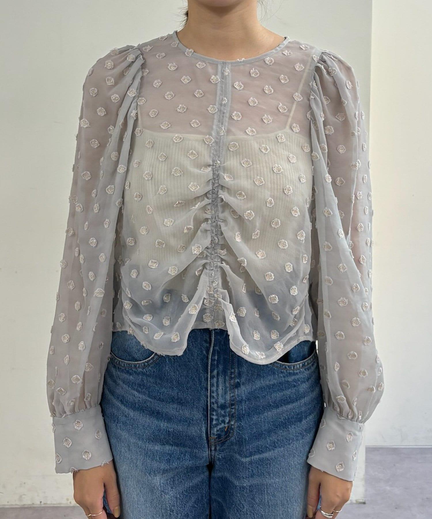 這款上衣具有適度的薄透感,秋季穿著也很方便。