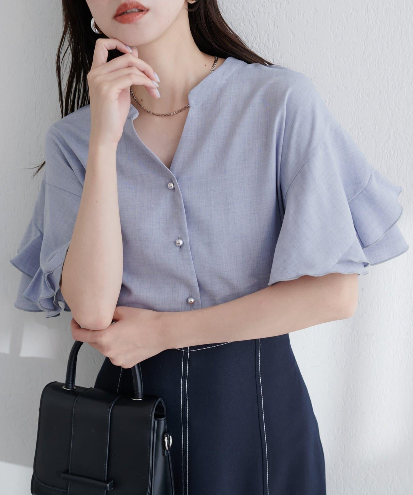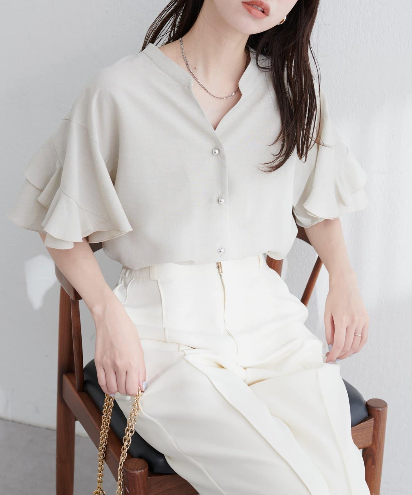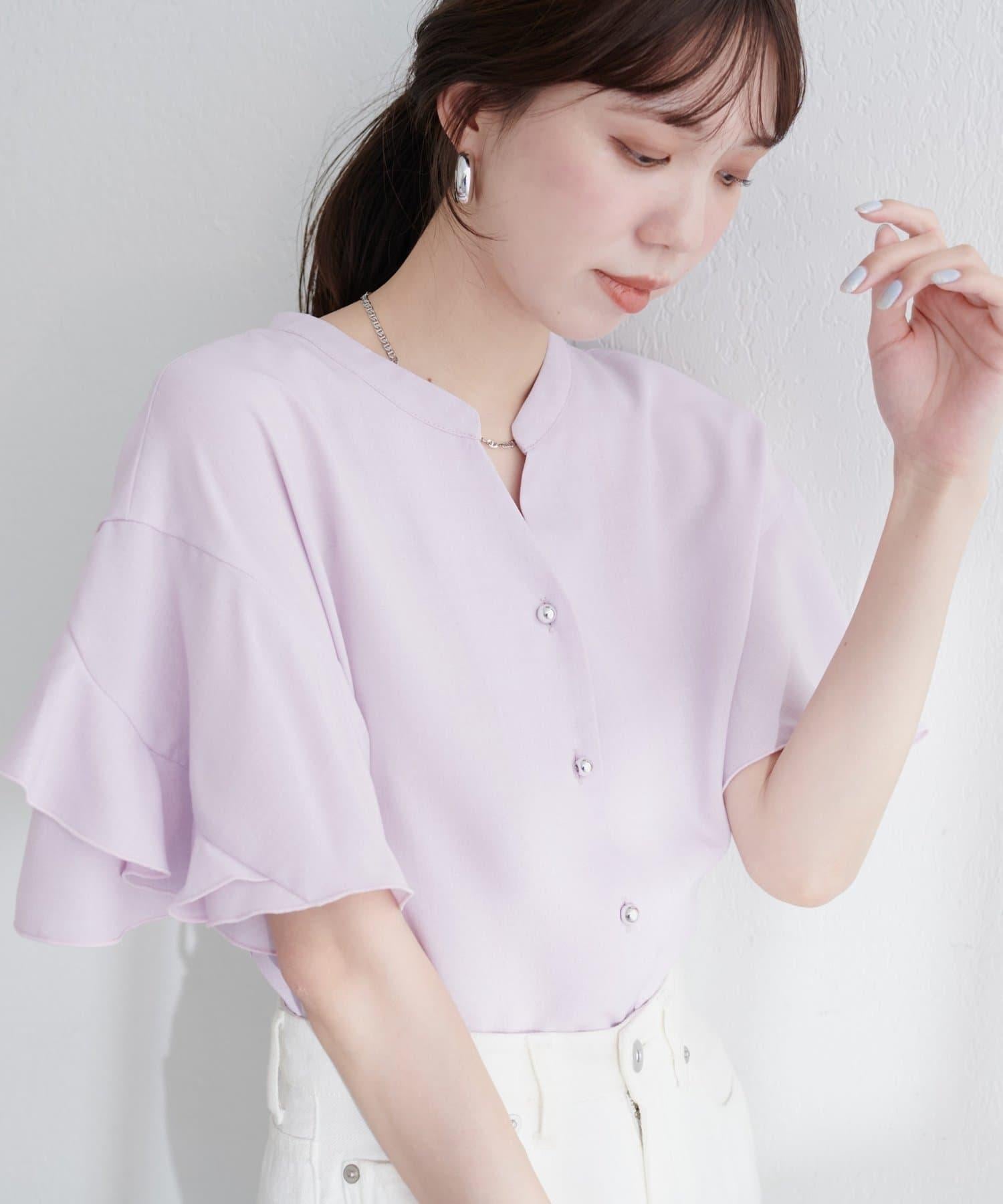 袖子上有飄逸的荷葉邊,是一款女性化的襯衫。