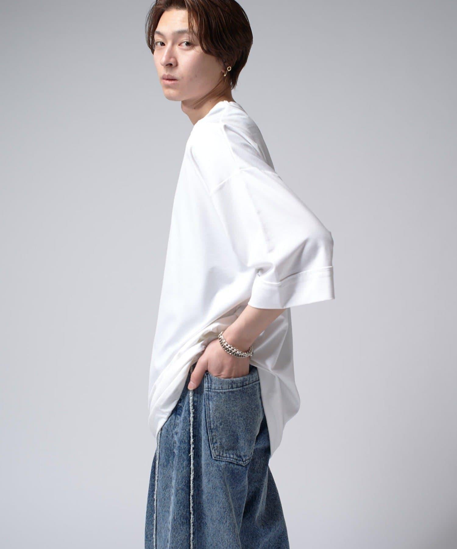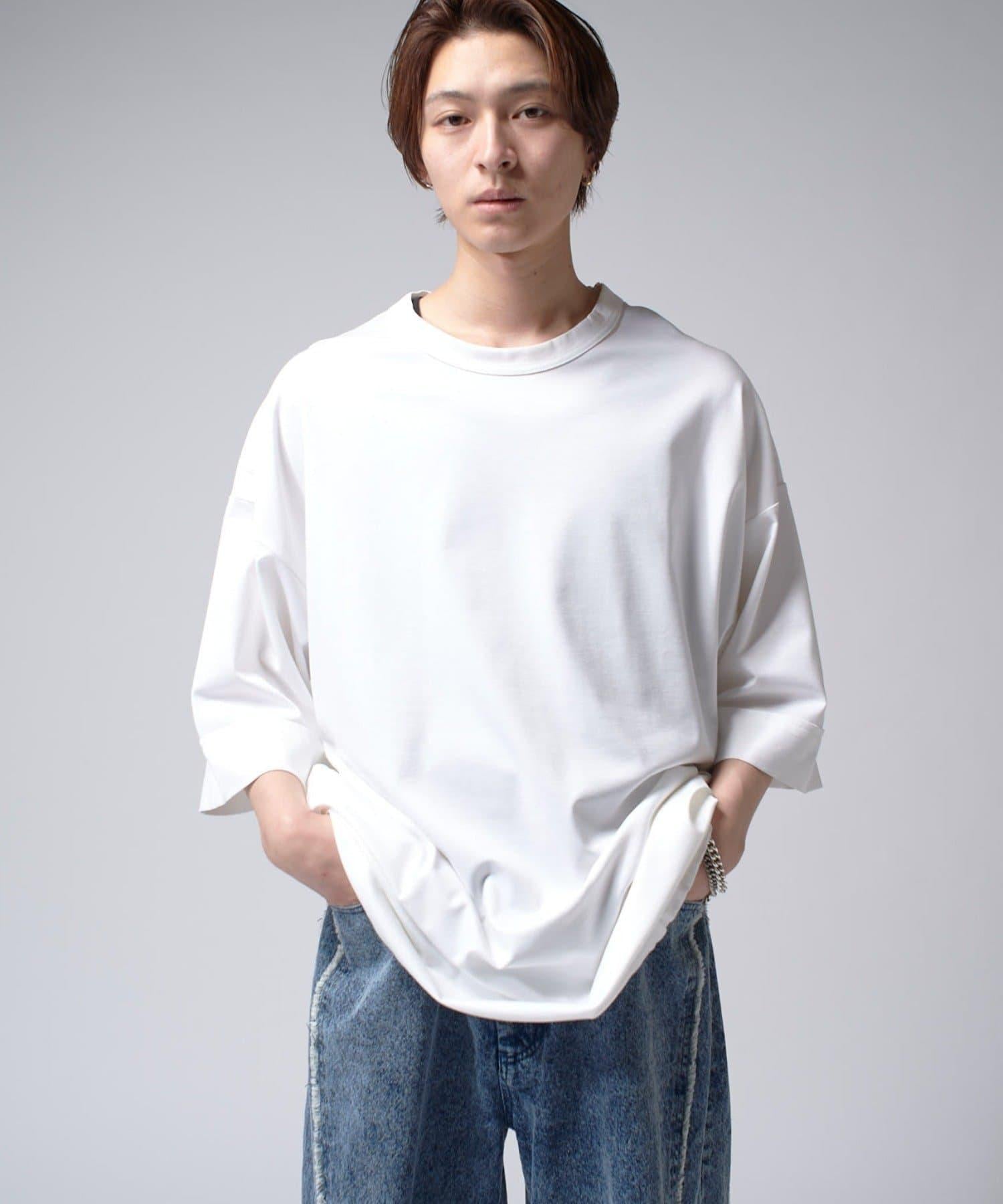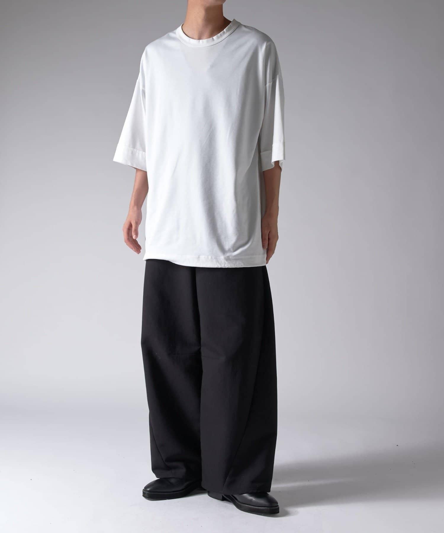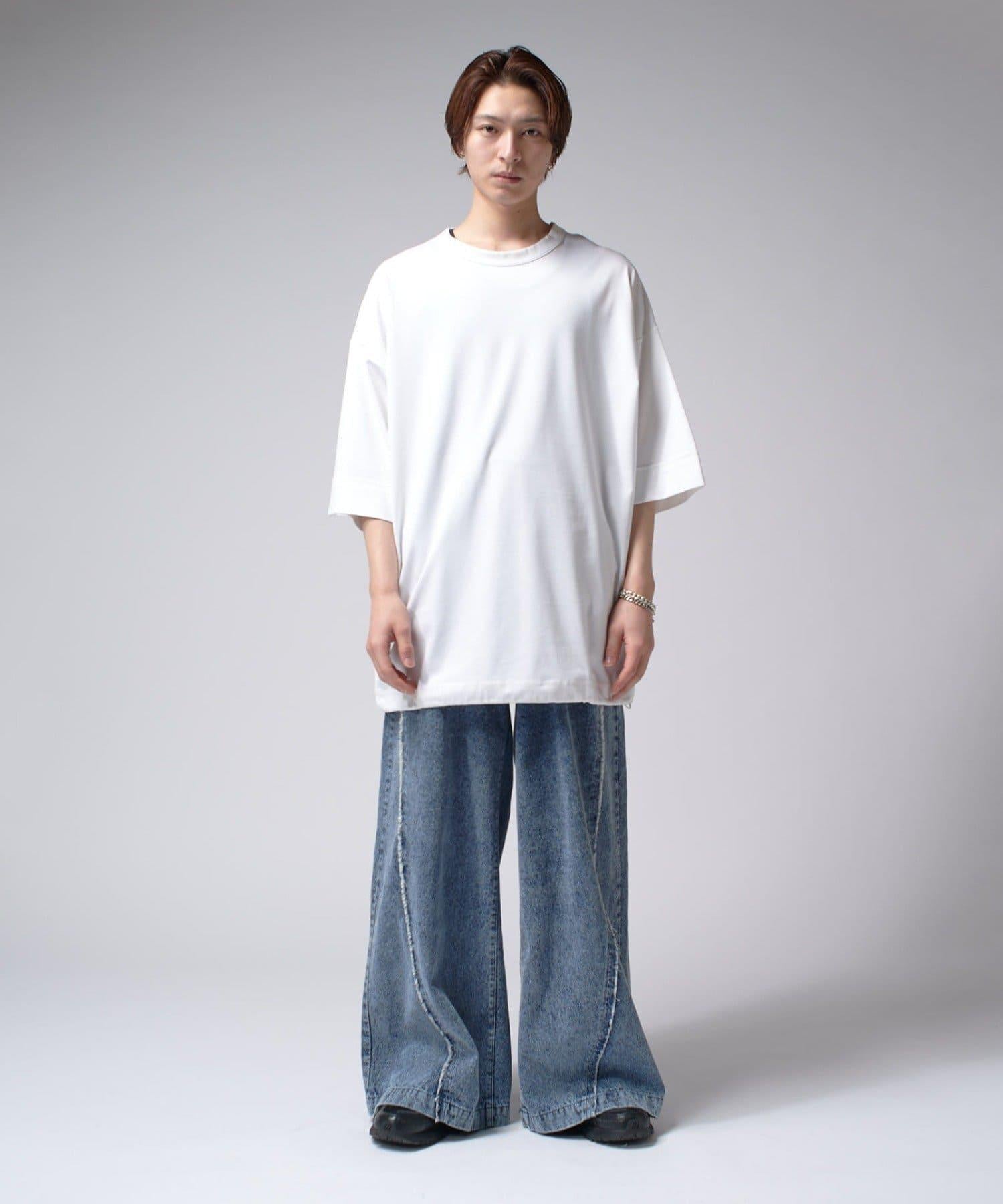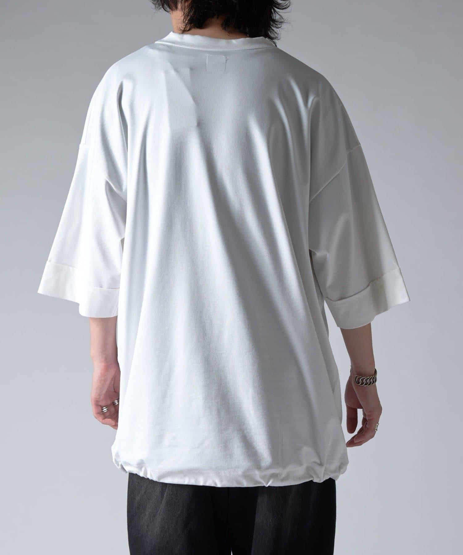 這款單品可以讓你享受純色 T 的存在感。另外,下襬處有抽繩,可通過擠壓長度和廓形進行調節。