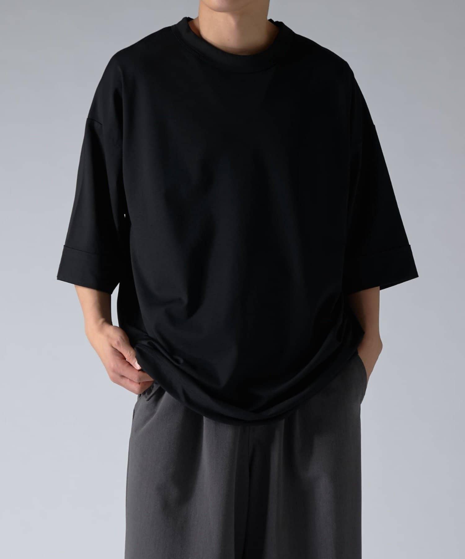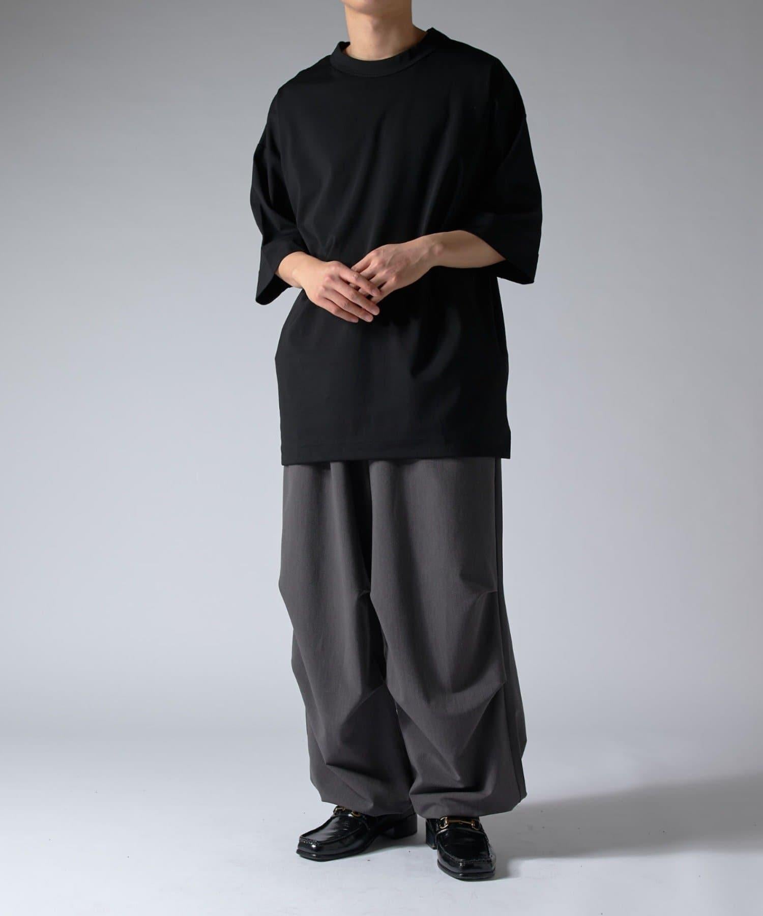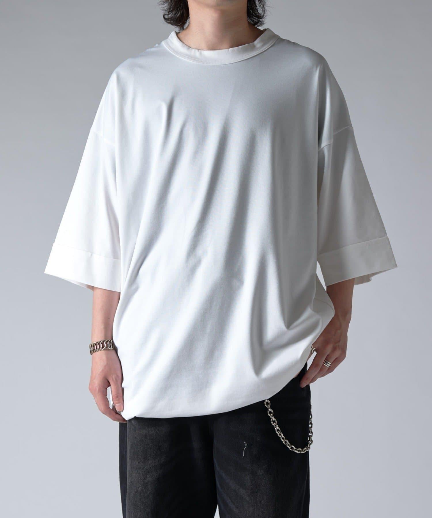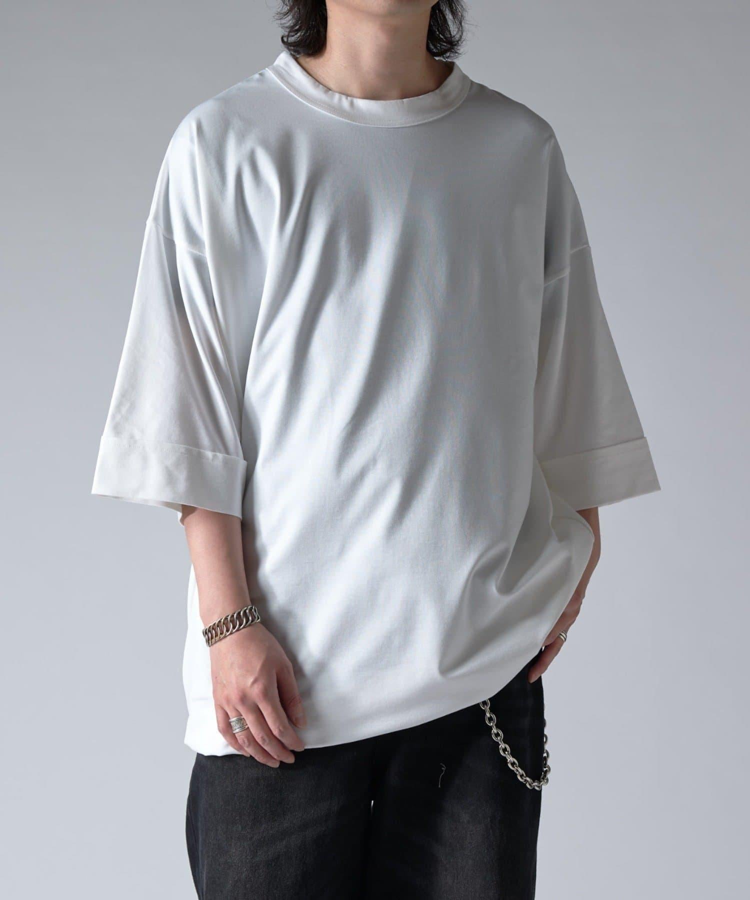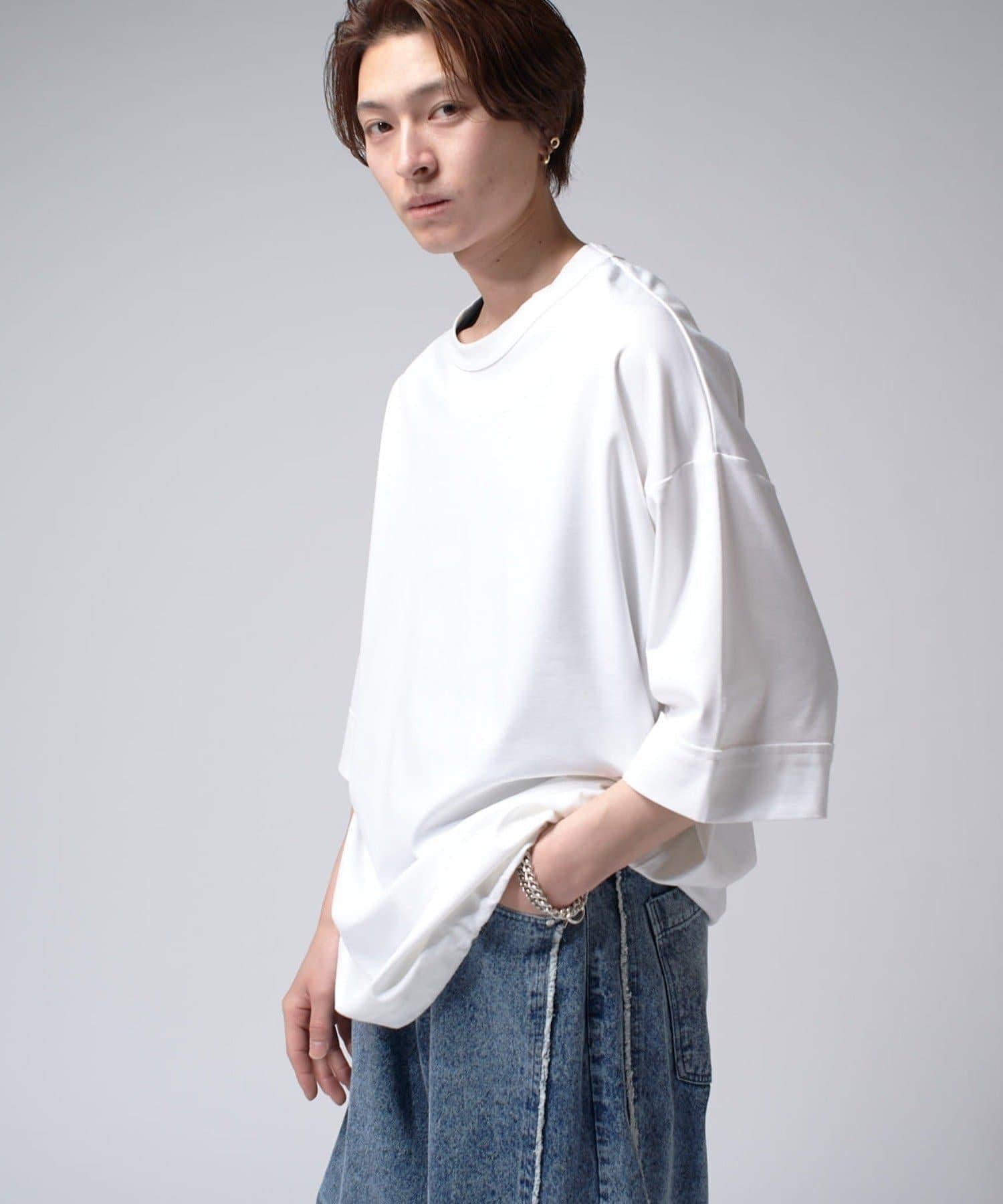 這款單品可以讓你享受純色 T 的存在感。另外,下襬處有抽繩,可通過擠壓長度和廓形進行調節。