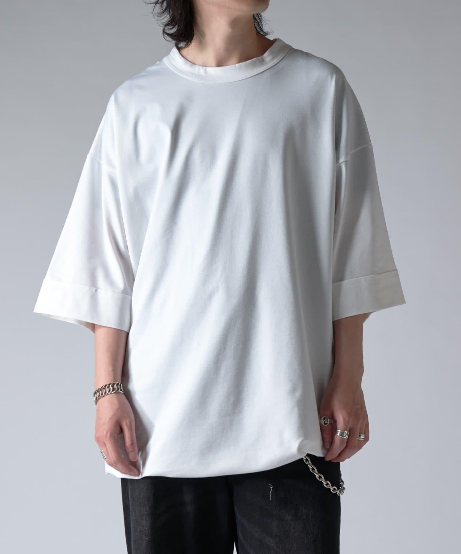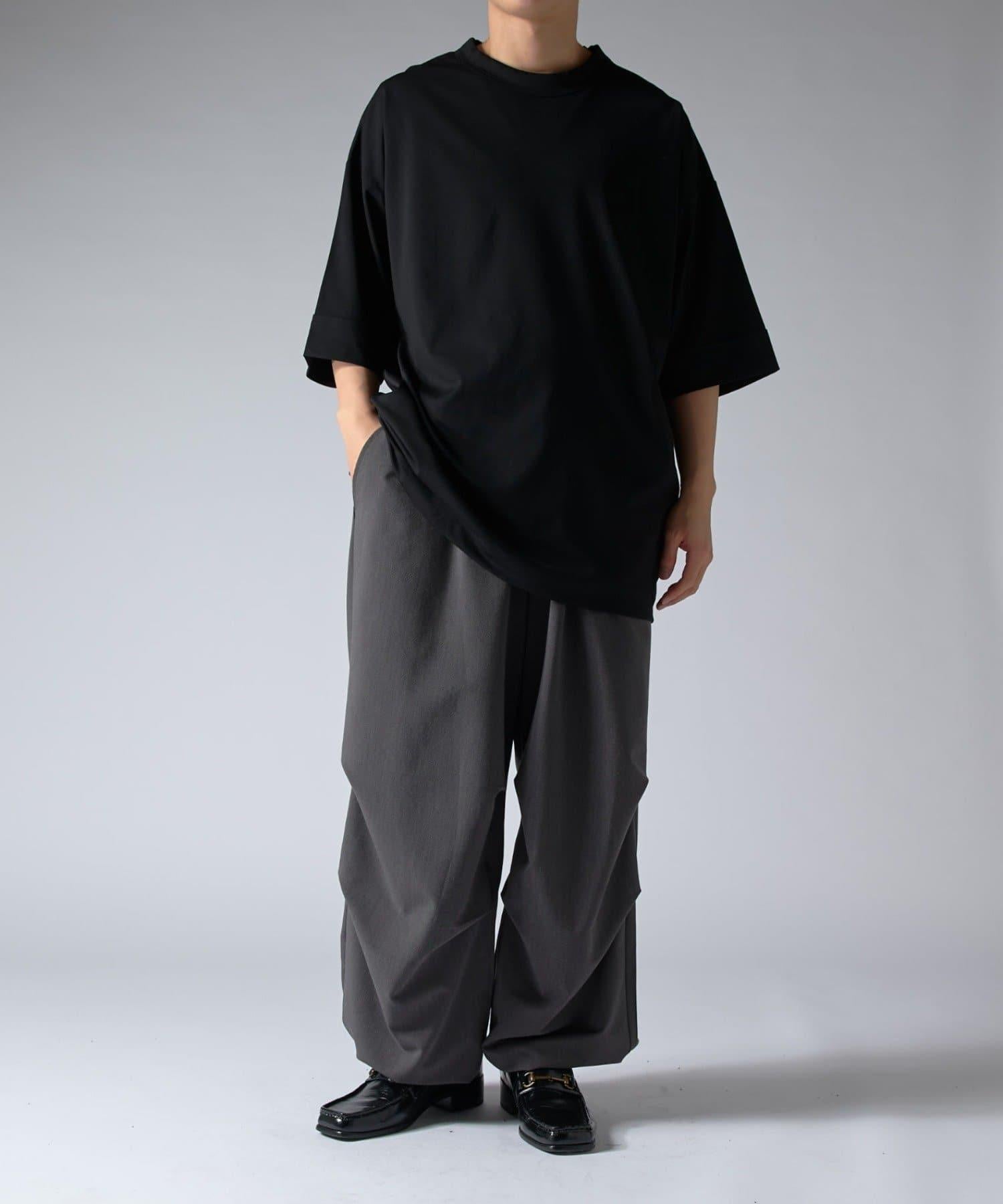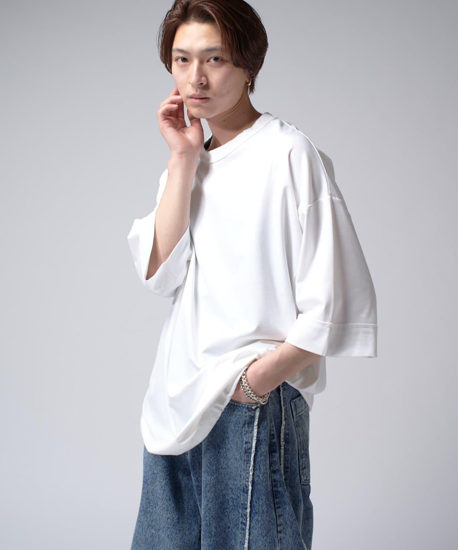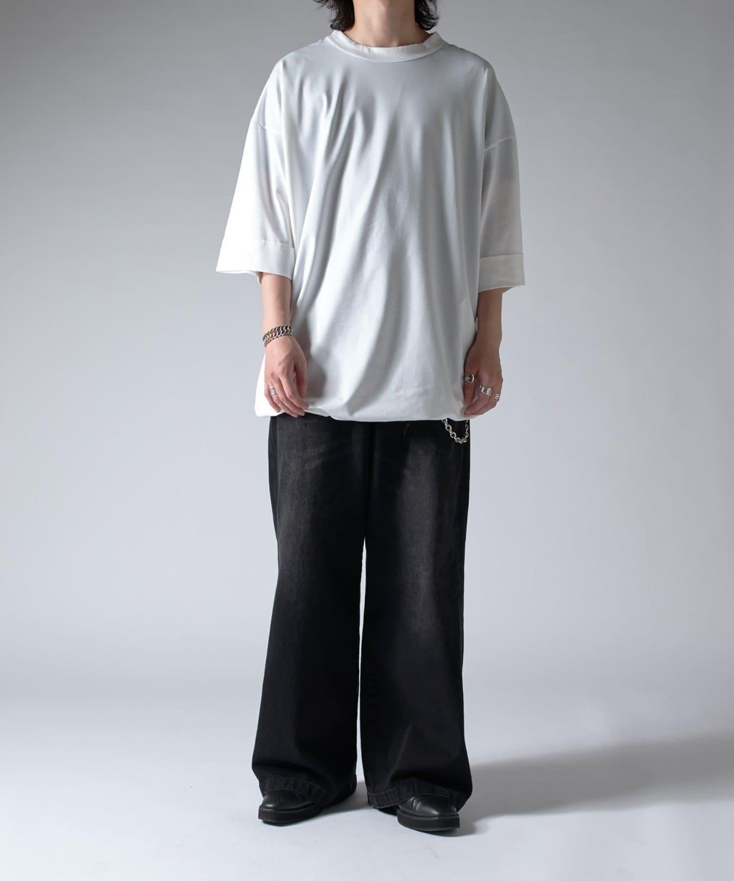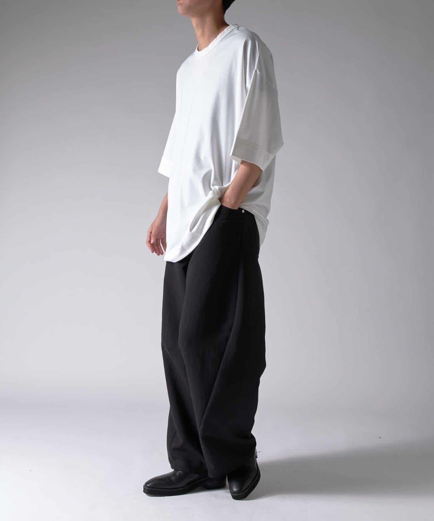 這款單品可以讓你享受純色 T 的存在感。另外,下襬處有抽繩,可通過擠壓長度和廓形進行調節。