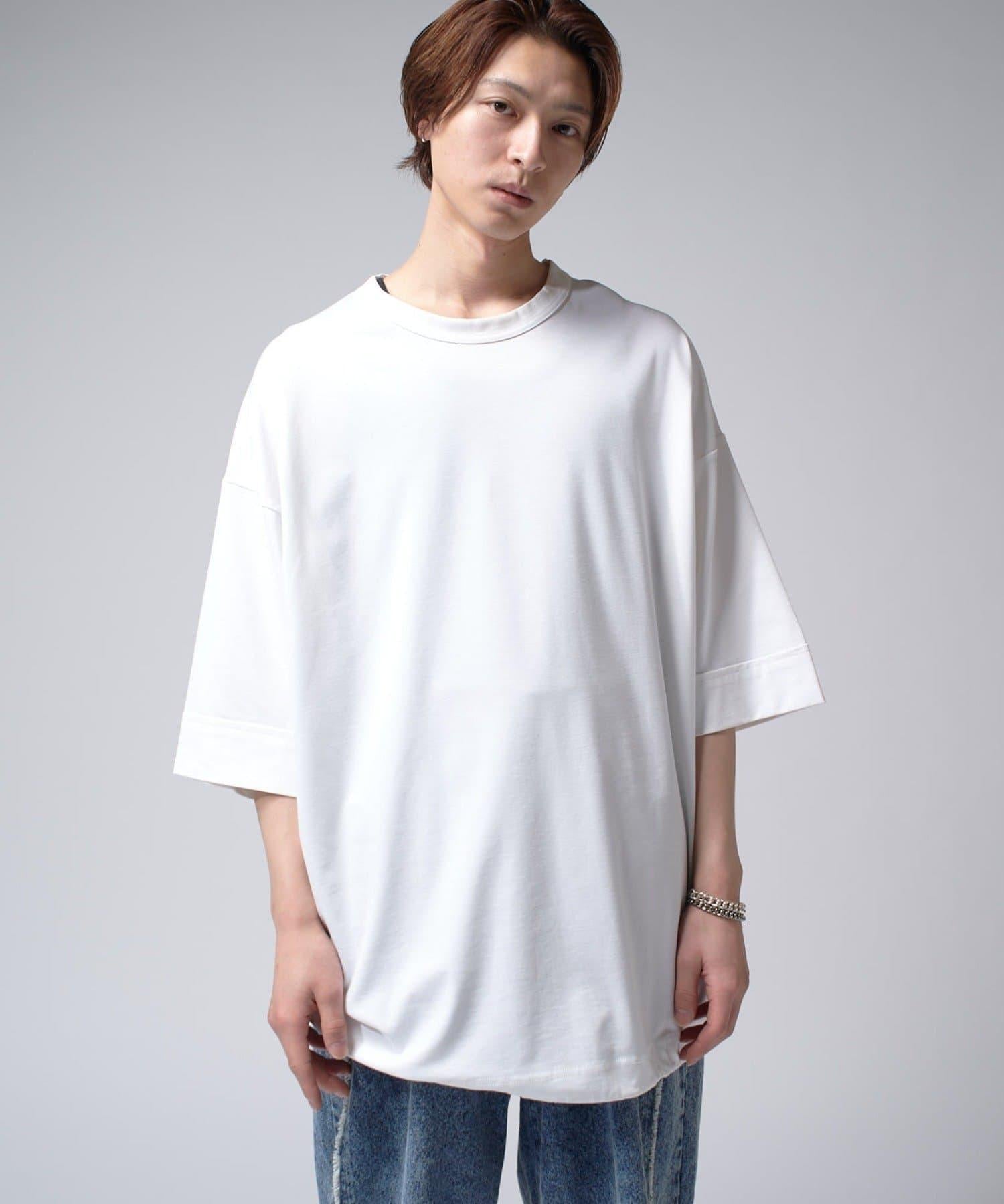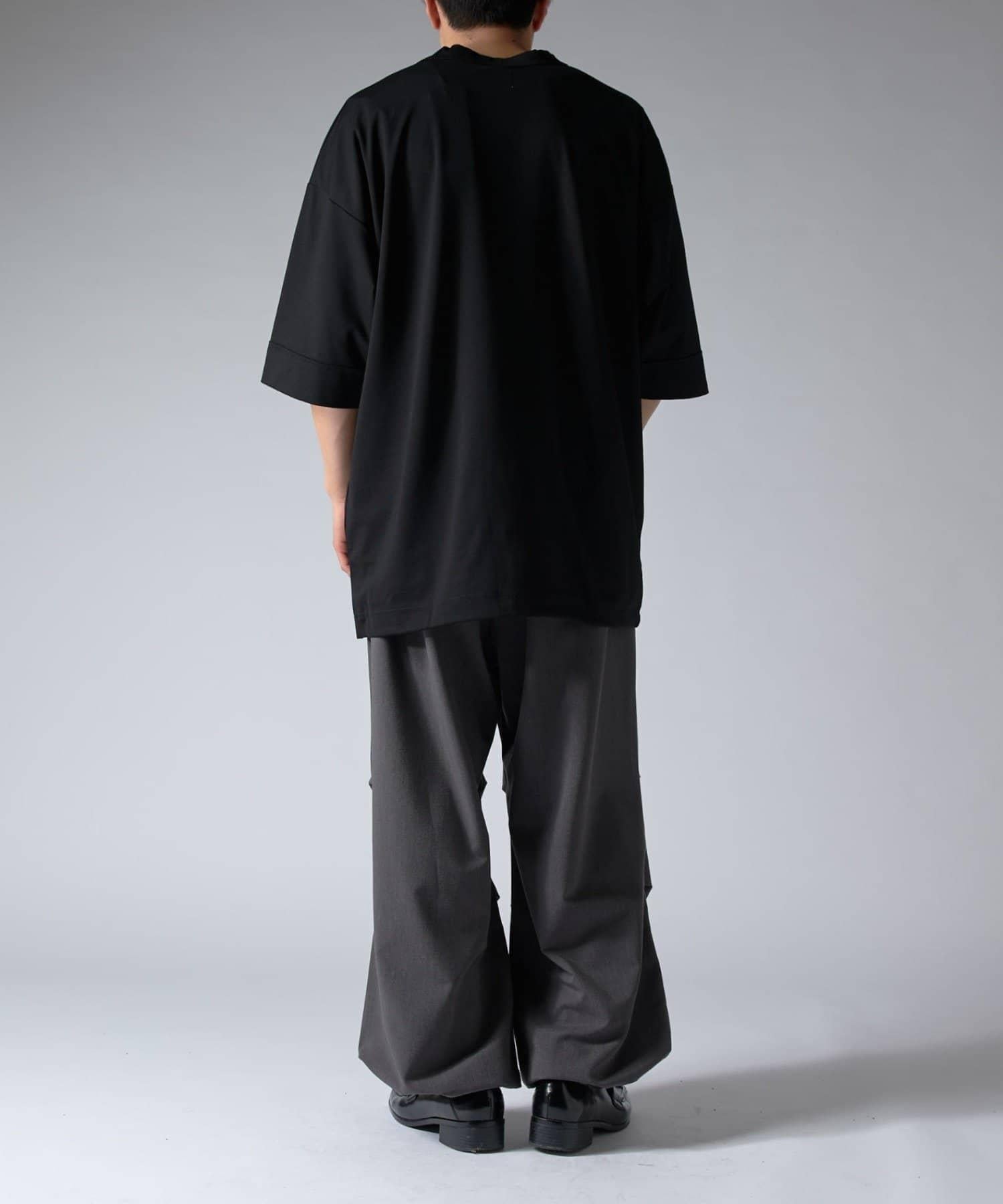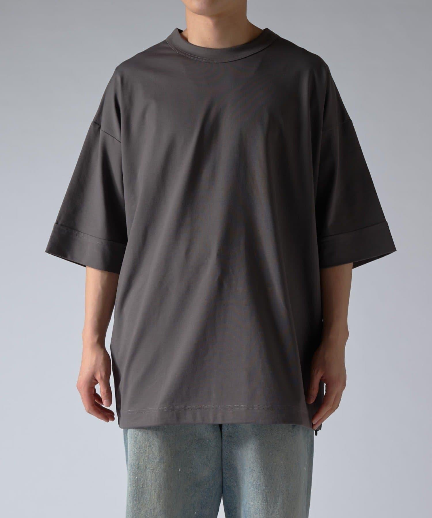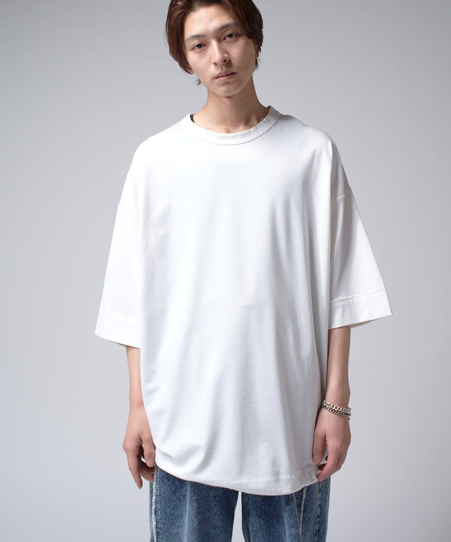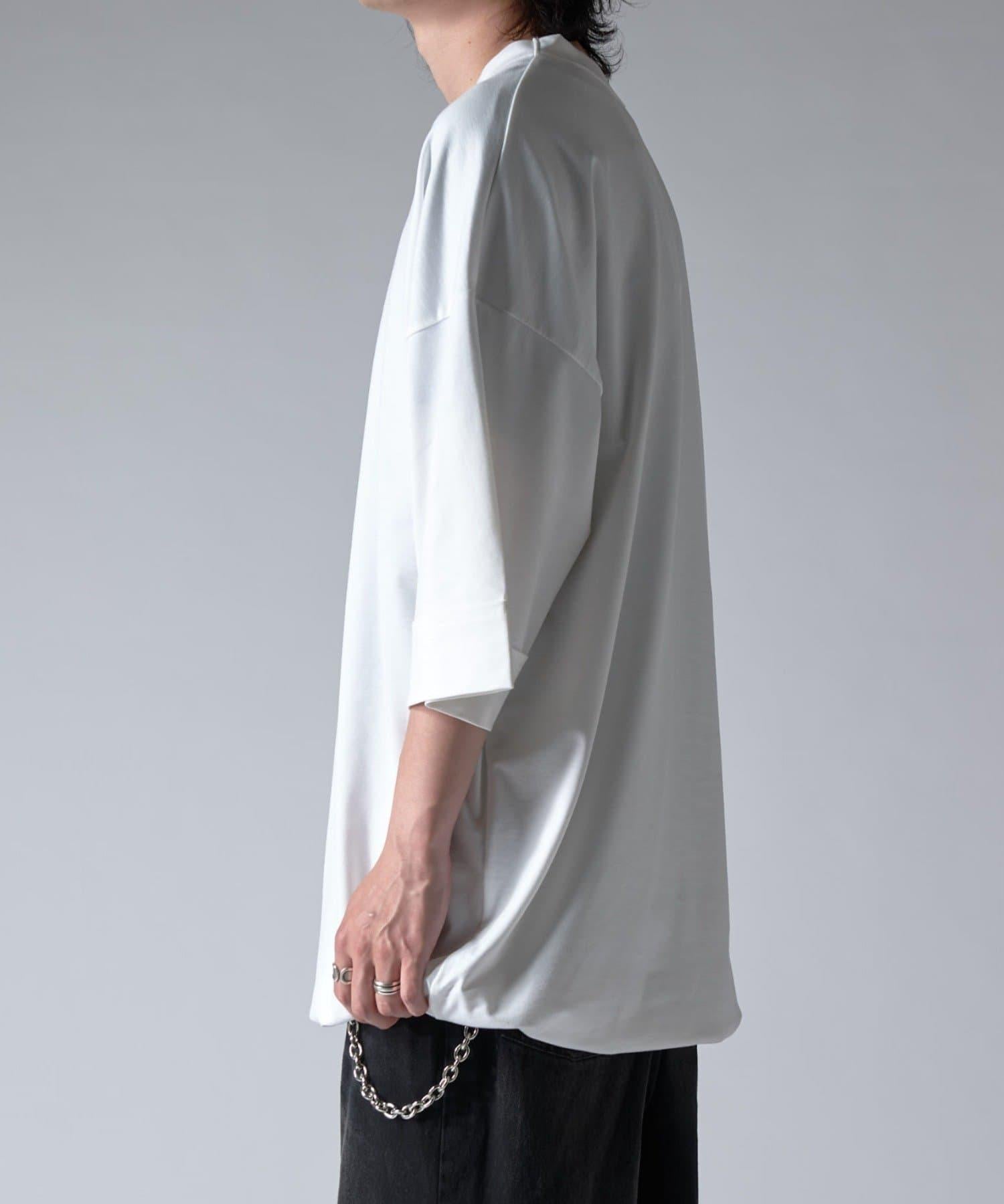 這款單品可以讓你享受純色 T 的存在感。另外,下襬處有抽繩,可通過擠壓長度和廓形進行調節。