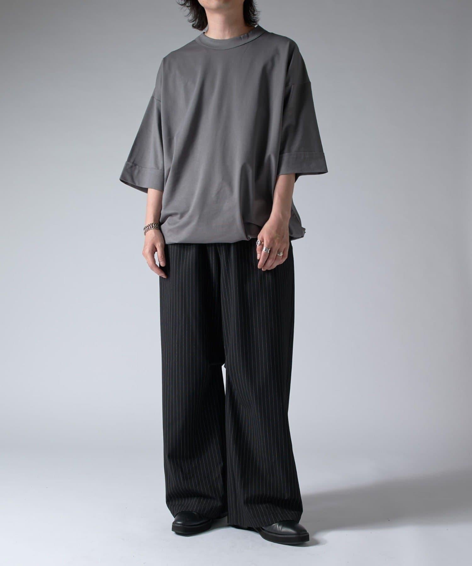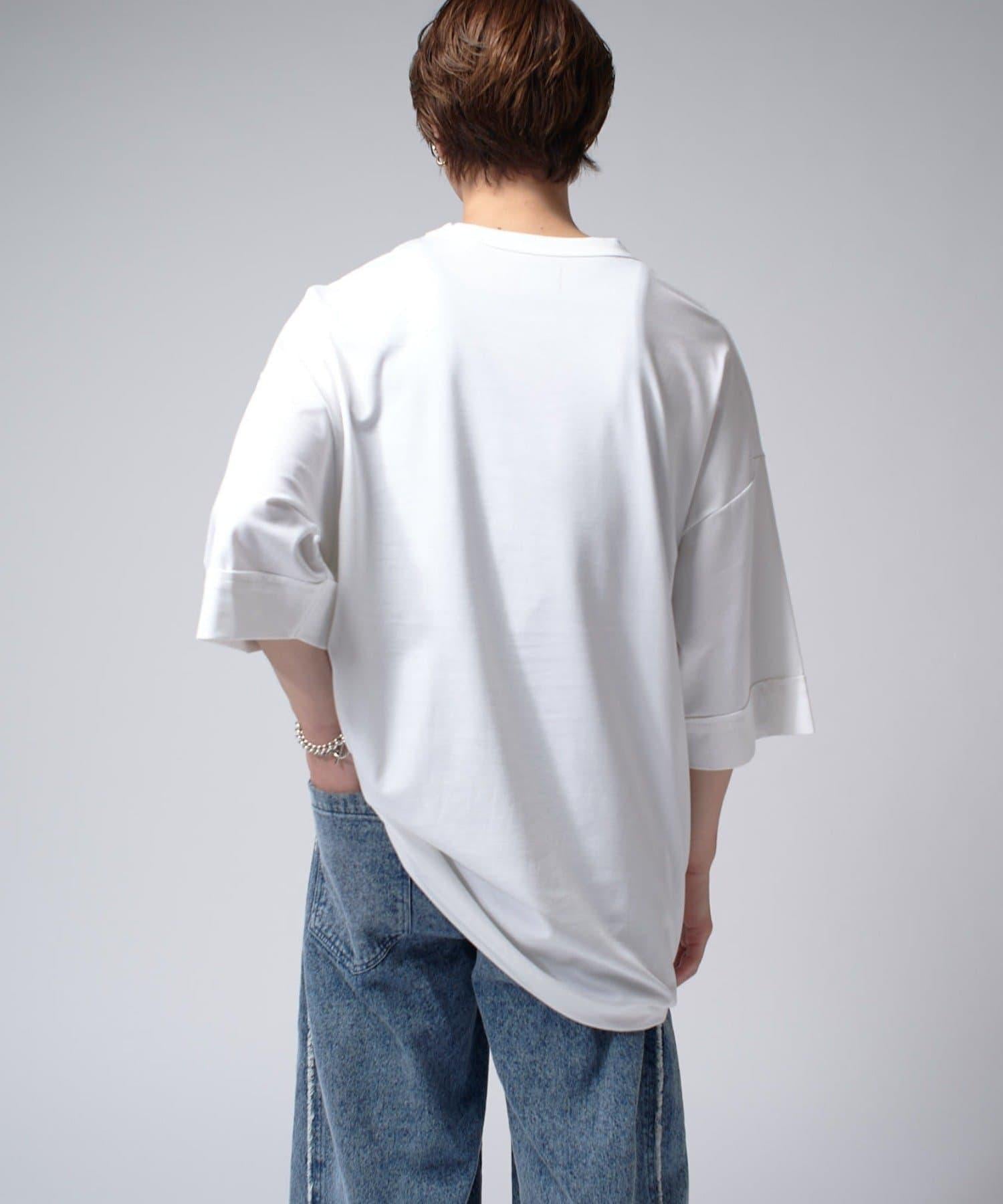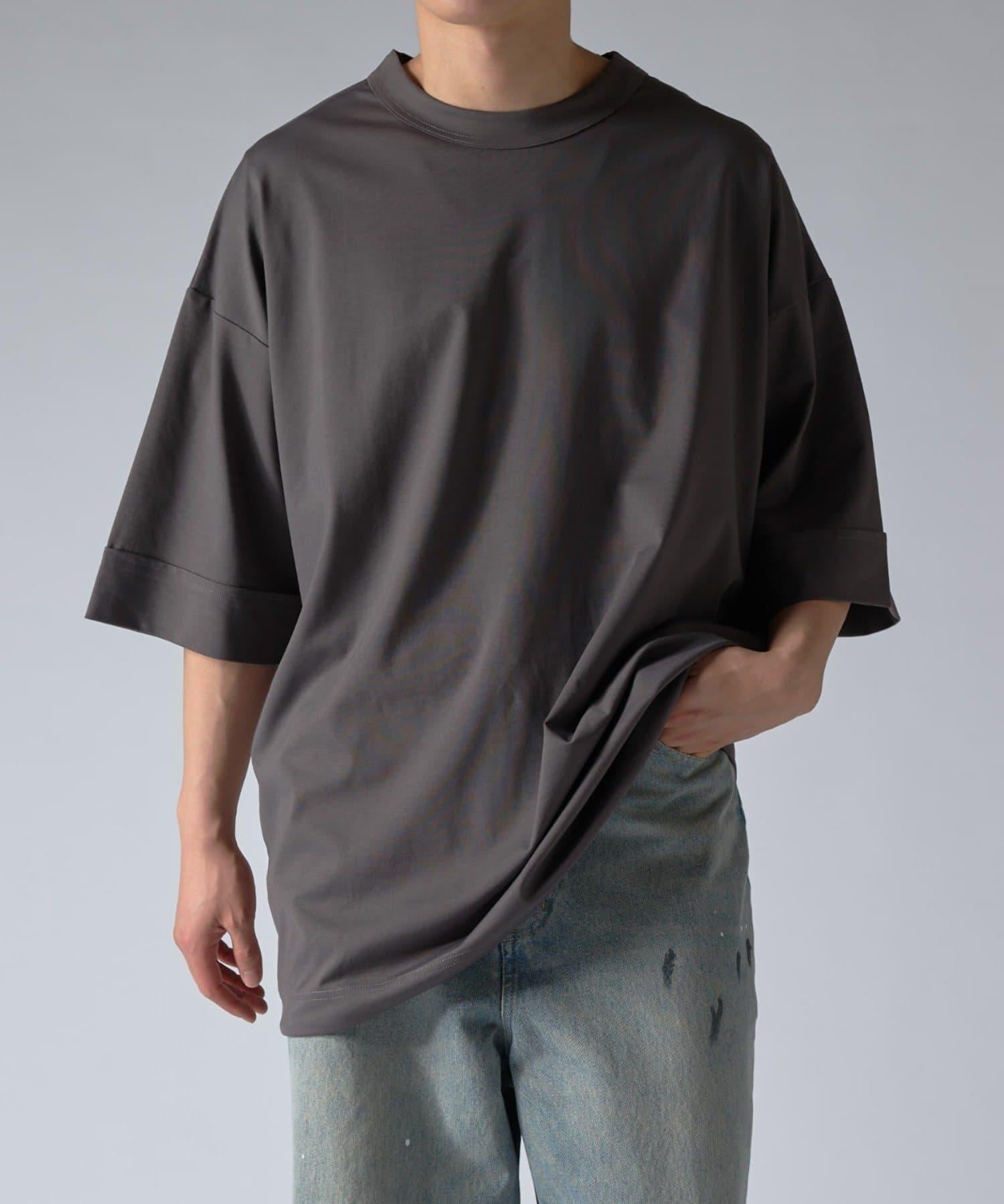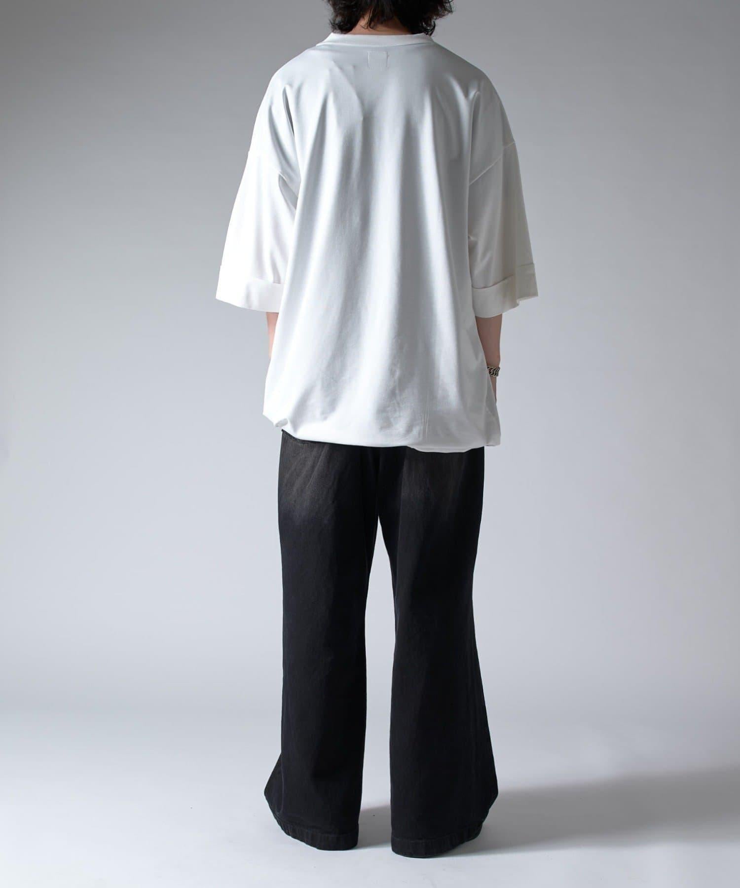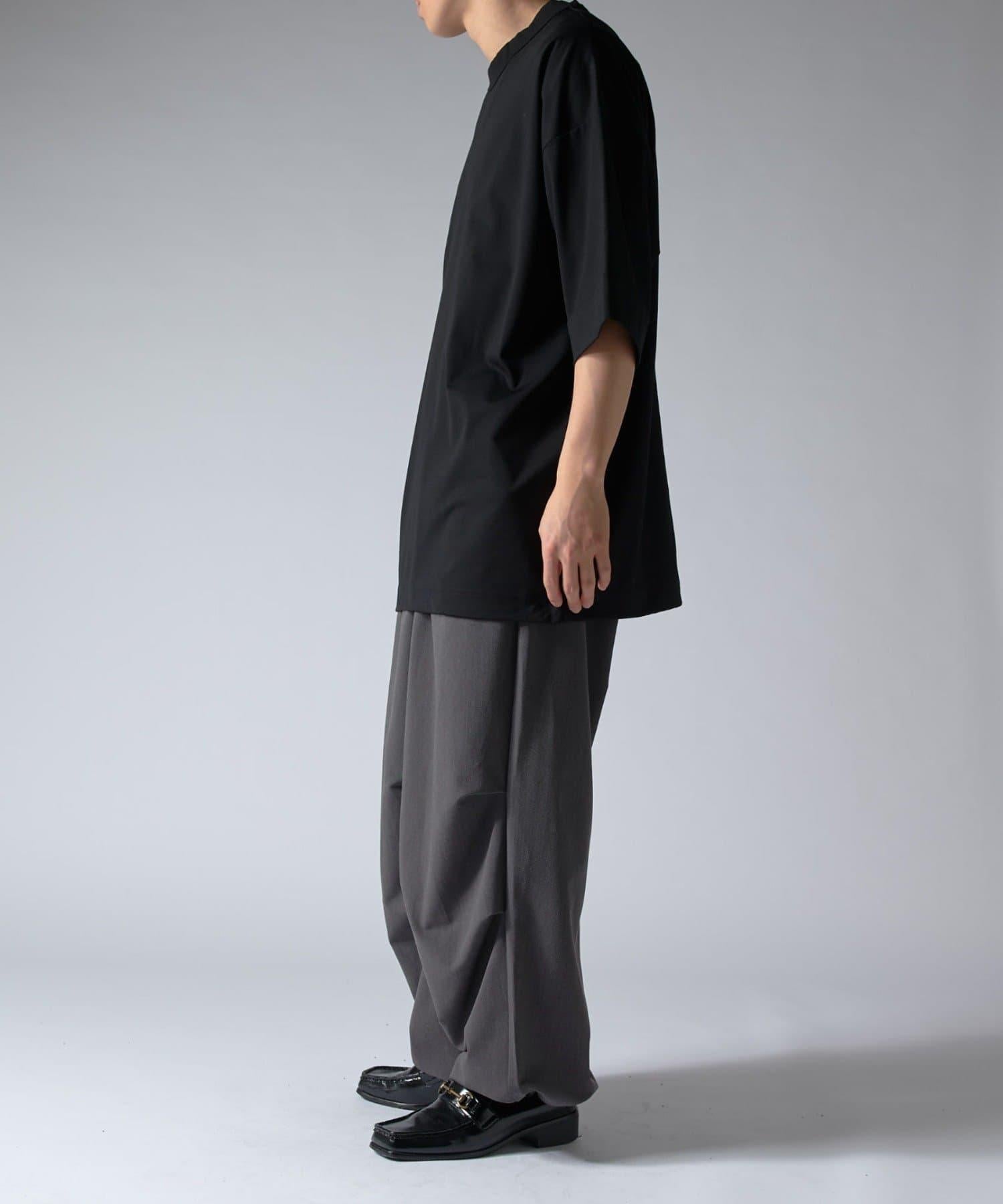 這款單品可以讓你享受純色 T 的存在感。另外,下襬處有抽繩,可通過擠壓長度和廓形進行調節。