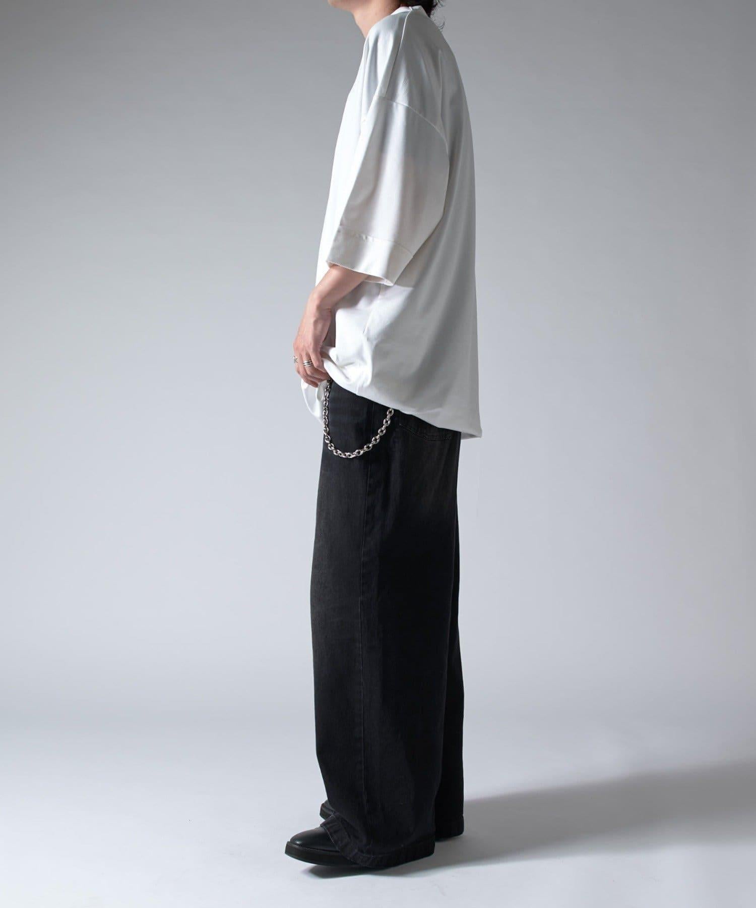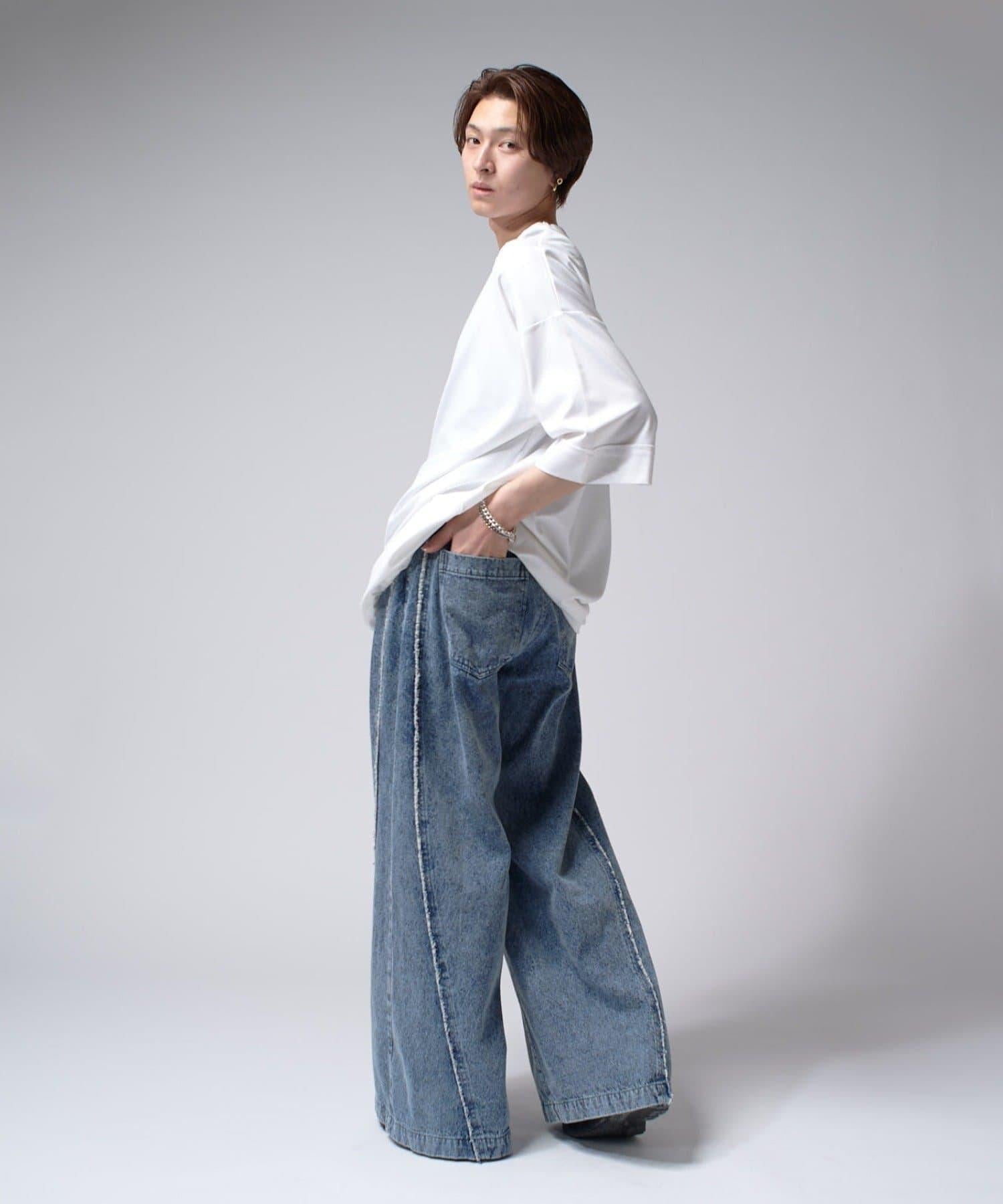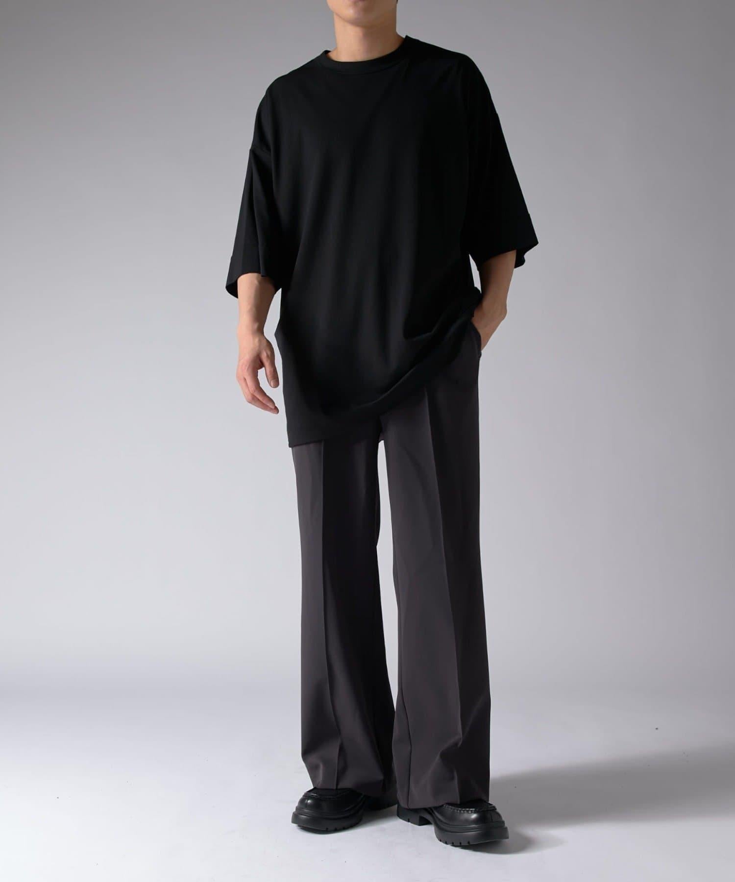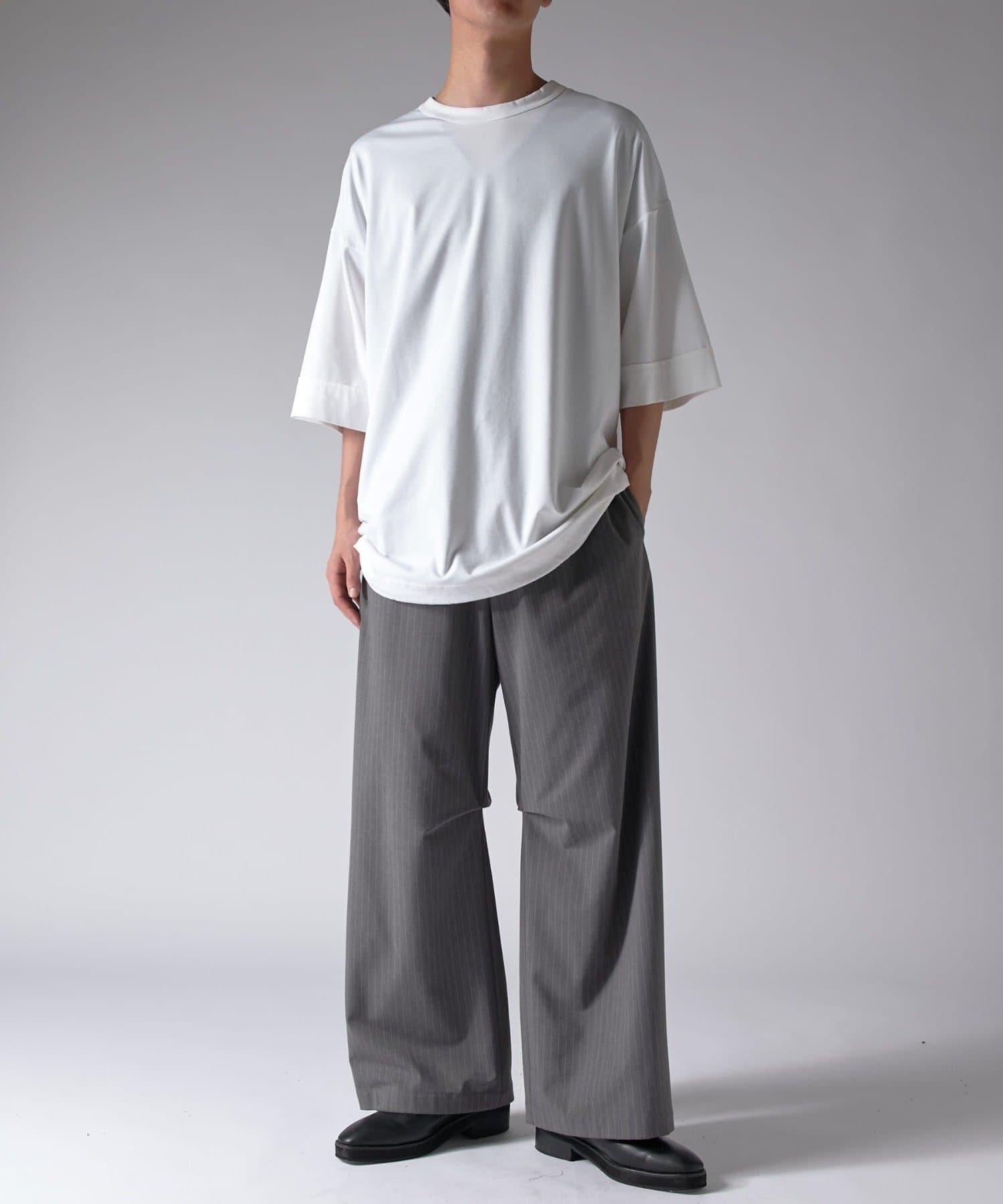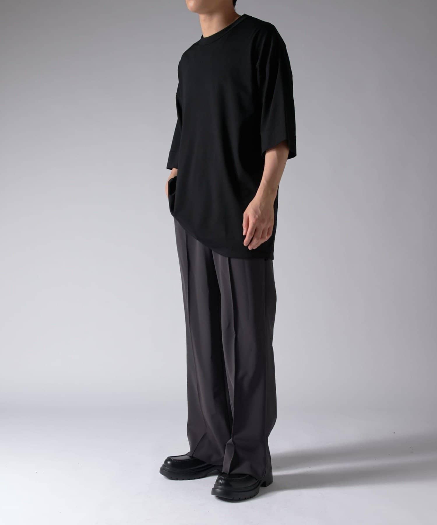 這款單品可以讓你享受純色 T 的存在感。另外,下襬處有抽繩,可通過擠壓長度和廓形進行調節。