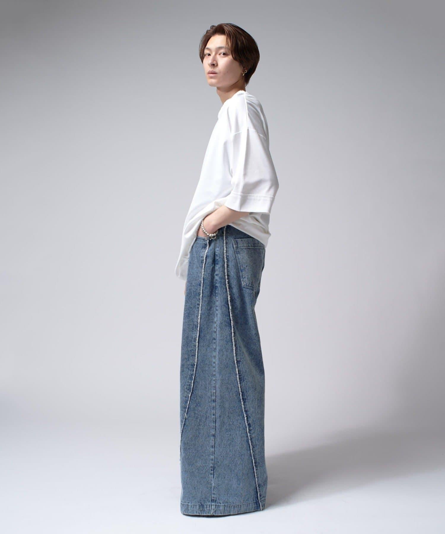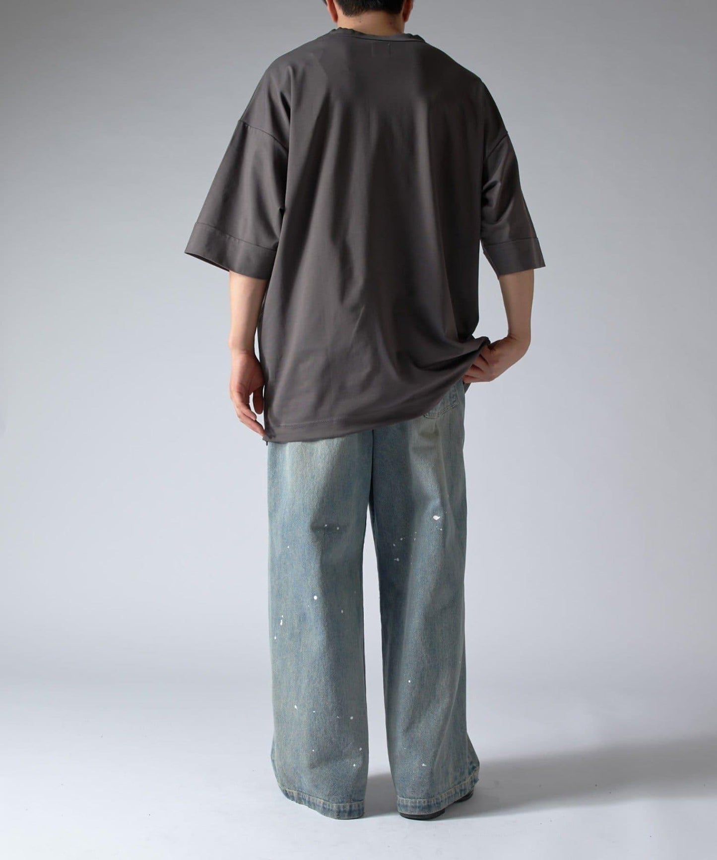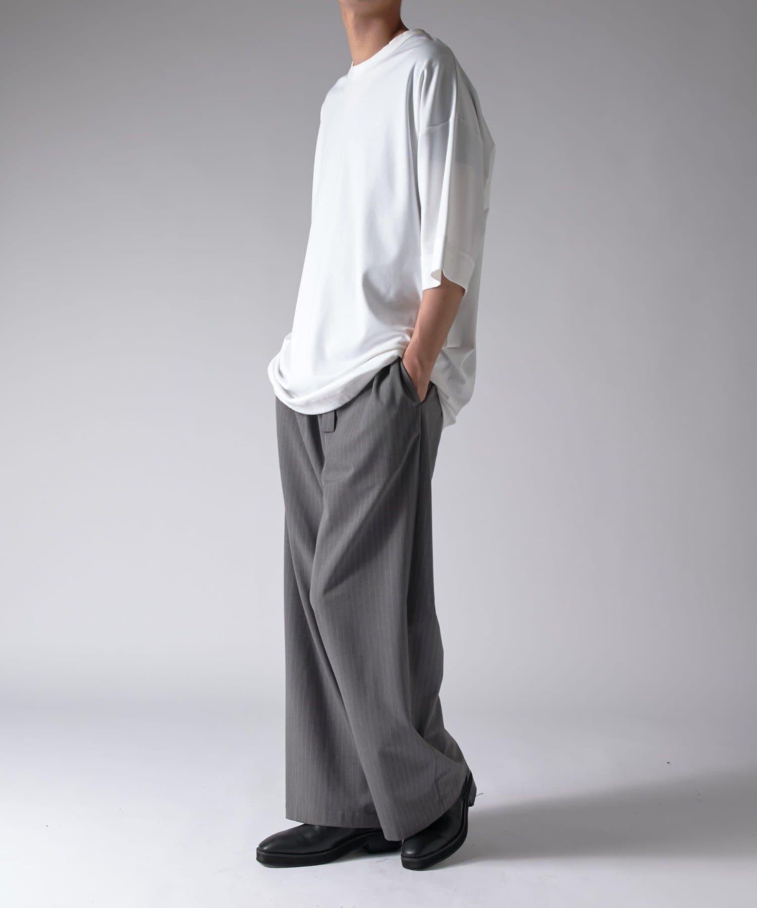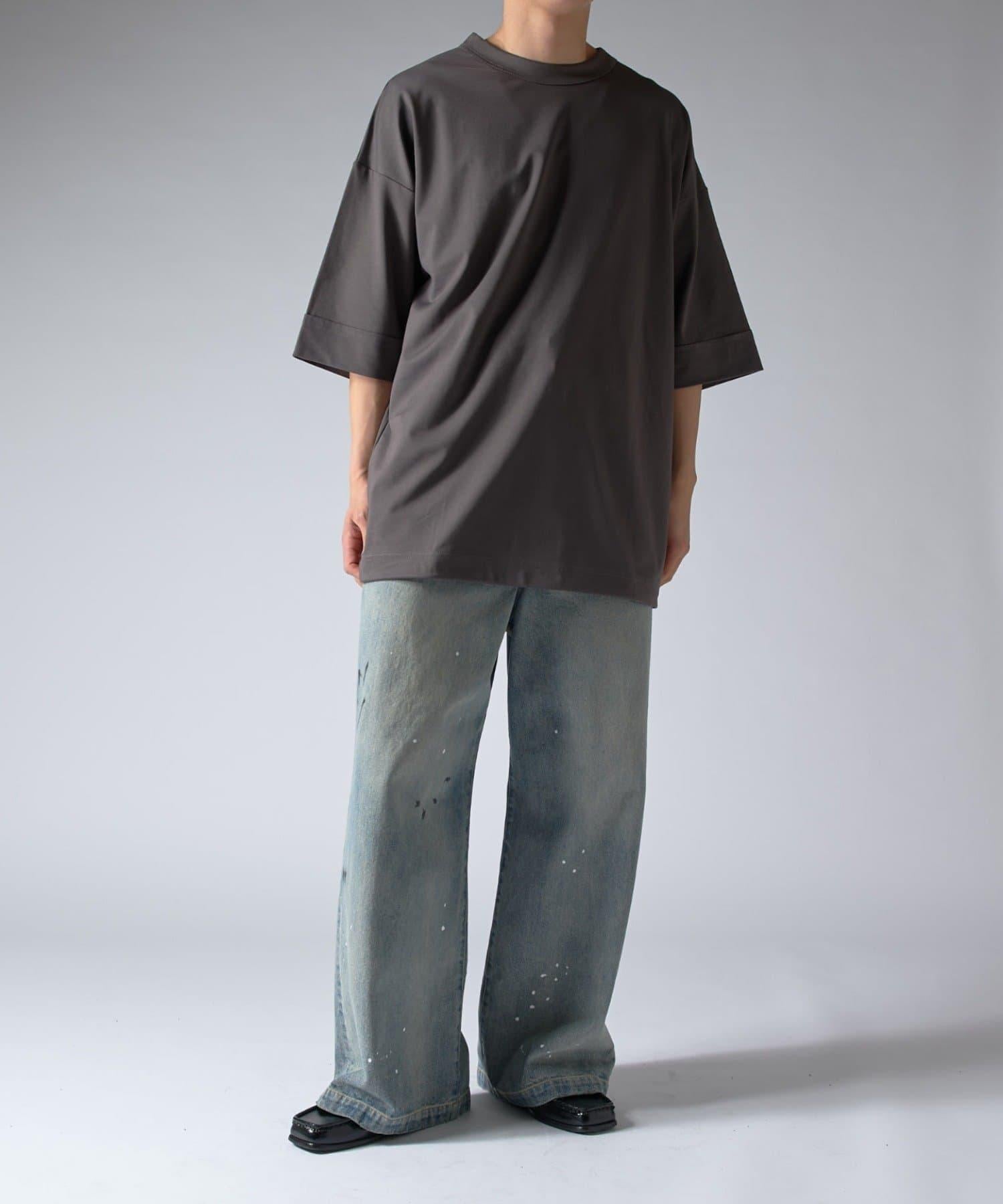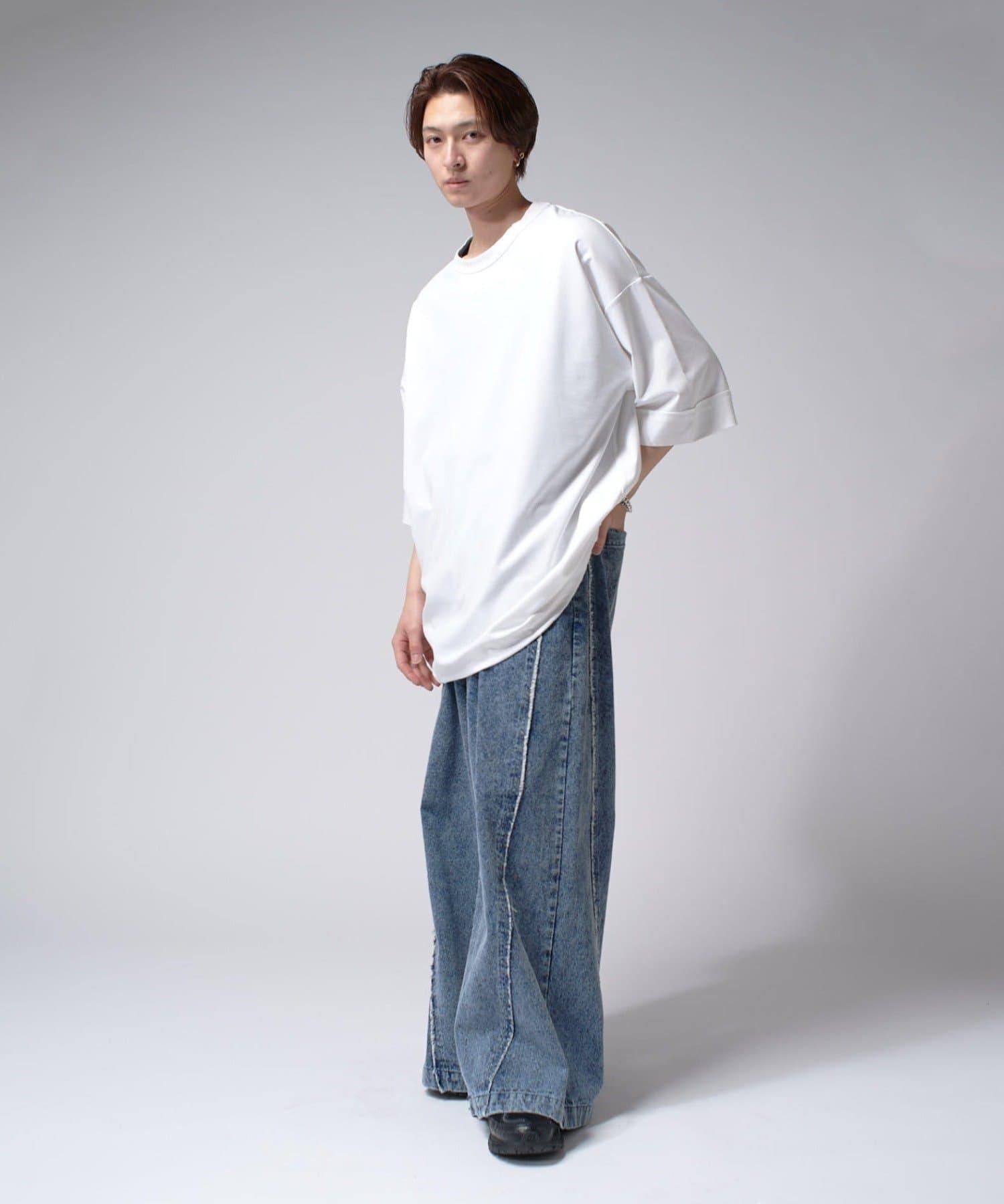 這款單品可以讓你享受純色 T 的存在感。另外,下襬處有抽繩,可通過擠壓長度和廓形進行調節。