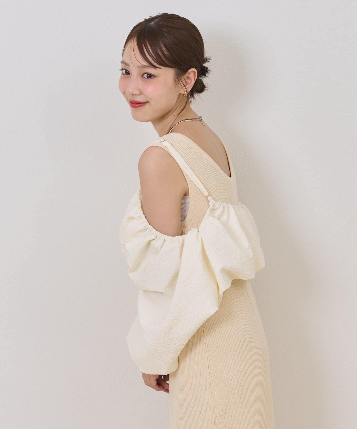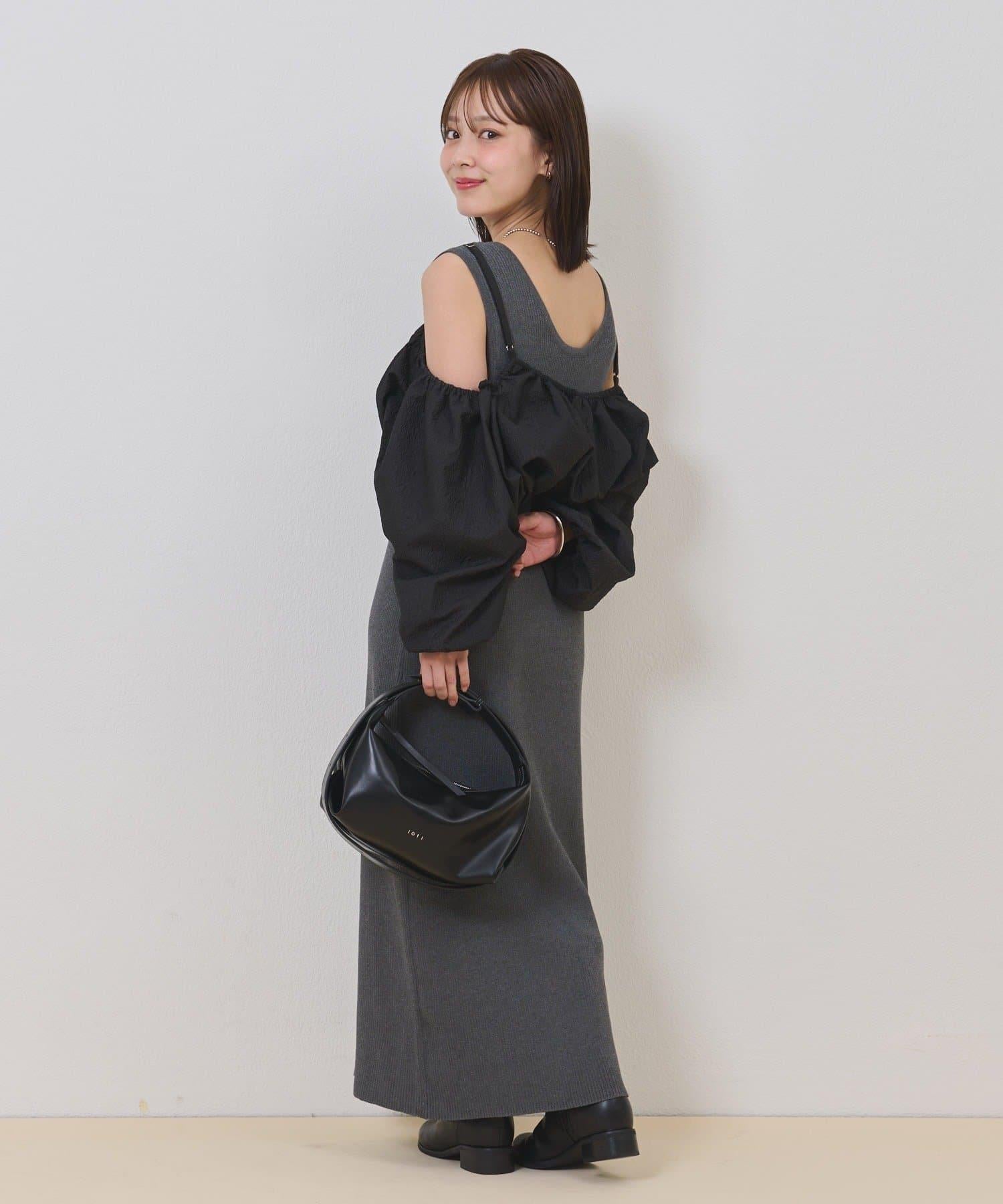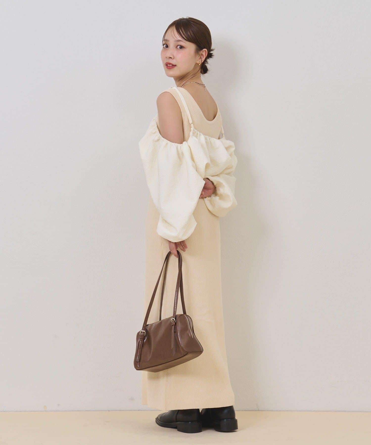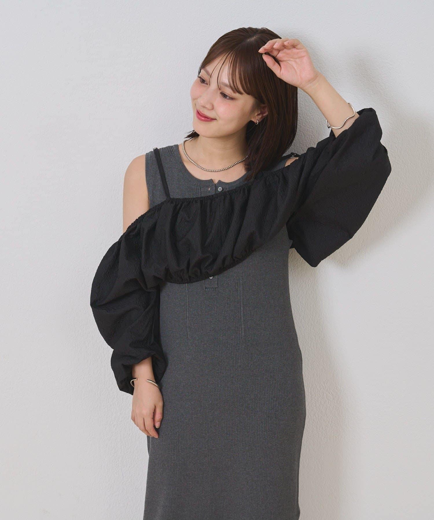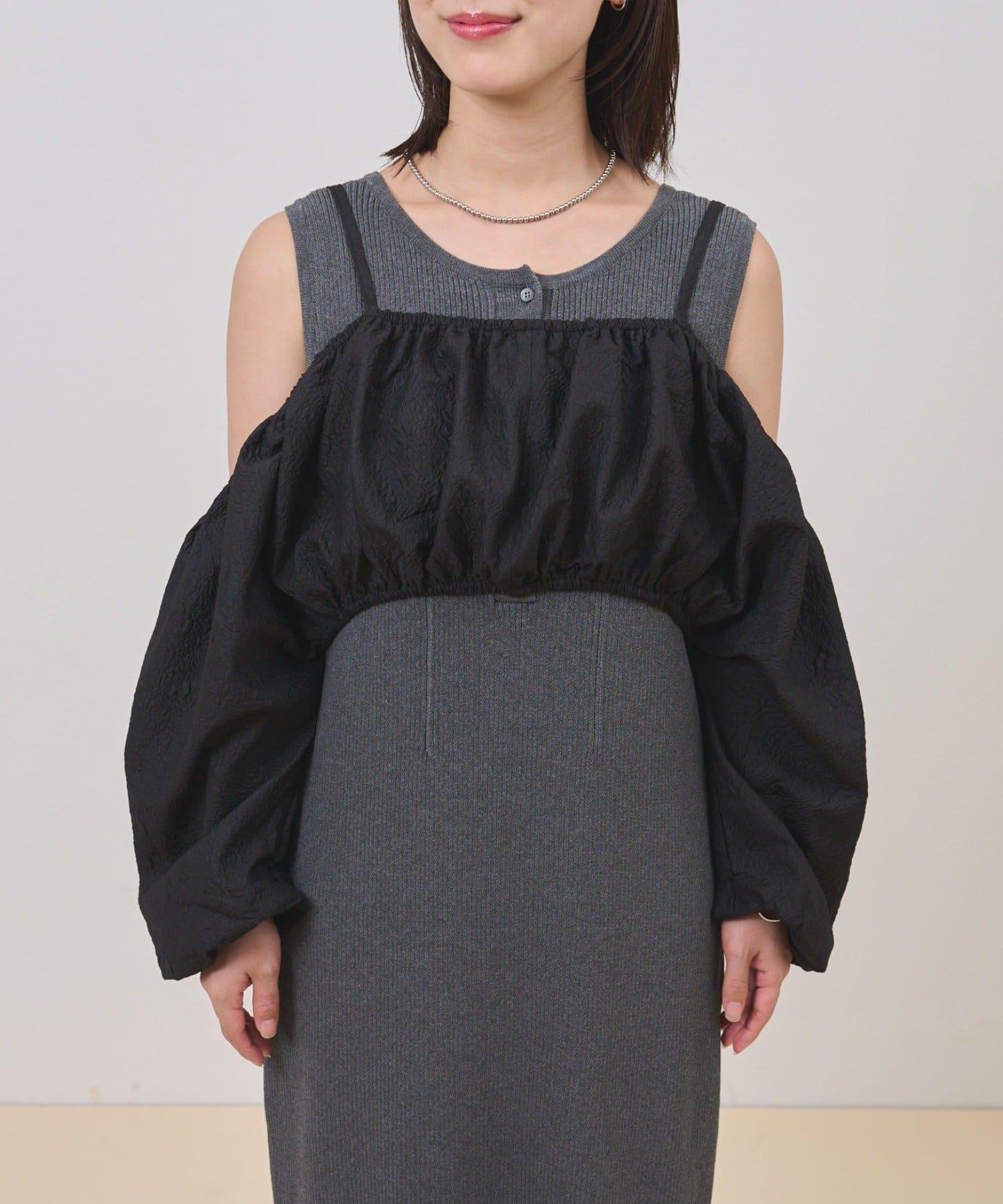 露肩上衣和針織連身裙的組合。這是能恰到好處地展現肌膚的帥氣連身裙。