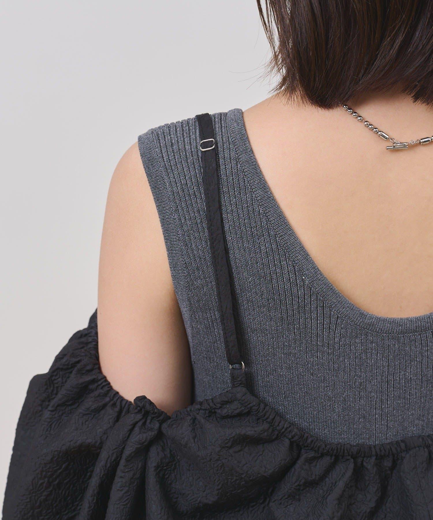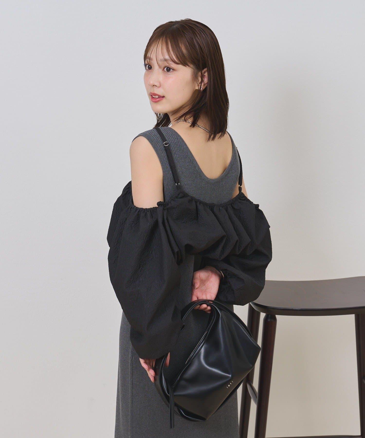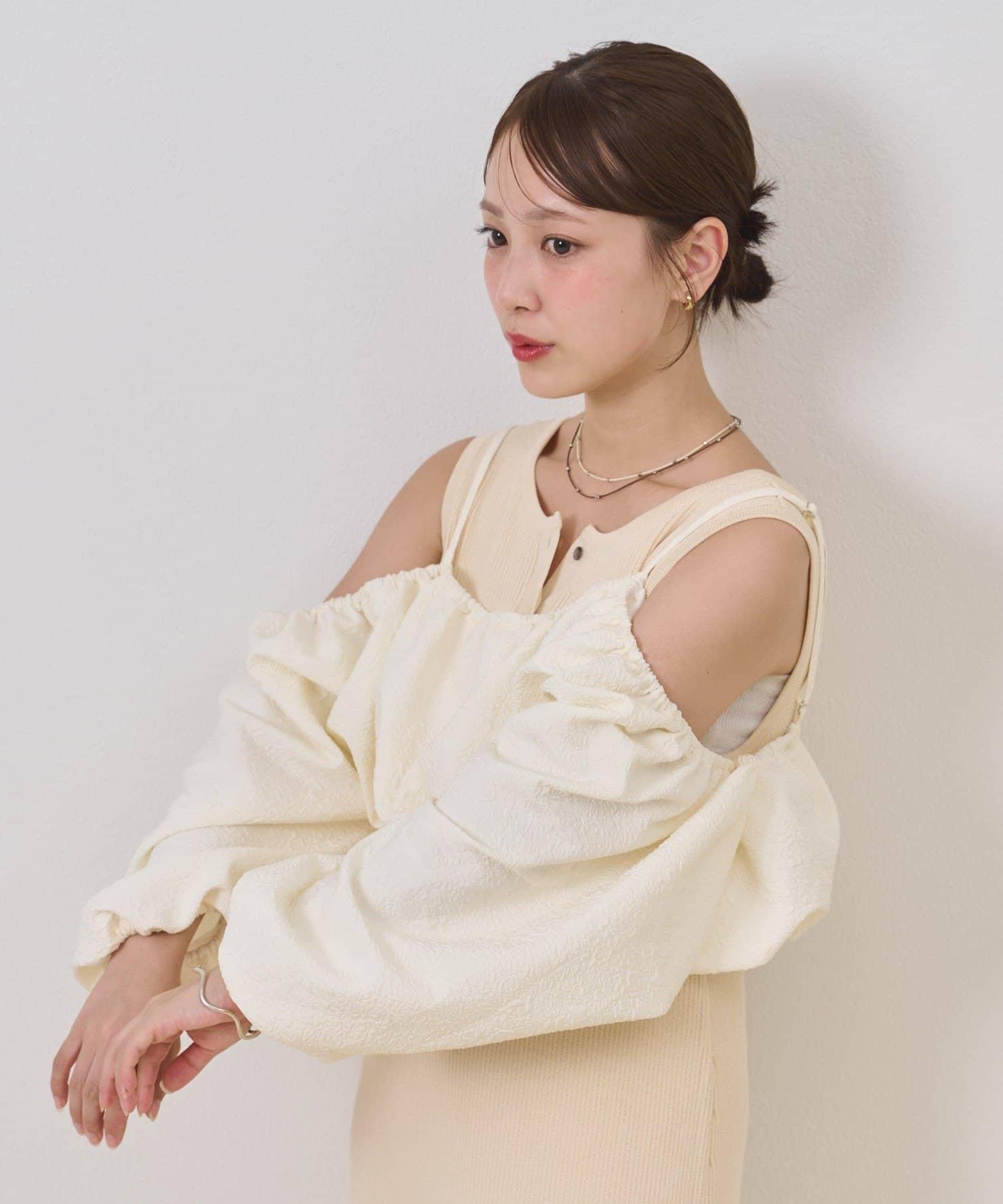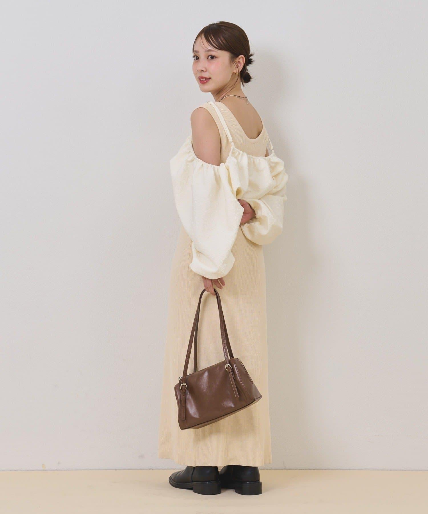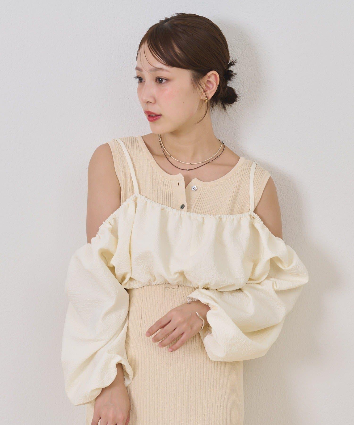 露肩上衣和針織連身裙的組合。這是能恰到好處地展現肌膚的帥氣連身裙。
