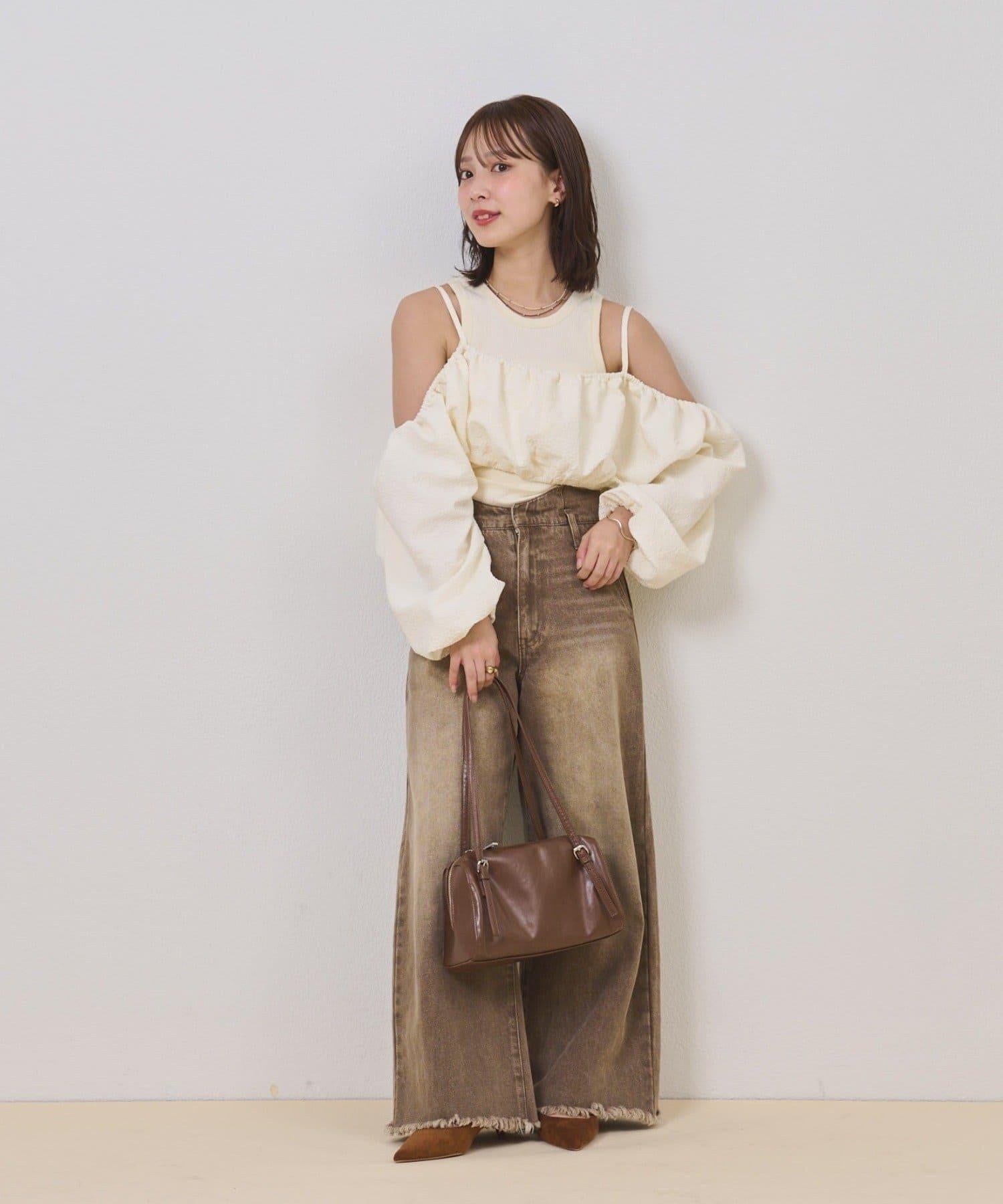 露肩上衣的廓形蓬鬆,給人一種嫵媚動人的感覺 ◎還有一點也很不錯,它可以用可愛的方式遮住讓人煩惱的手臂 ♩。